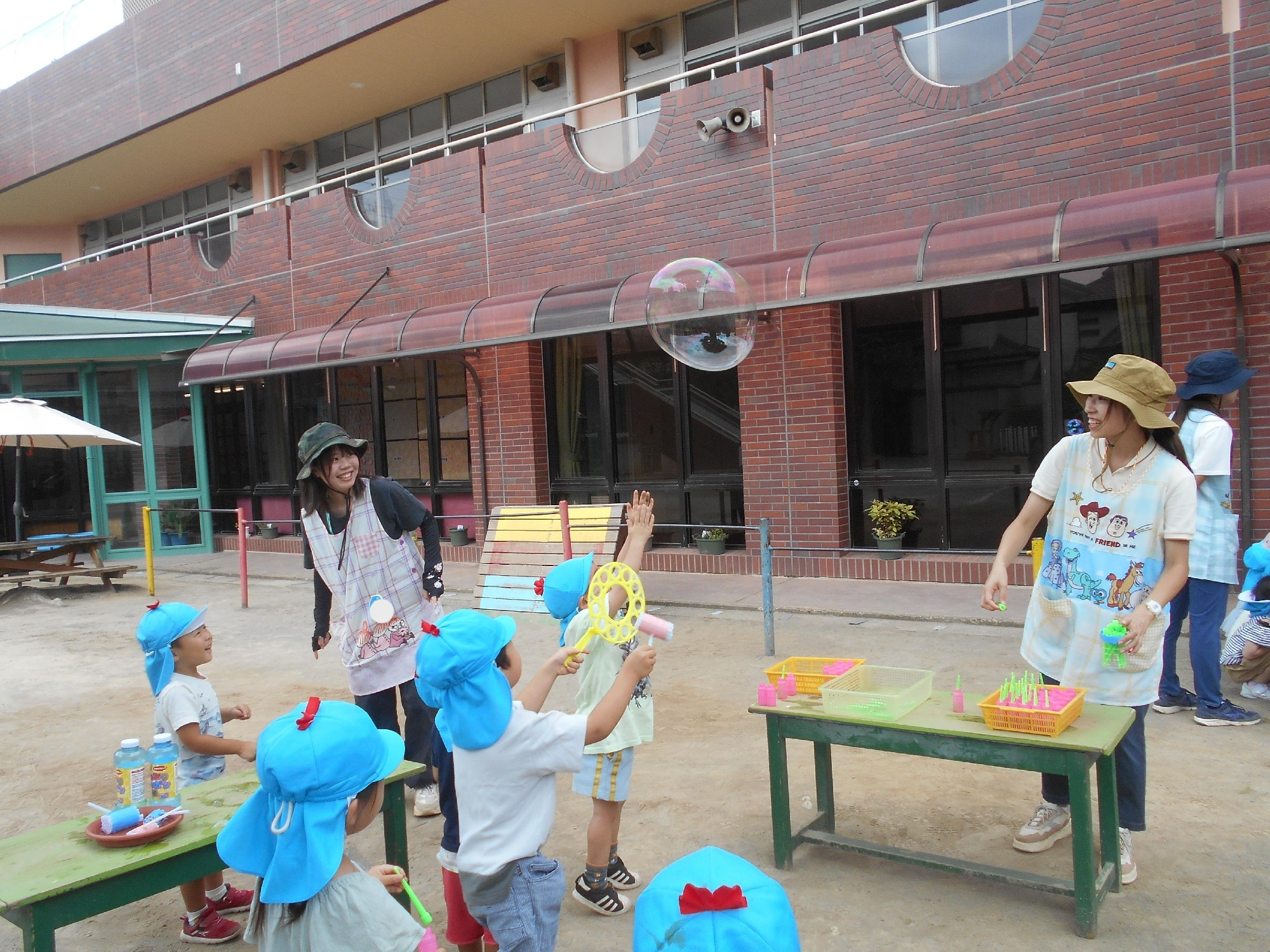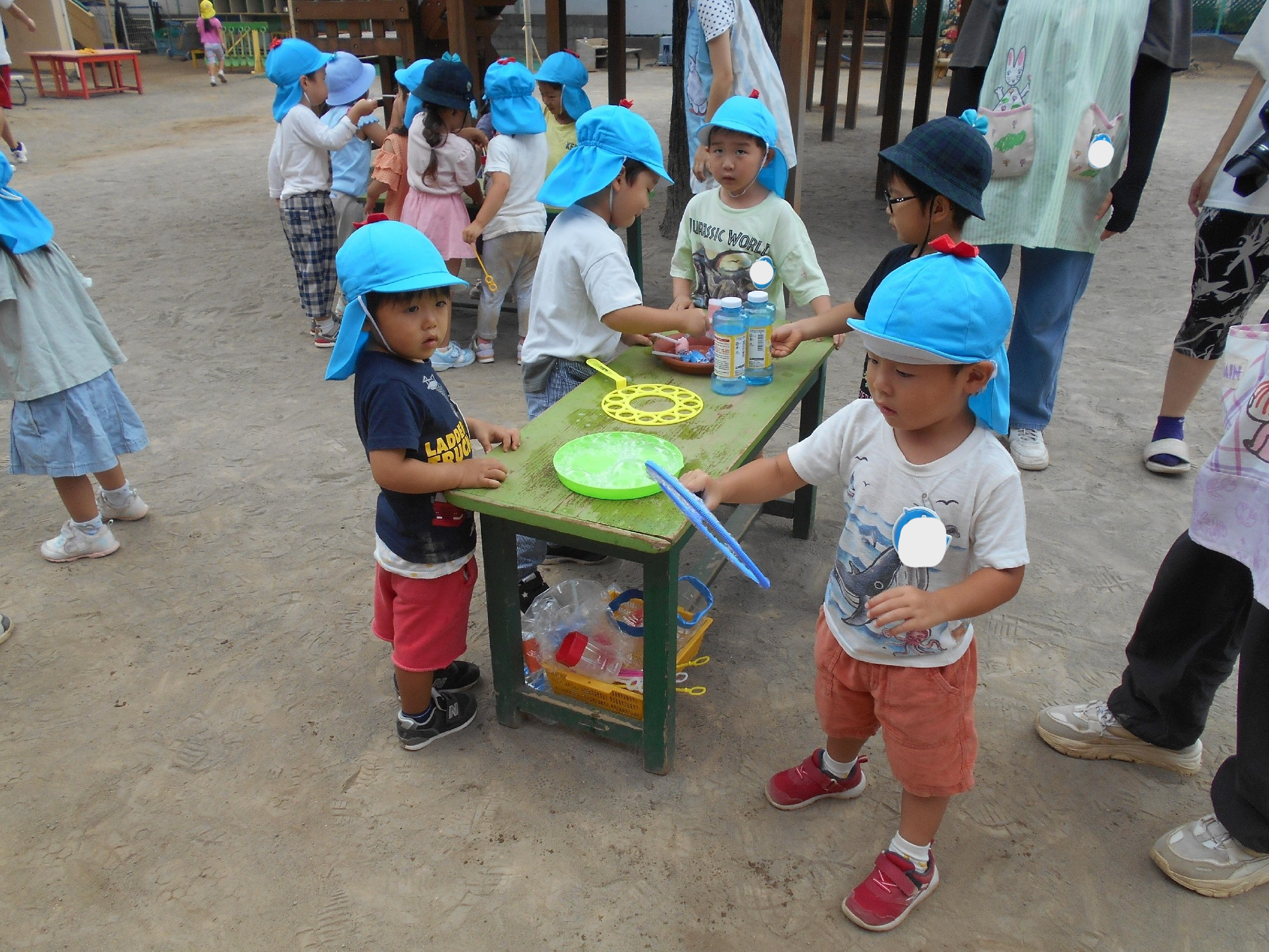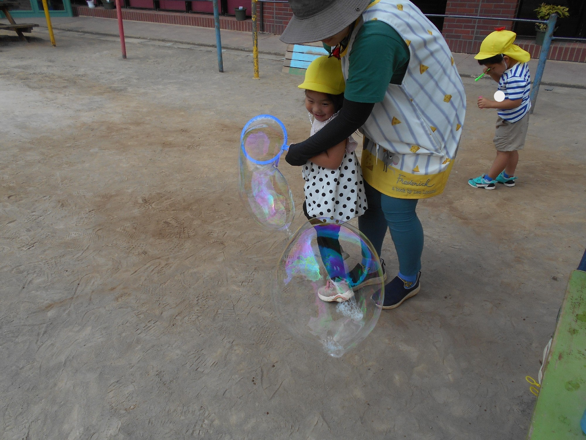 子どもたちは「大きいシャボン玉できたー!」と大喜びでした!