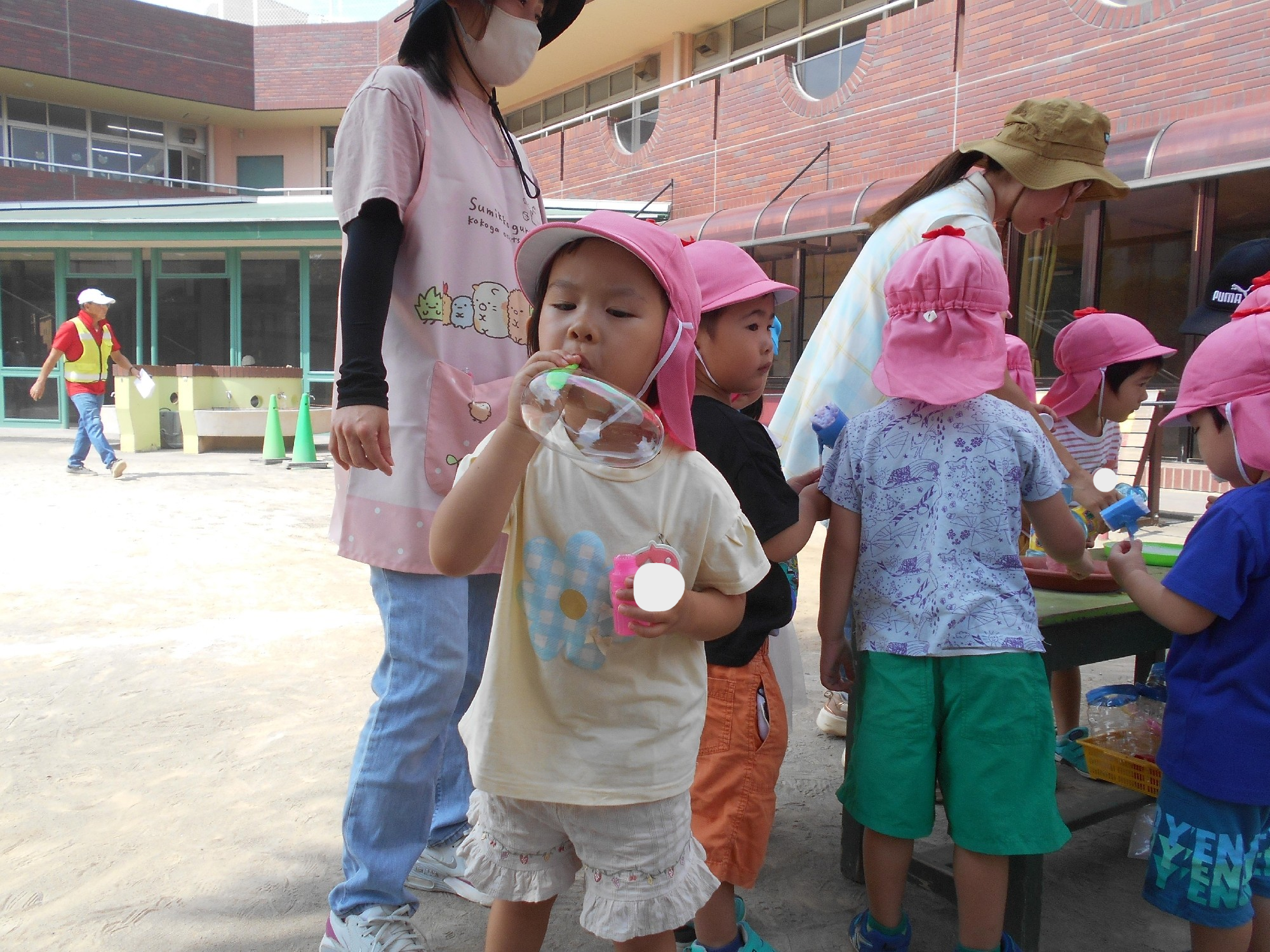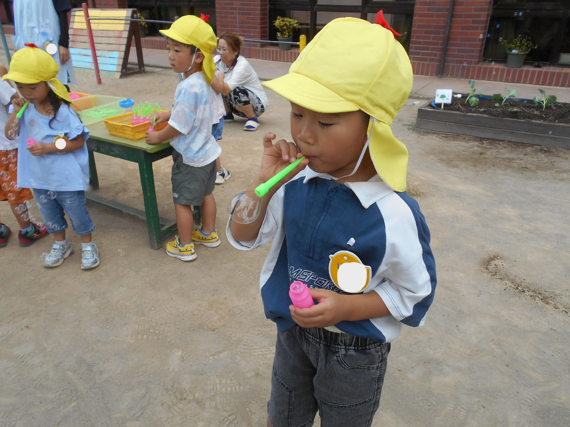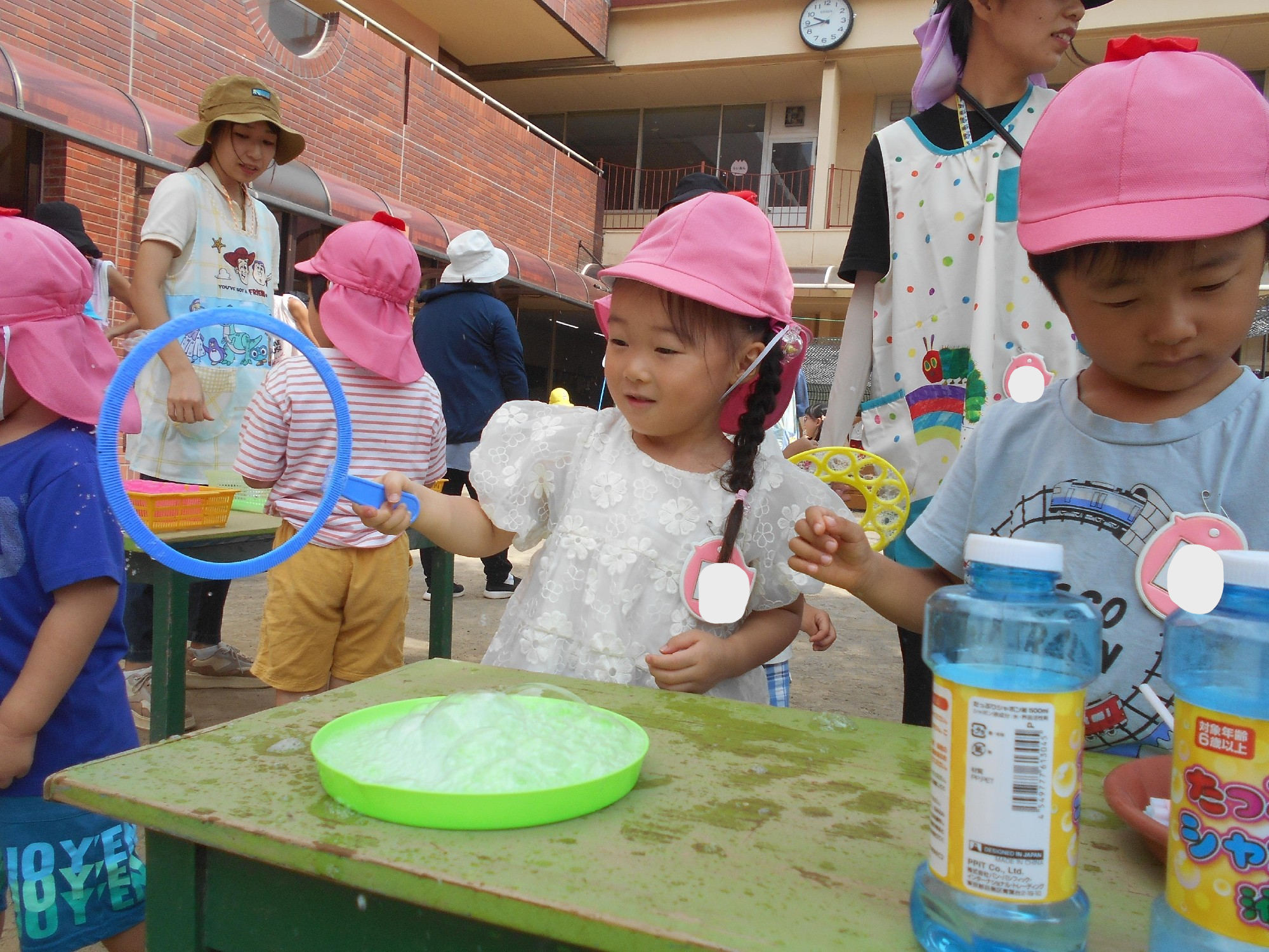子どもたちは「大きいシャボン玉できたー!」と大喜びでした!