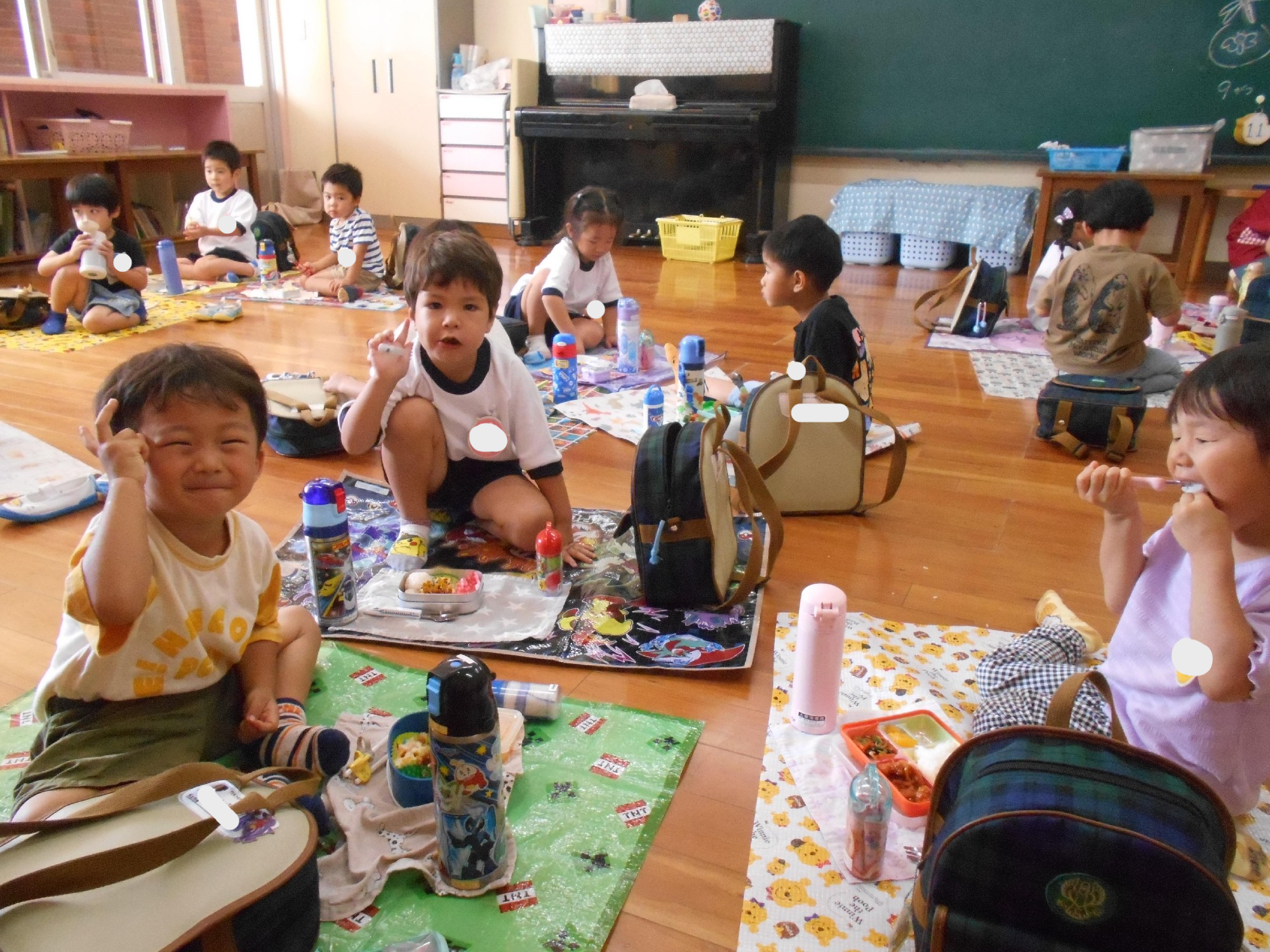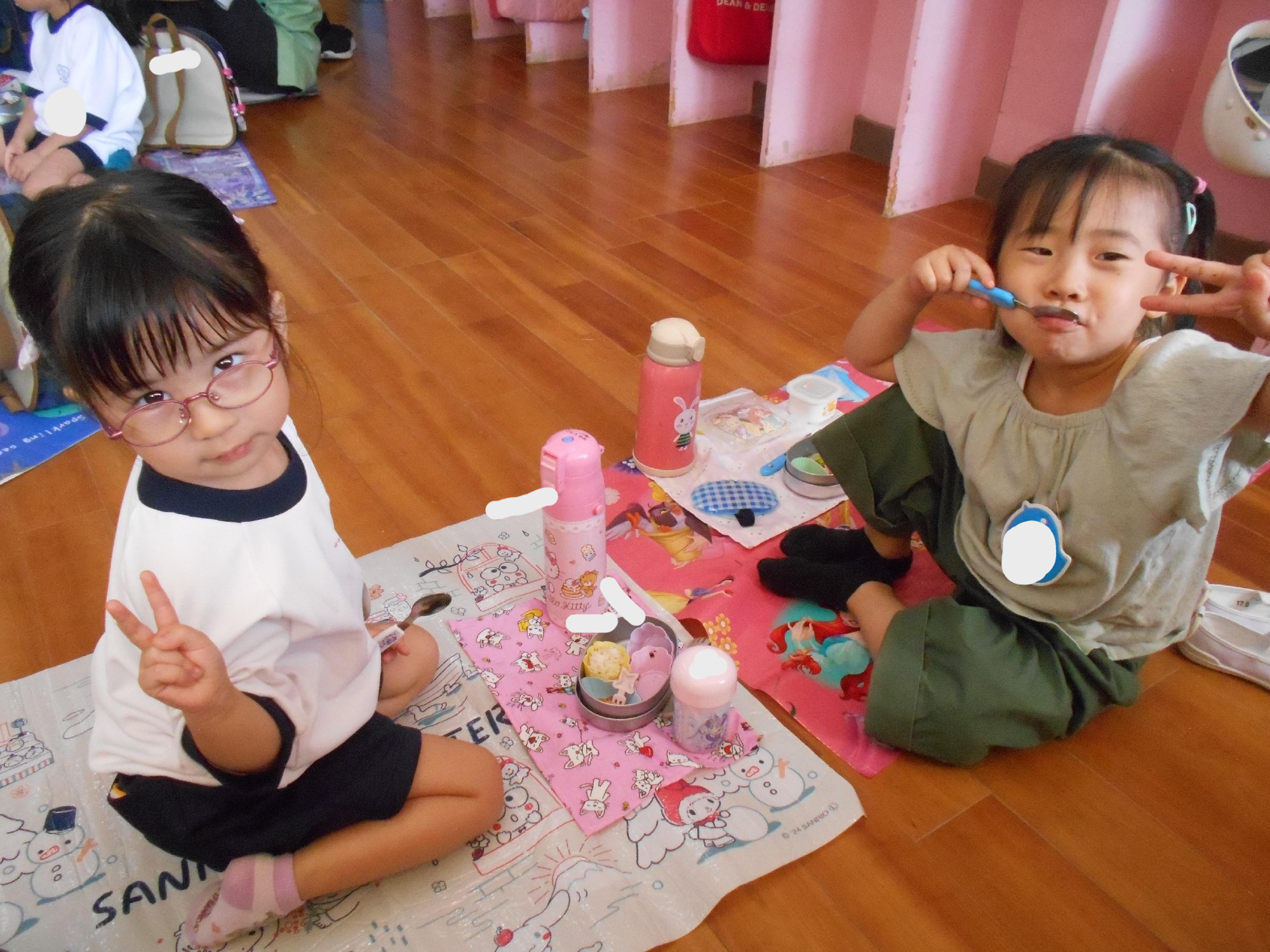 3クラスばらばらに、違うクラスのお友だちと集まってご飯を食べましたよ!