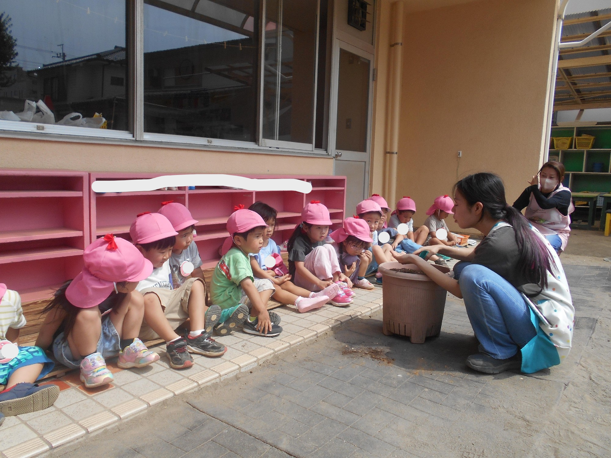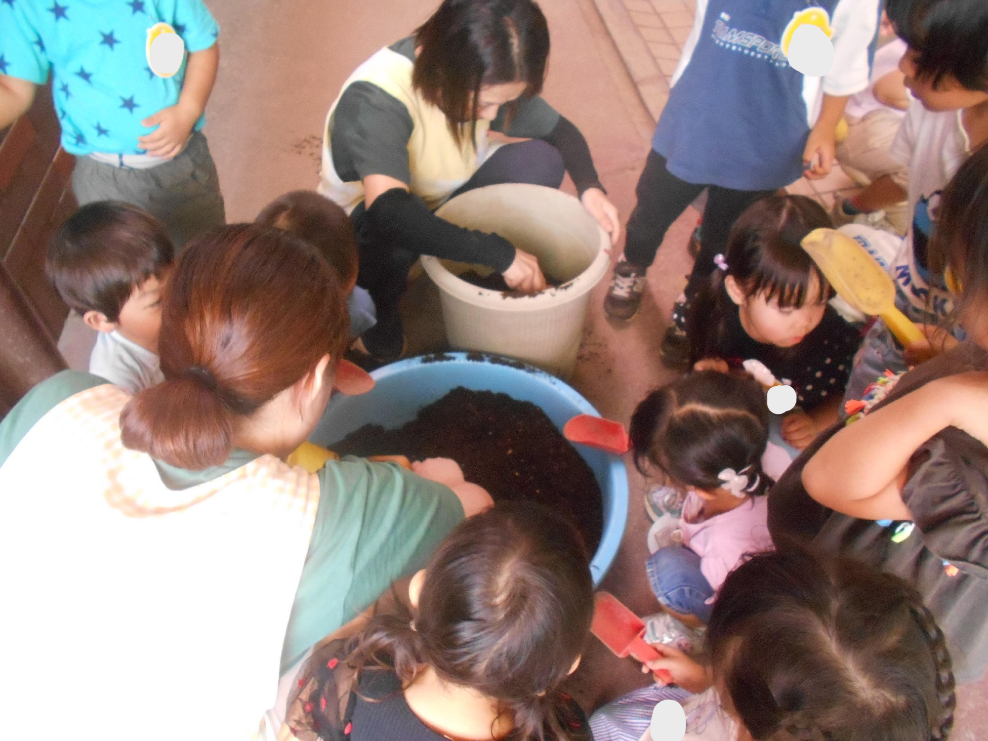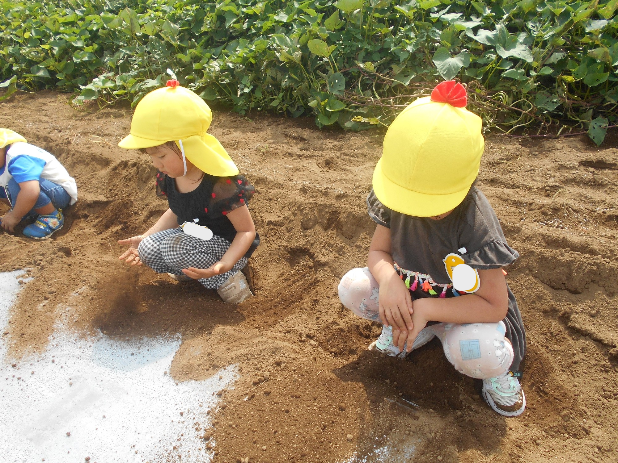 幼稚園に戻ってからは、園で育てる大根の土作りをして、大根の種を蒔きました。