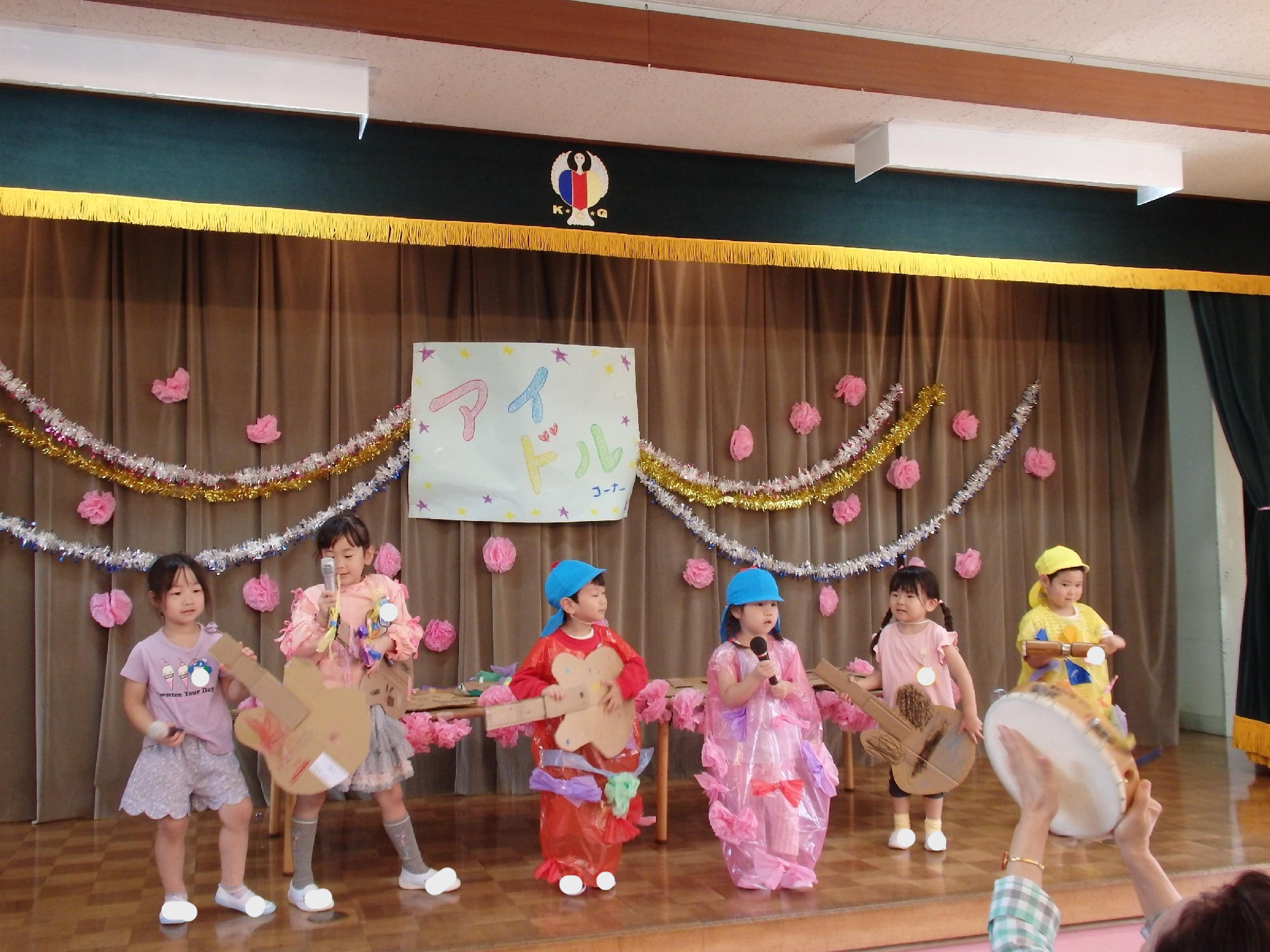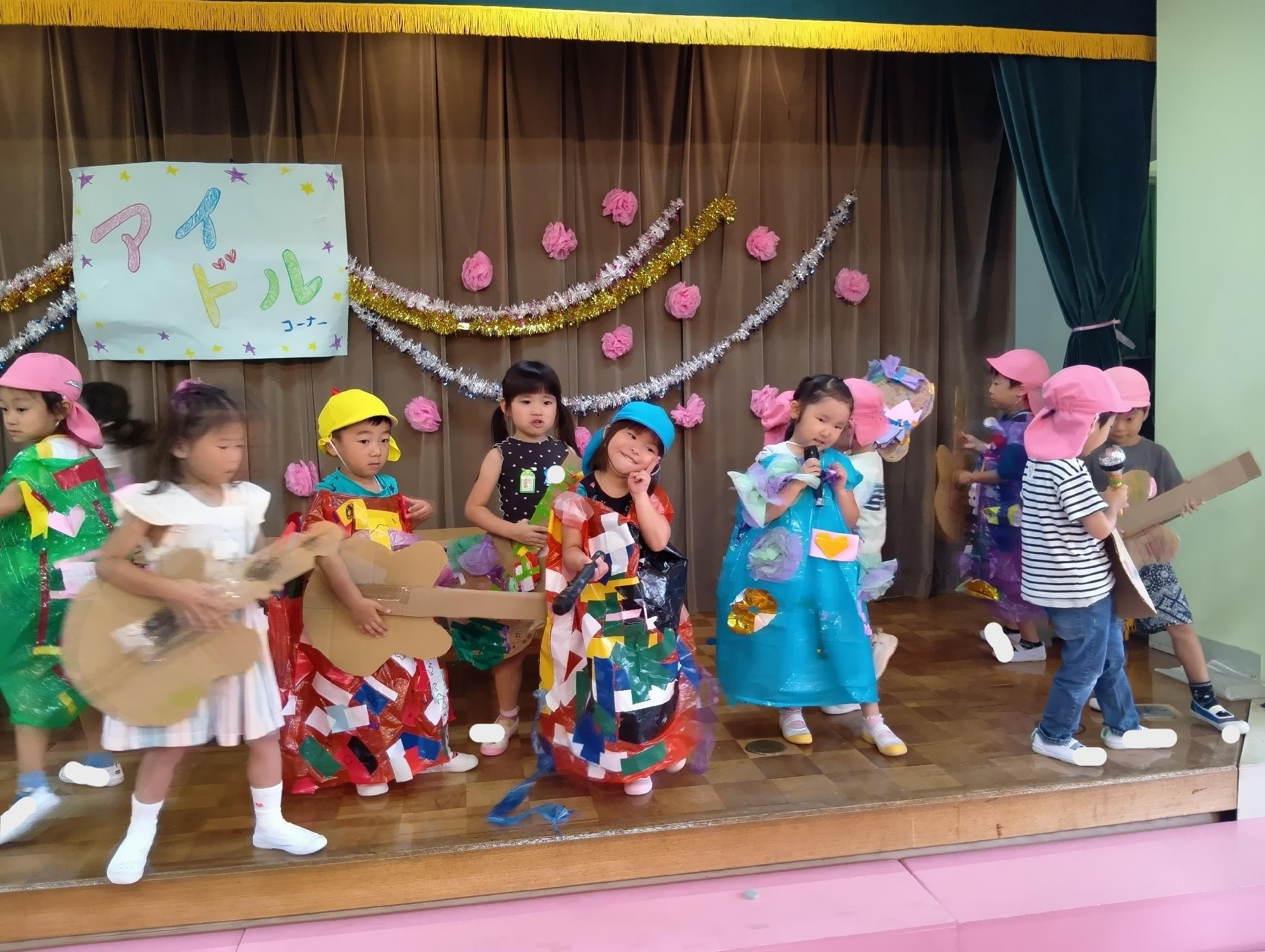 ホールには風船バドミントン、コロコロスライダー。そしてステージにはアイドルコーナー!