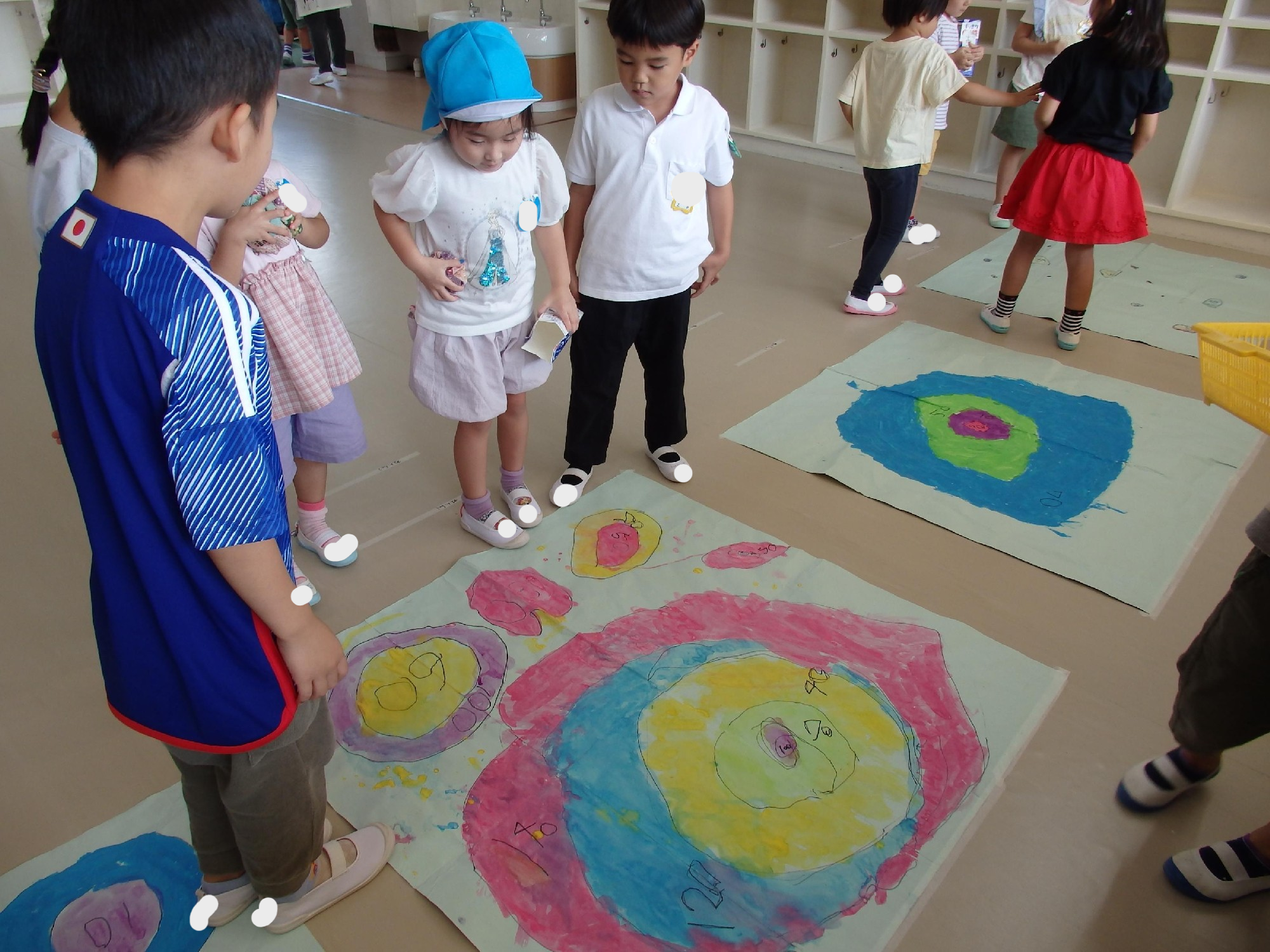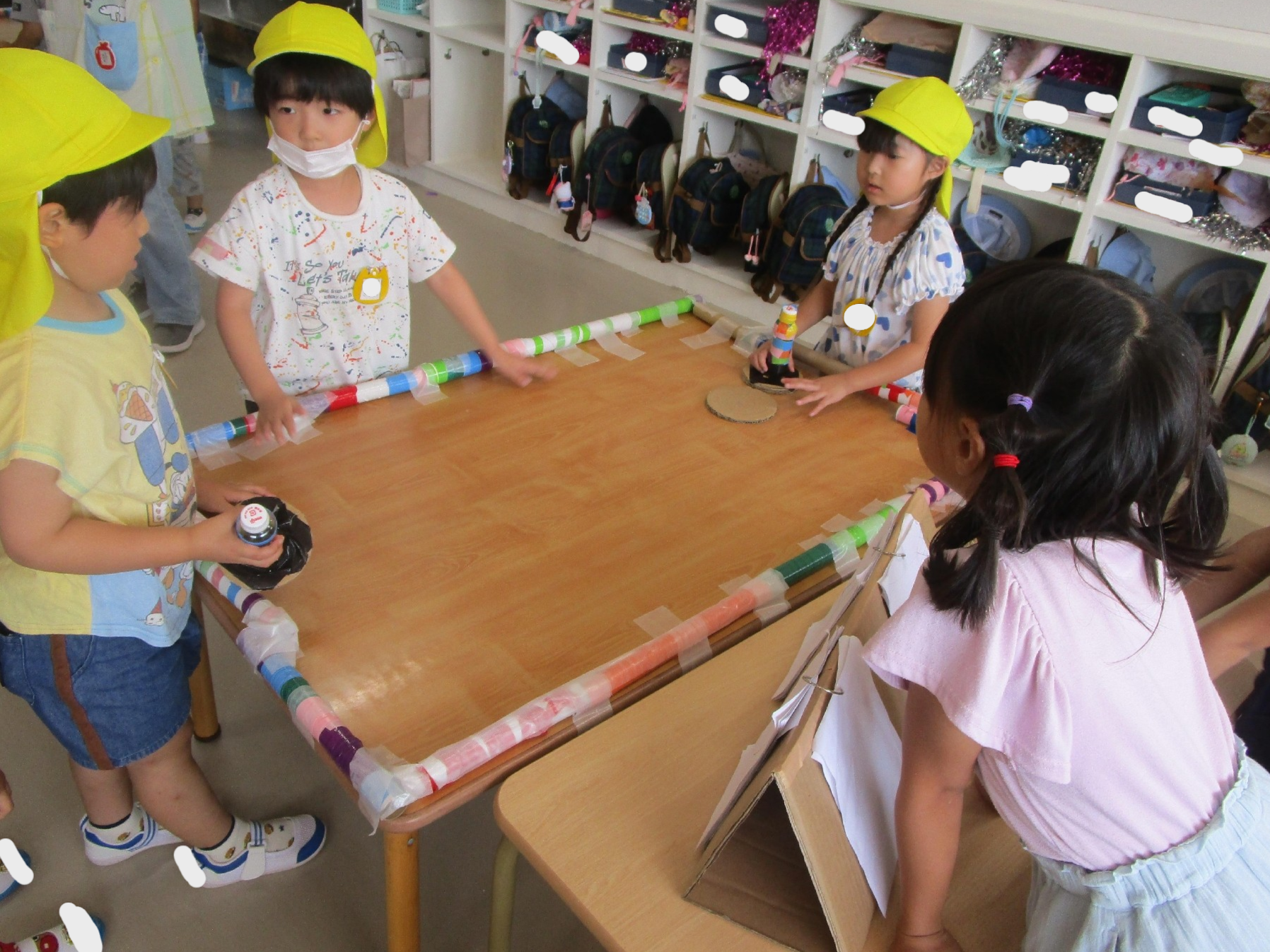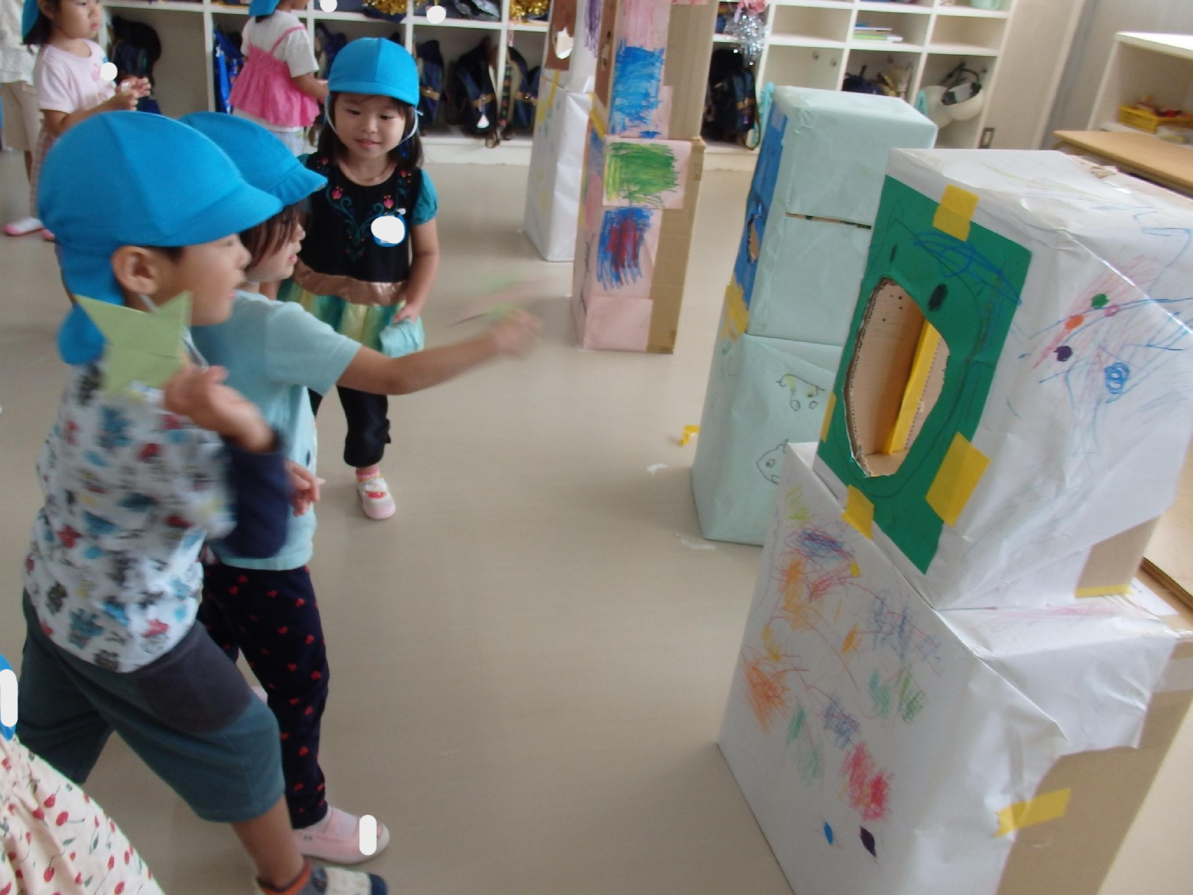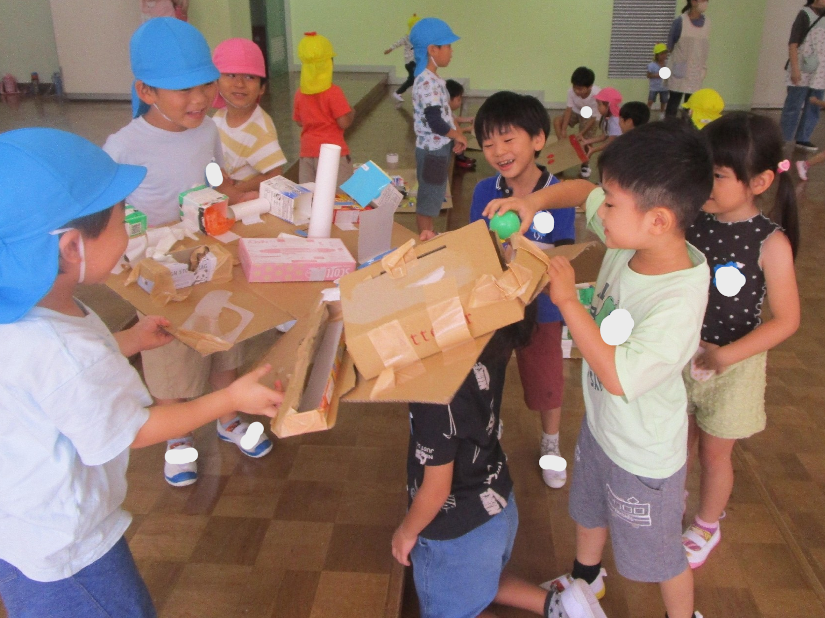 いちょう組の担当は、ほしの部屋にお手玉ゲーム、教室にダンボールフリスビー!