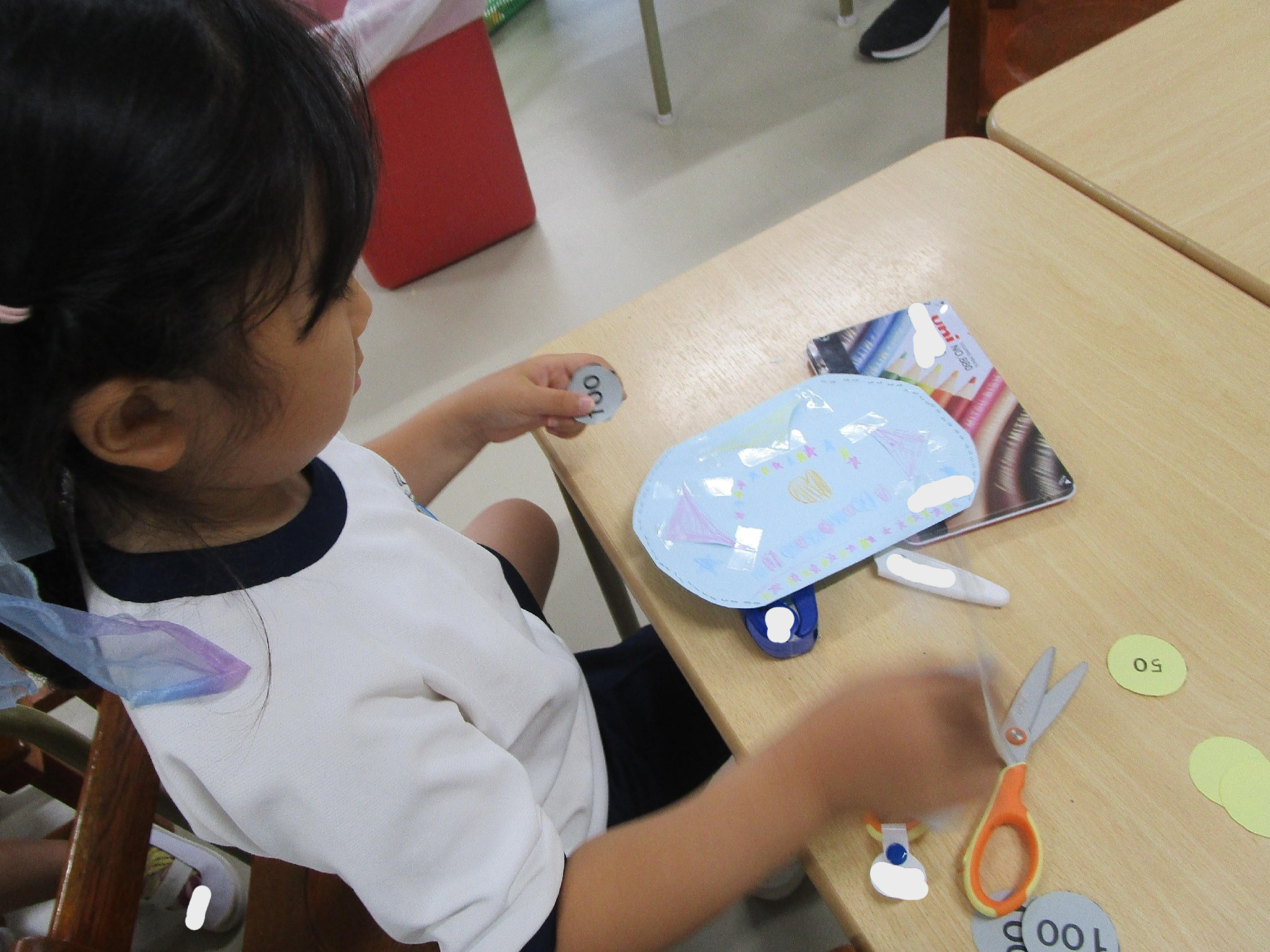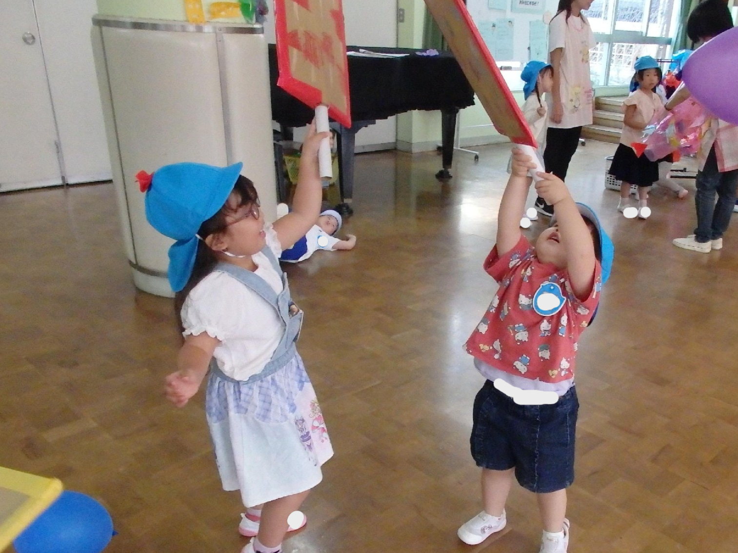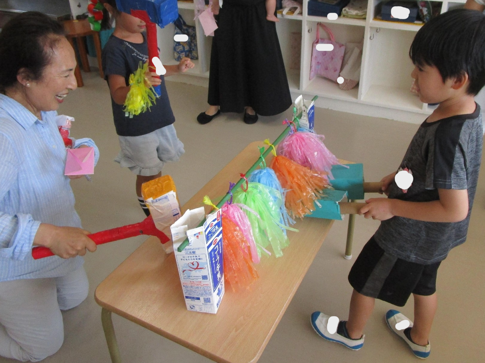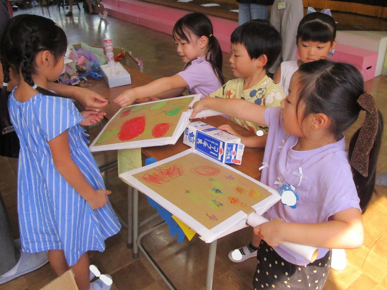 いちょう組の担当は、ほしの部屋にお手玉ゲーム、教室にダンボールフリスビー!