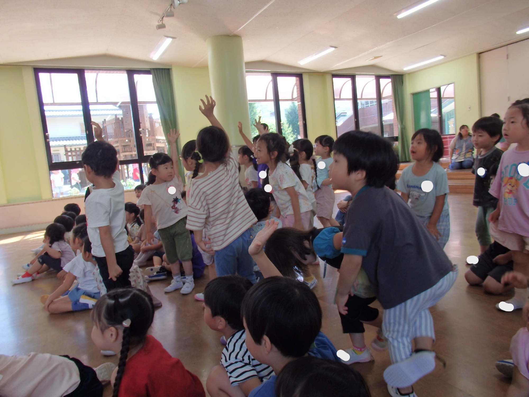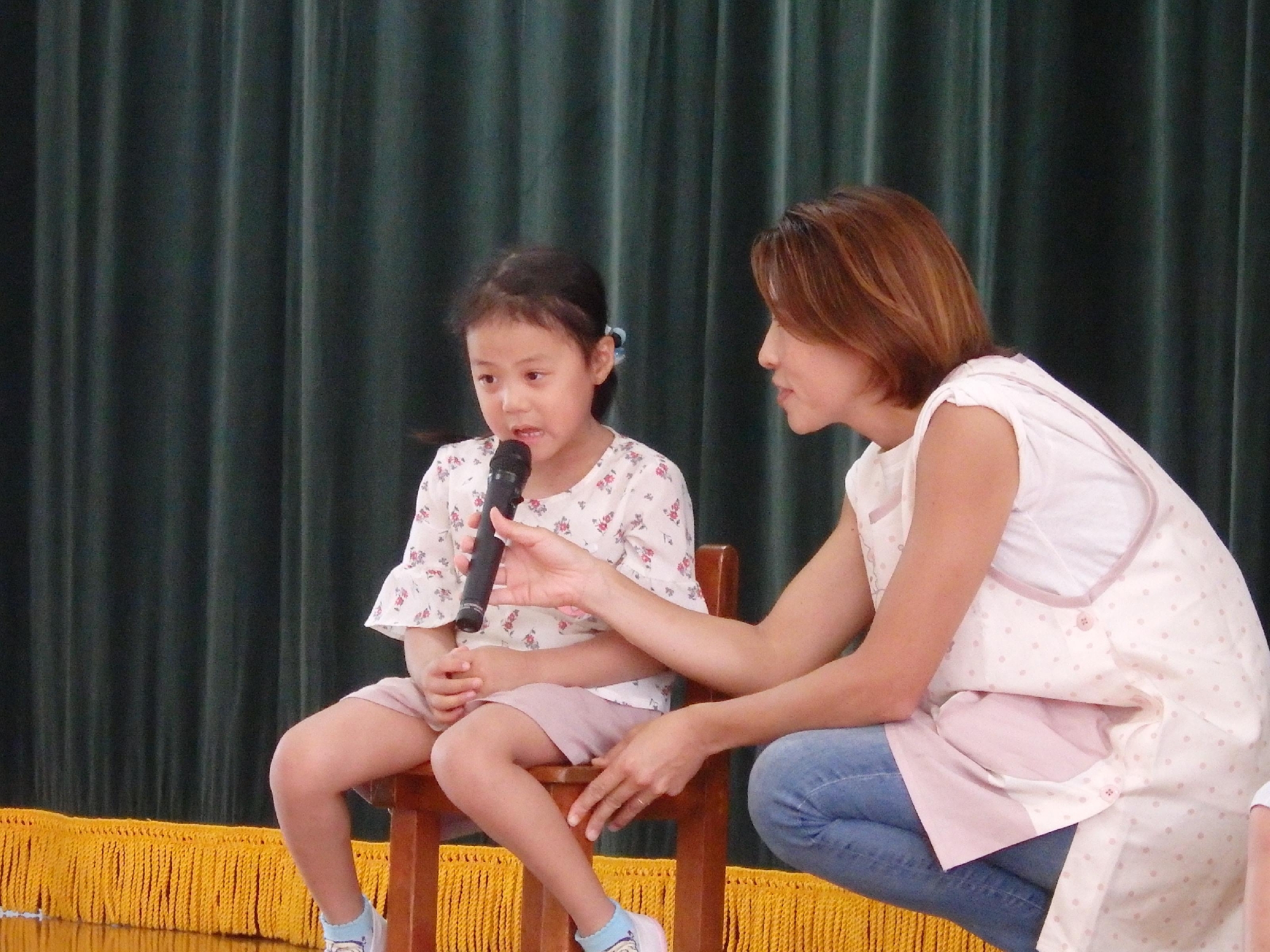 誕生日の友達はインタビューを受け「今、頑張っていること」を発表しました。鉄棒で前回りを頑張っている子や箸を練習することを頑張っている子がいました!