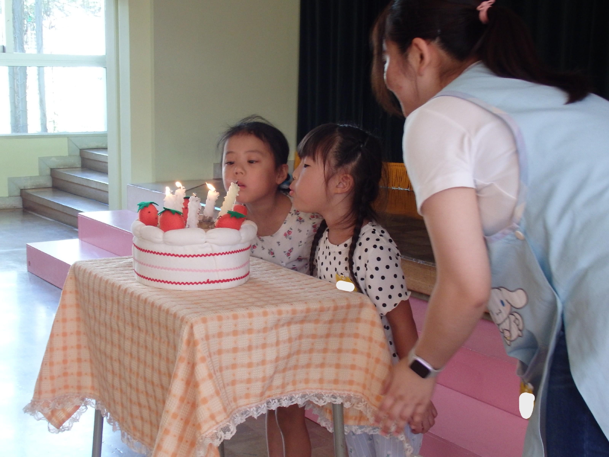 そしてハッピーバースデーの歌をみんなで歌い、ケーキのロウソクを消しました。