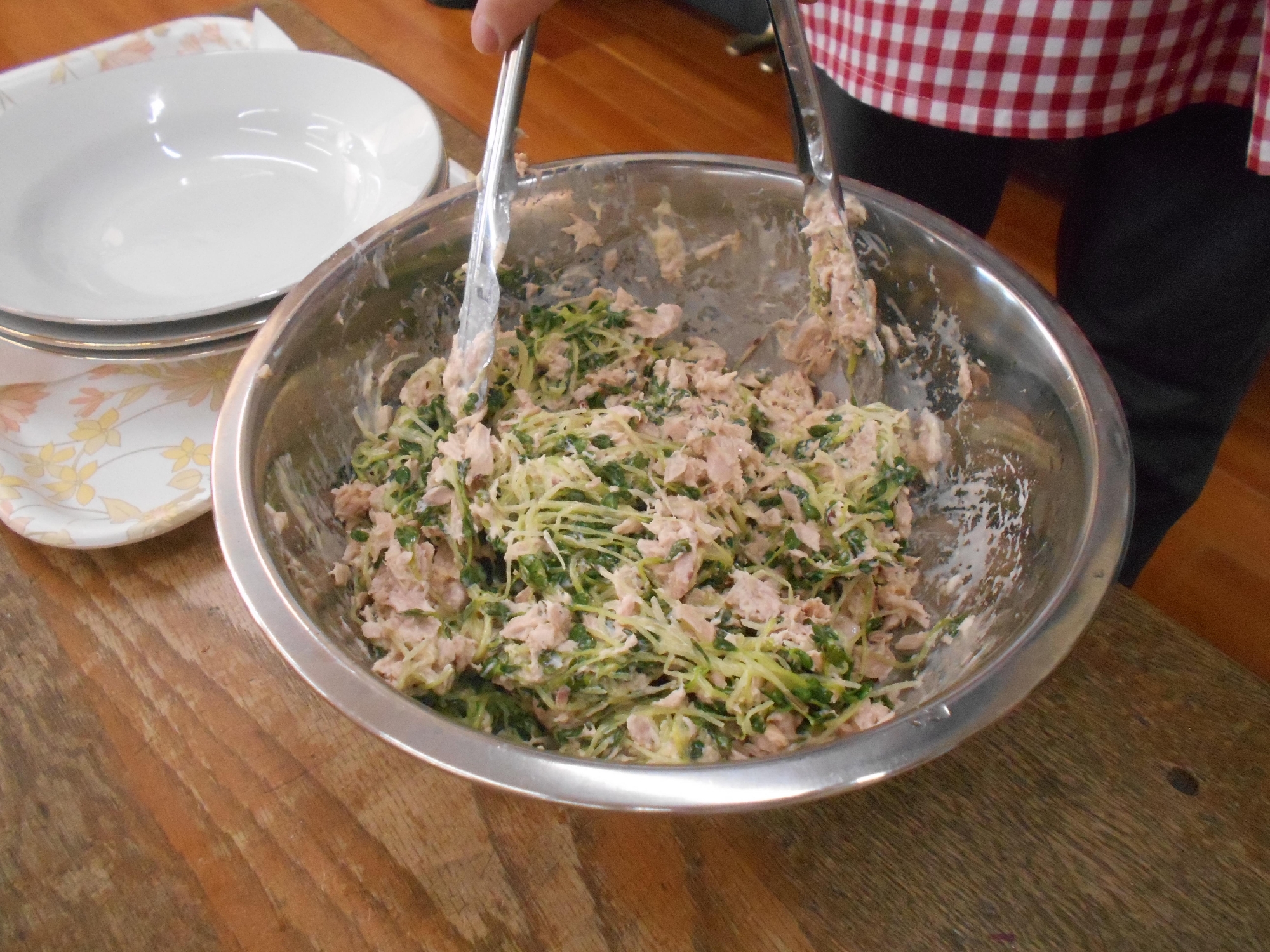 そこで、茹でたかいわれ大根を塩コショウと、ツナ、マヨネーズで和えていただきました。
