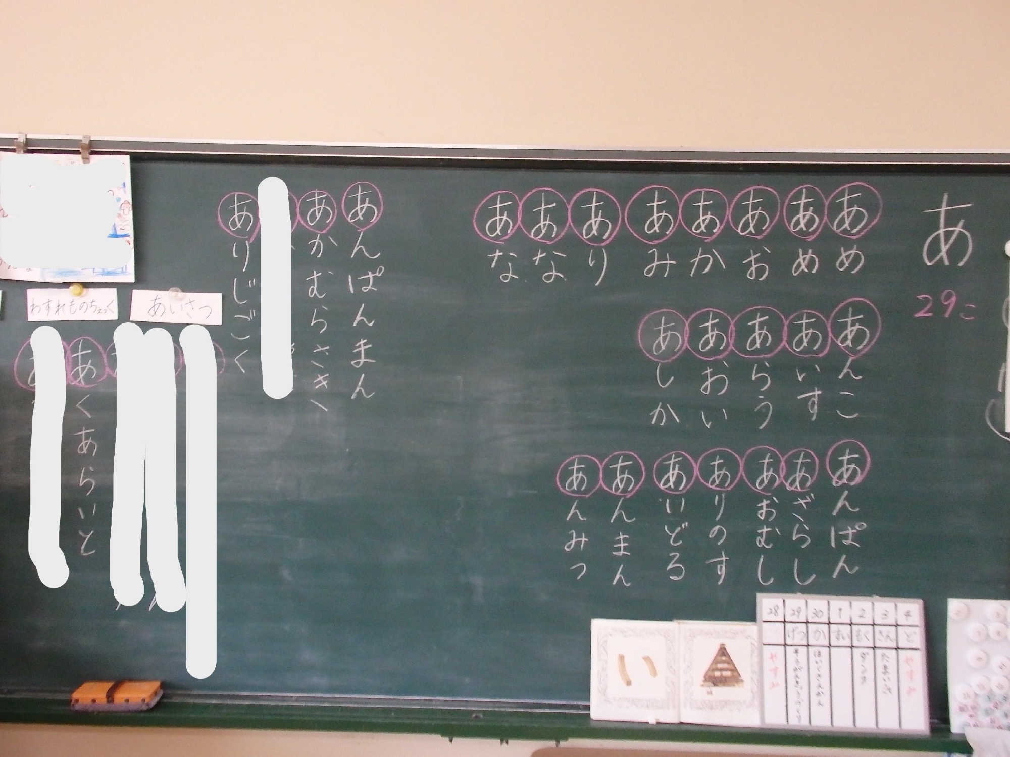 耳で色々な言葉を聞き、自分の頭で考え、黒板に書かれている平仮名を見たりと、たくさんの発見があったようです。