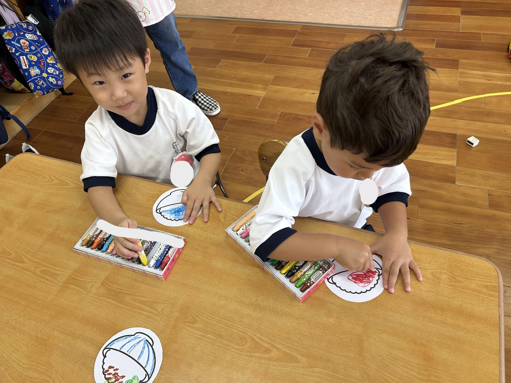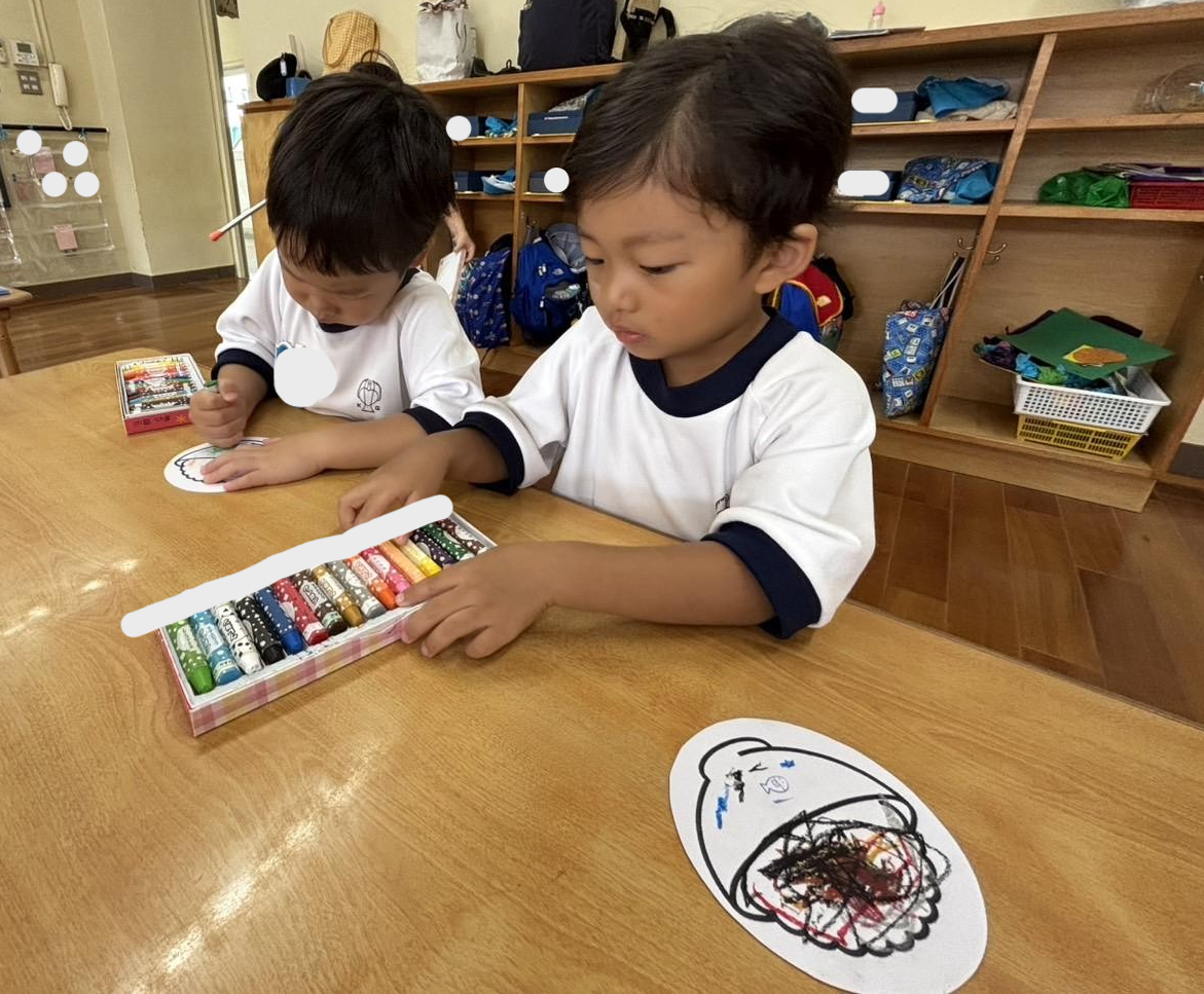 大好きなご飯のおかずをクレヨンで描き、お気に入りのご飯ベルトが出来ました!