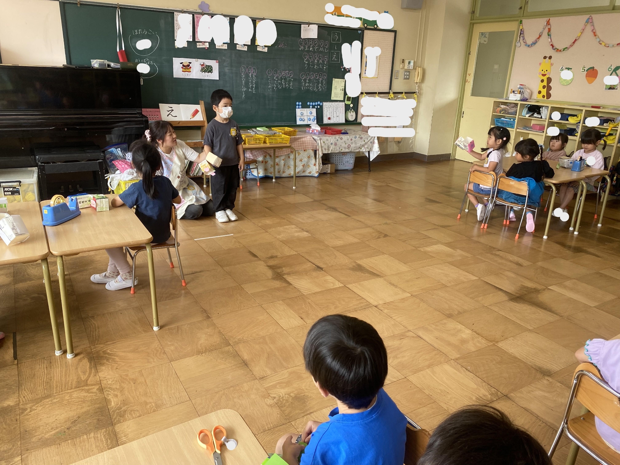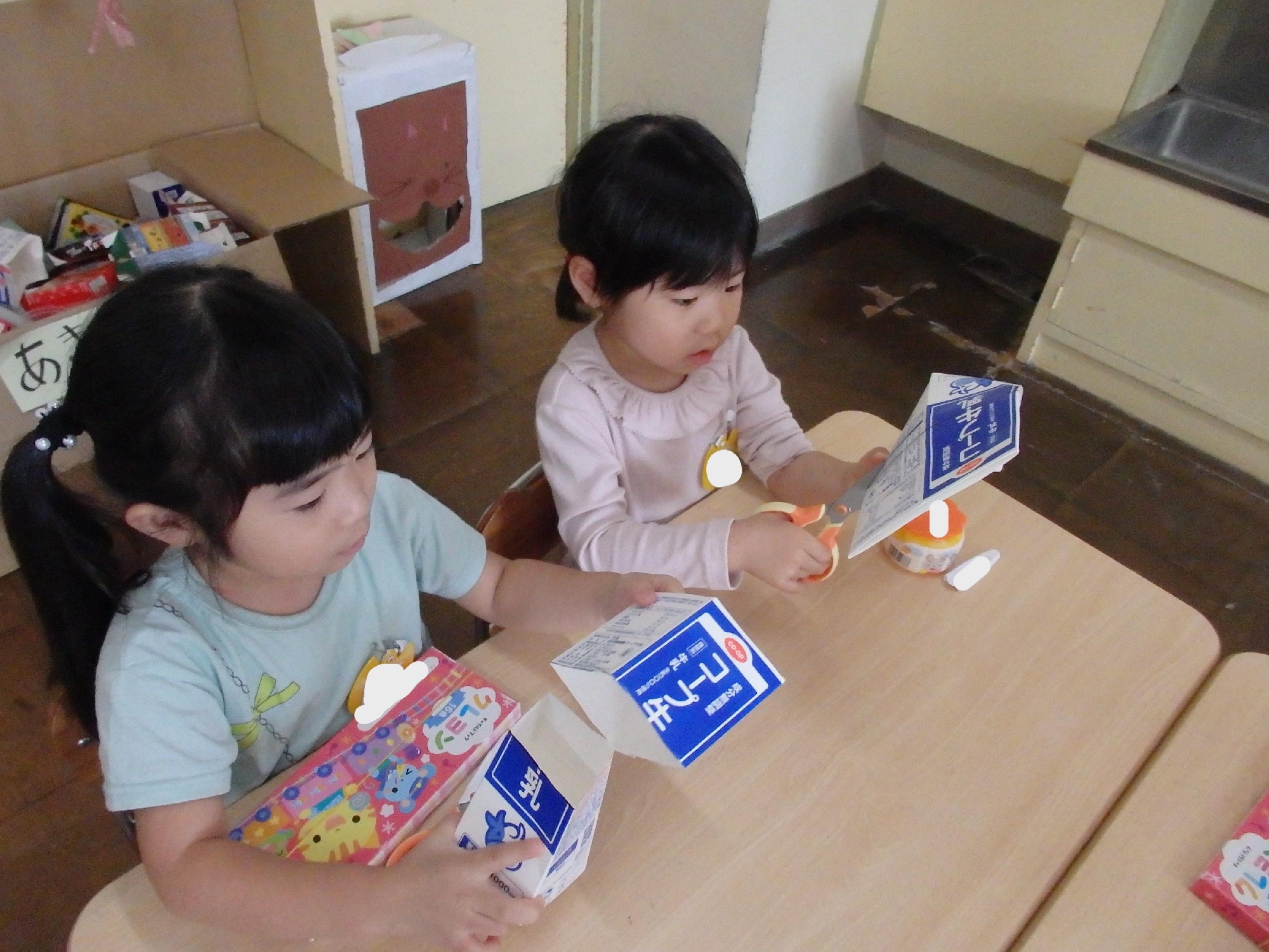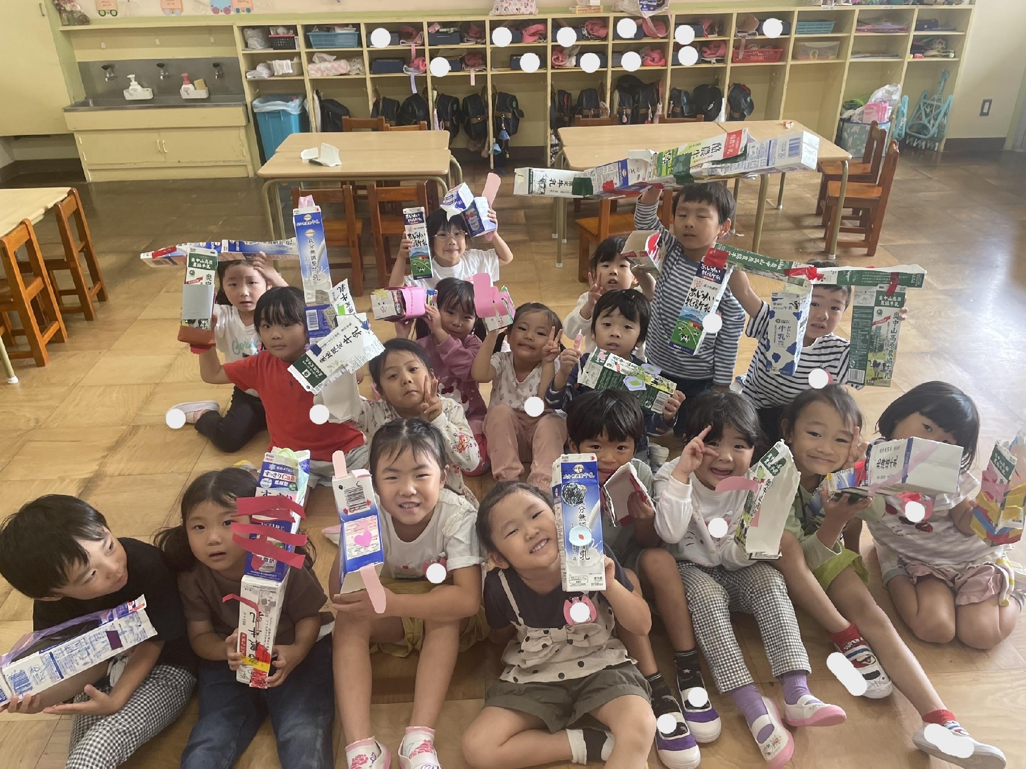 10月7日(火)、らいおん組が牛乳パックを使って作ったパクパク動物を、他の2クラスでも作ってみました!