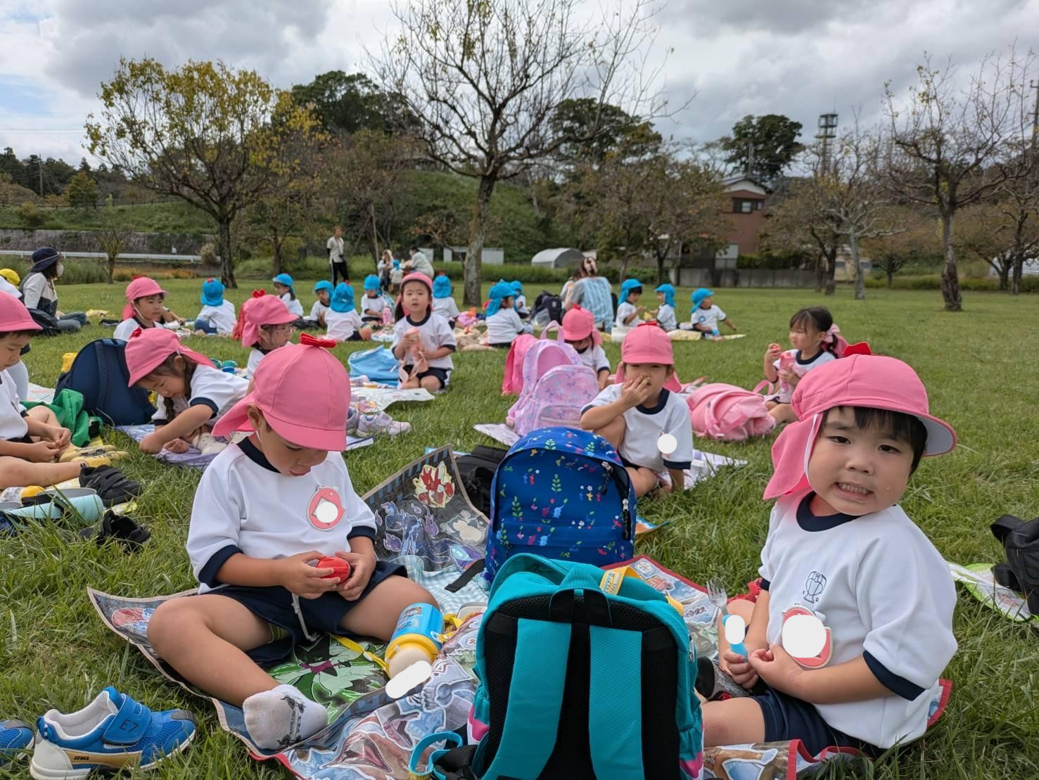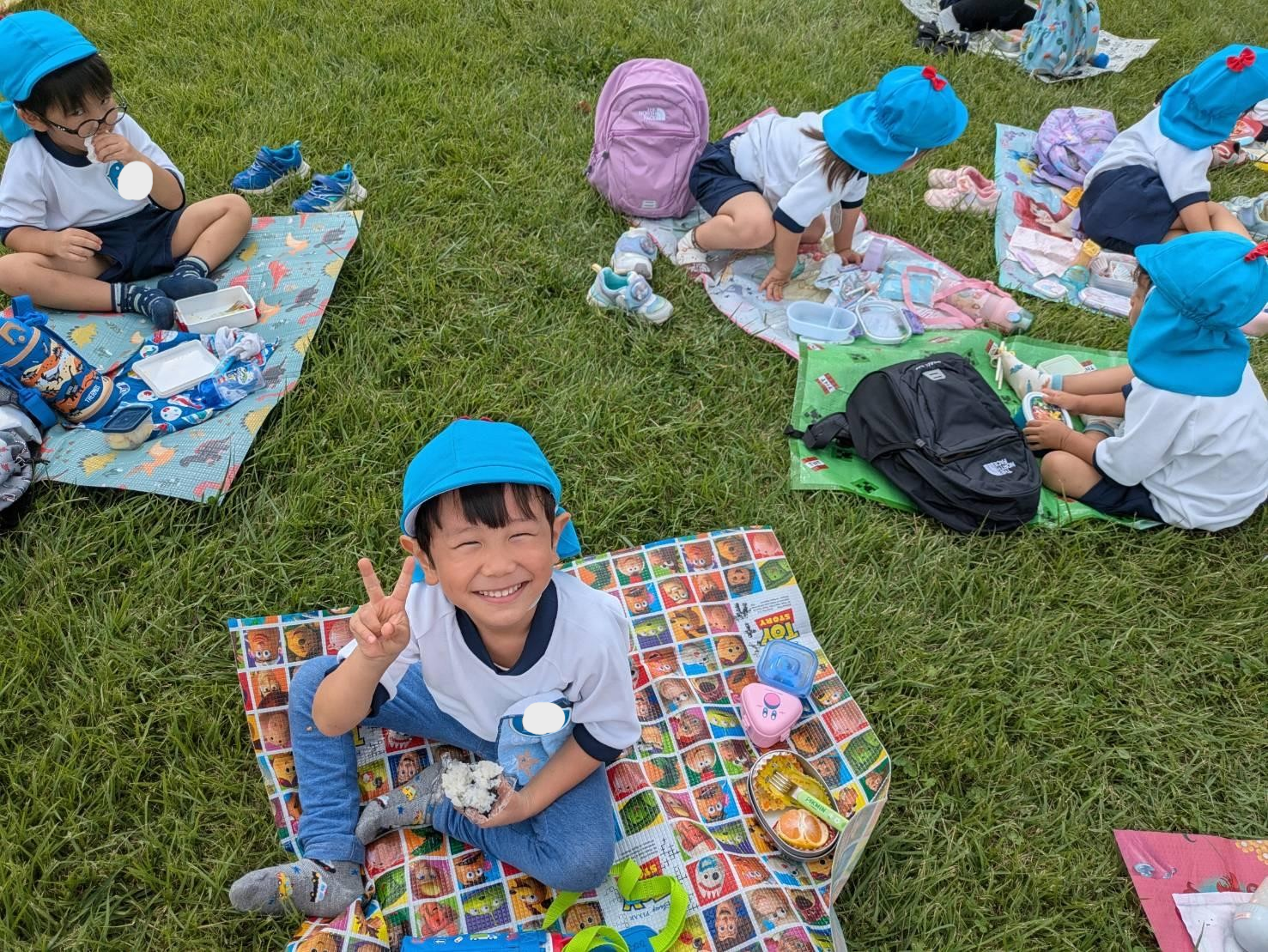 外で食べるお弁当は特別美味しかったようで、終始にこにこの子ど
