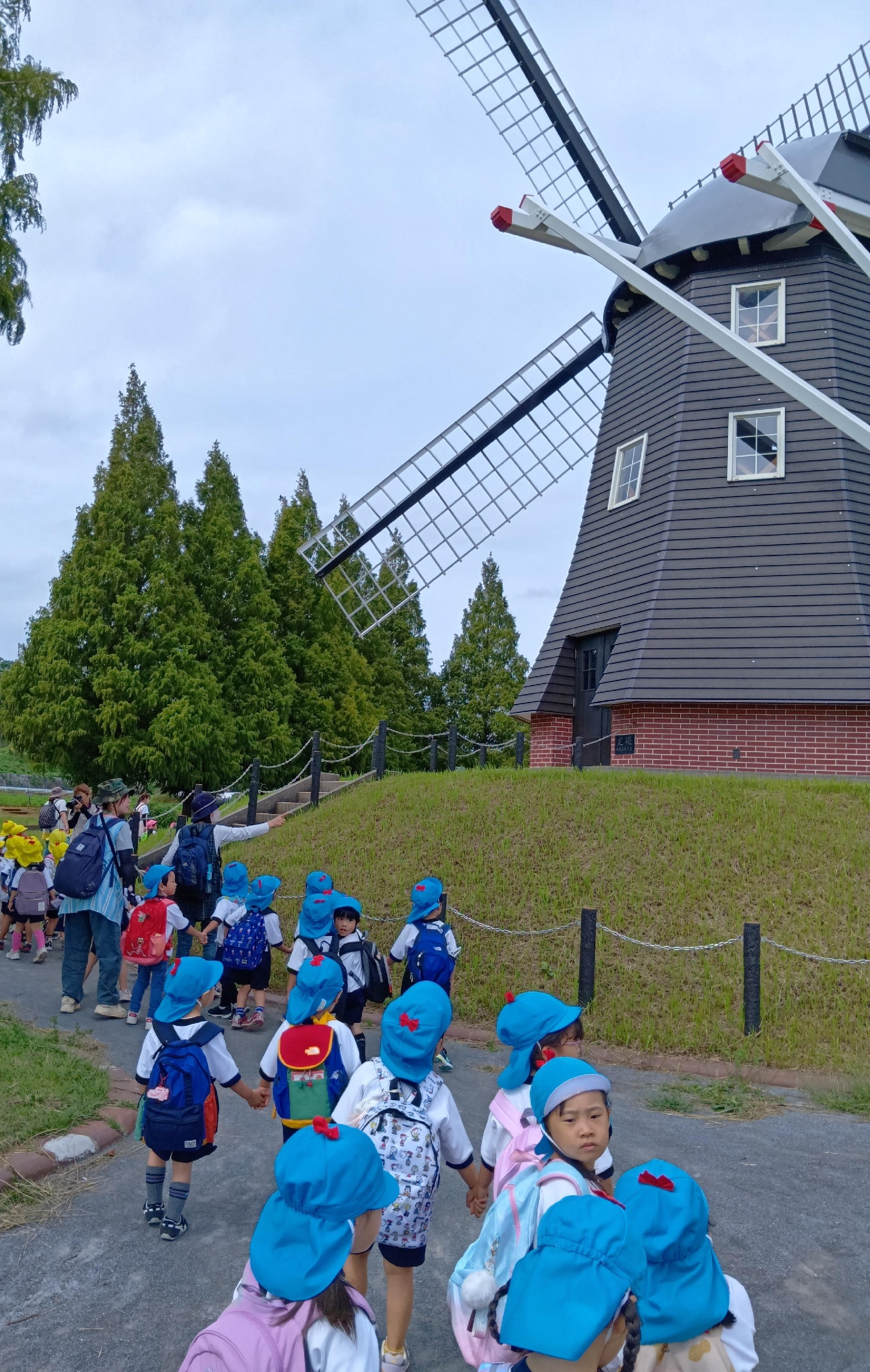 公園に着くと、大きな風車が子どもたちをお出迎え。