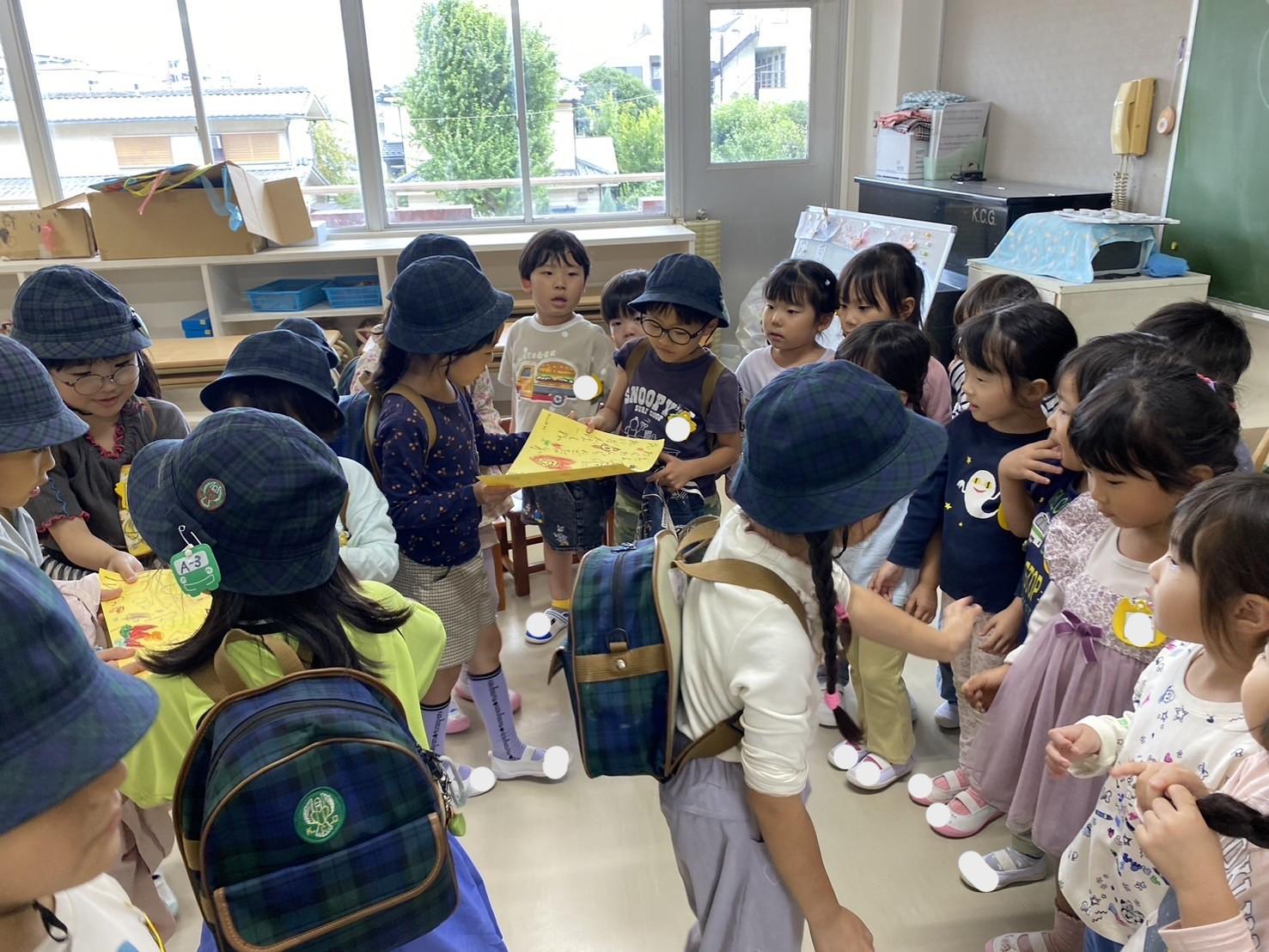 応援してくれた年長さんにお礼の手紙を作って渡しに行くと、「頑張って!」「年長さんもリレー頑張ってね!」と、お互いを応援し合う姿がとてもステキでした✨