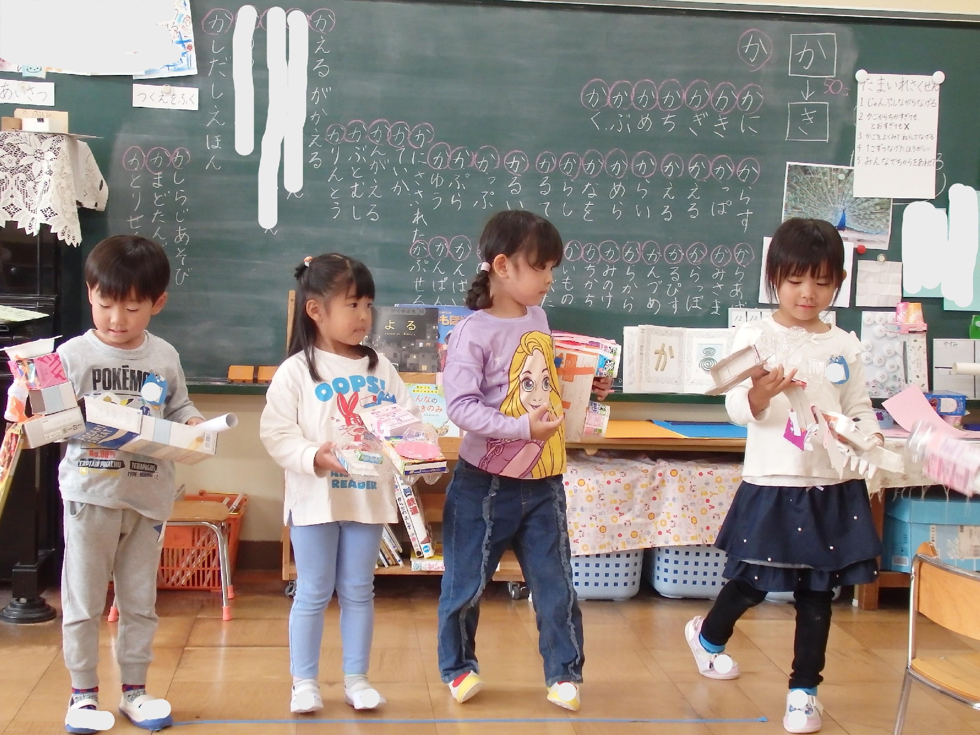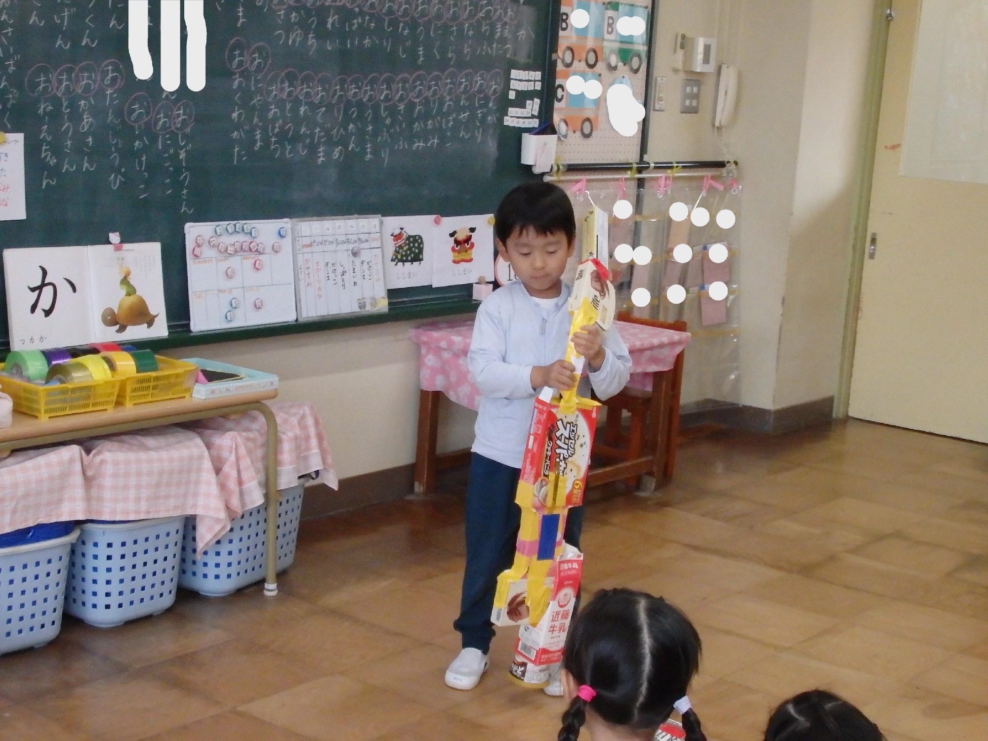 出来上がった作品を紹介し合うと「すごい!」「上手!」「よく考えたね!」と、みんなに褒められて嬉しそうでした✨
