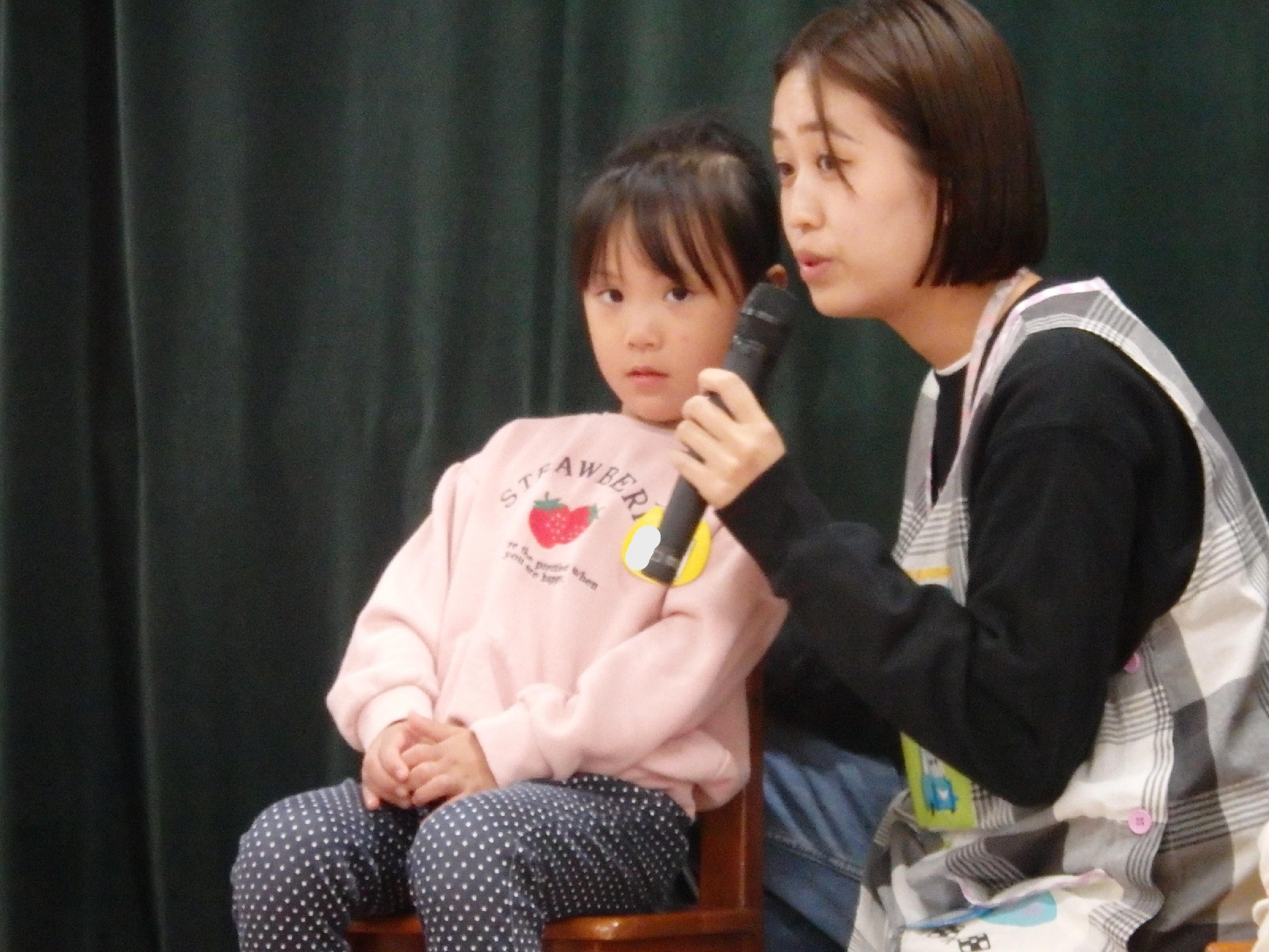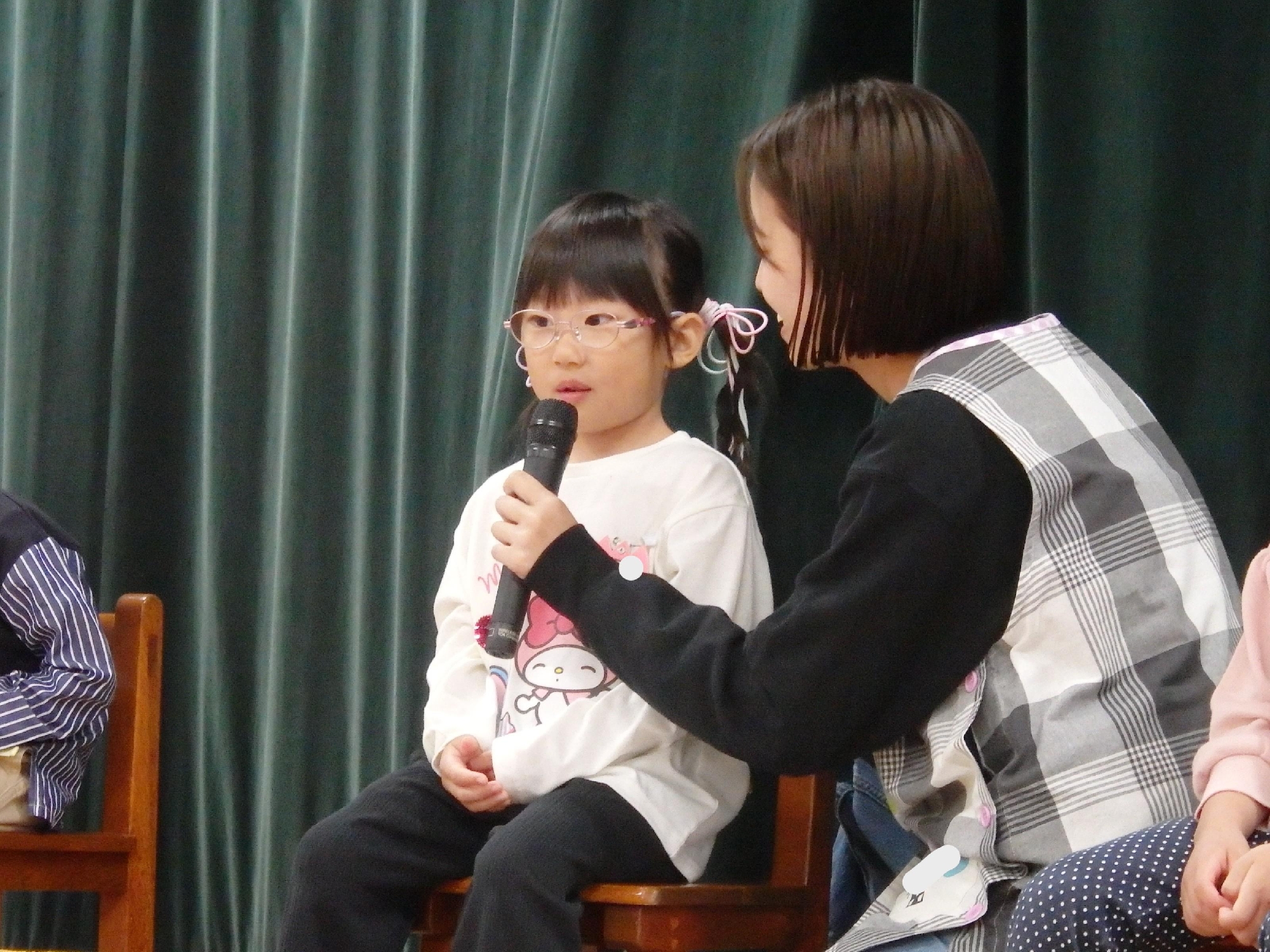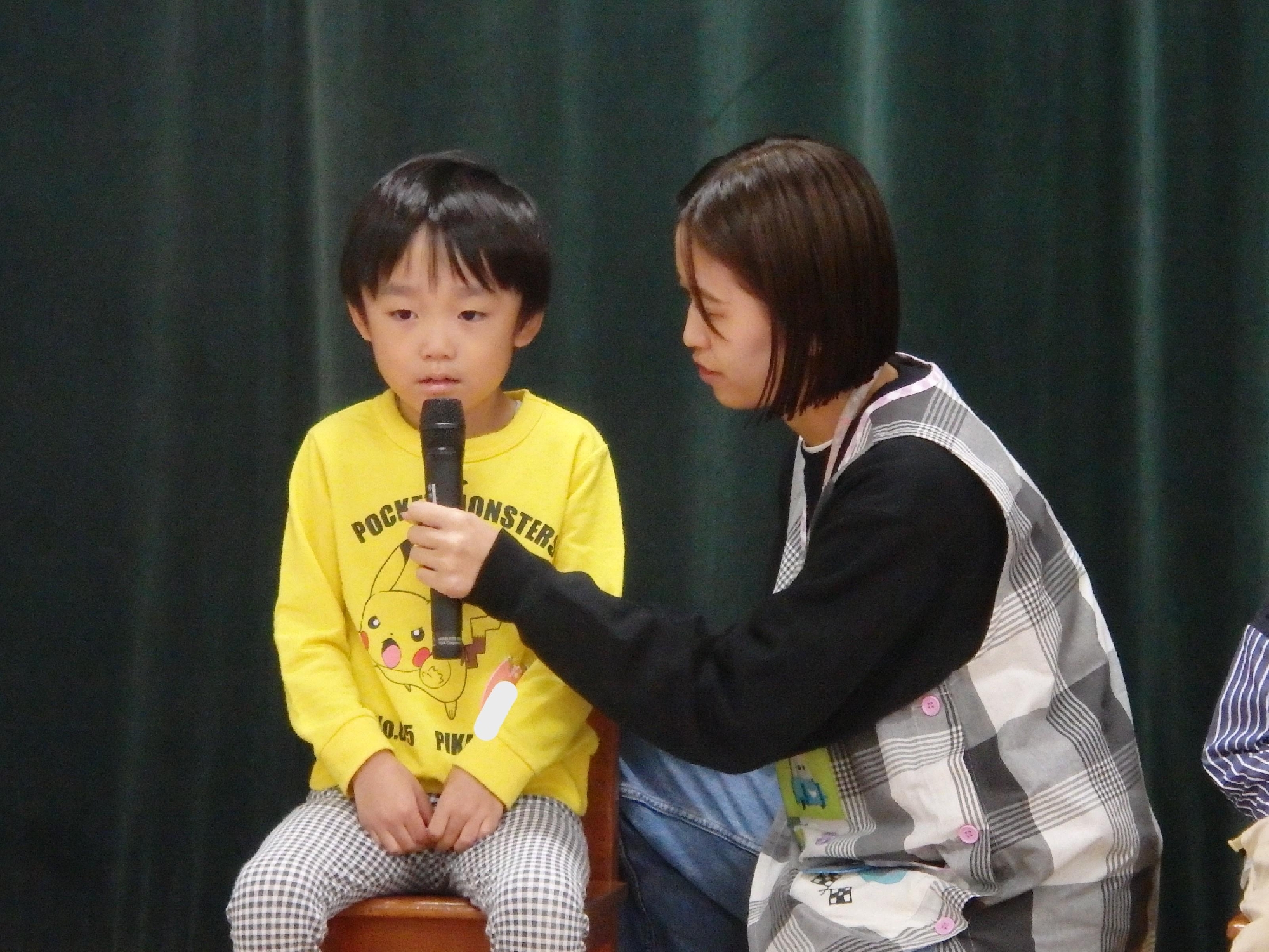 誕生日月のお友達のインタビューでは、運動会で頑張ったことを発表しました。