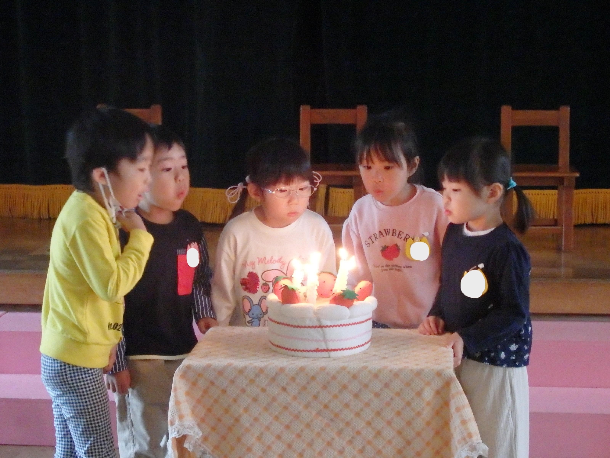 その後は、みんなでハッピーバースデーの歌を歌い、ケーキのロウソクを「フ~!」