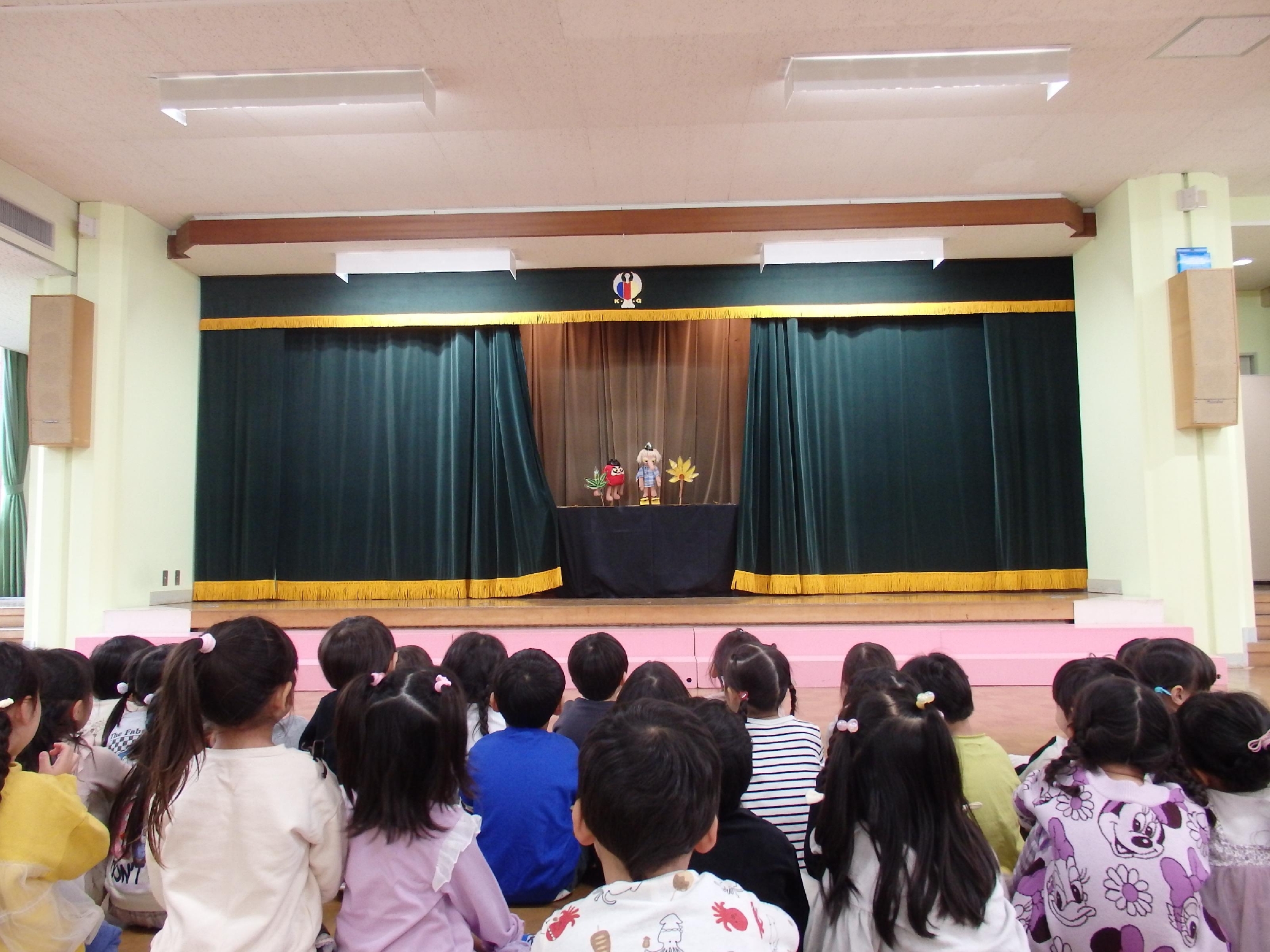 今回の先生たちからのお楽しみは、『だるまちゃんとてんぐちゃん』の人形劇!