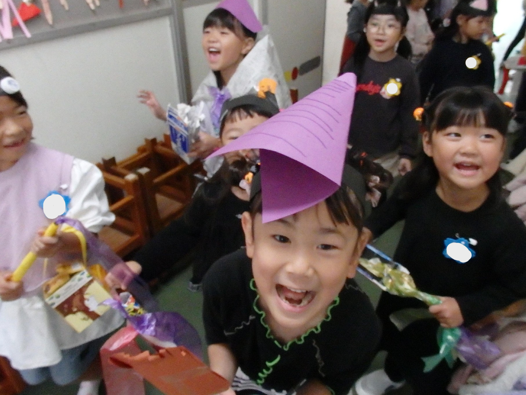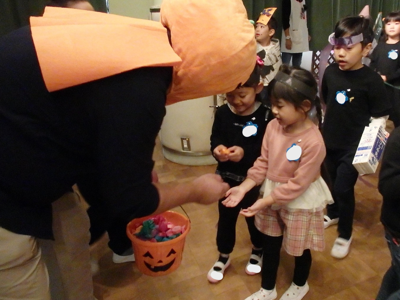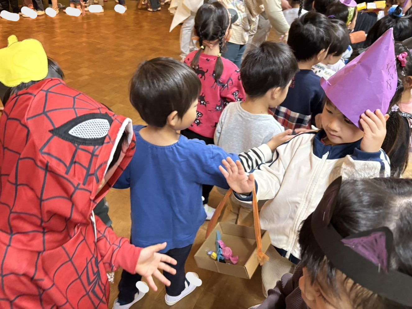 仮装した先生から、ドングリアメのプレゼント(食べられません)をもらい、とても嬉しそうな表情の子がたくさんいました。ハロウィンの意味を知って、全学年で楽しむ素敵なハロウィンを過ごすことができました♪