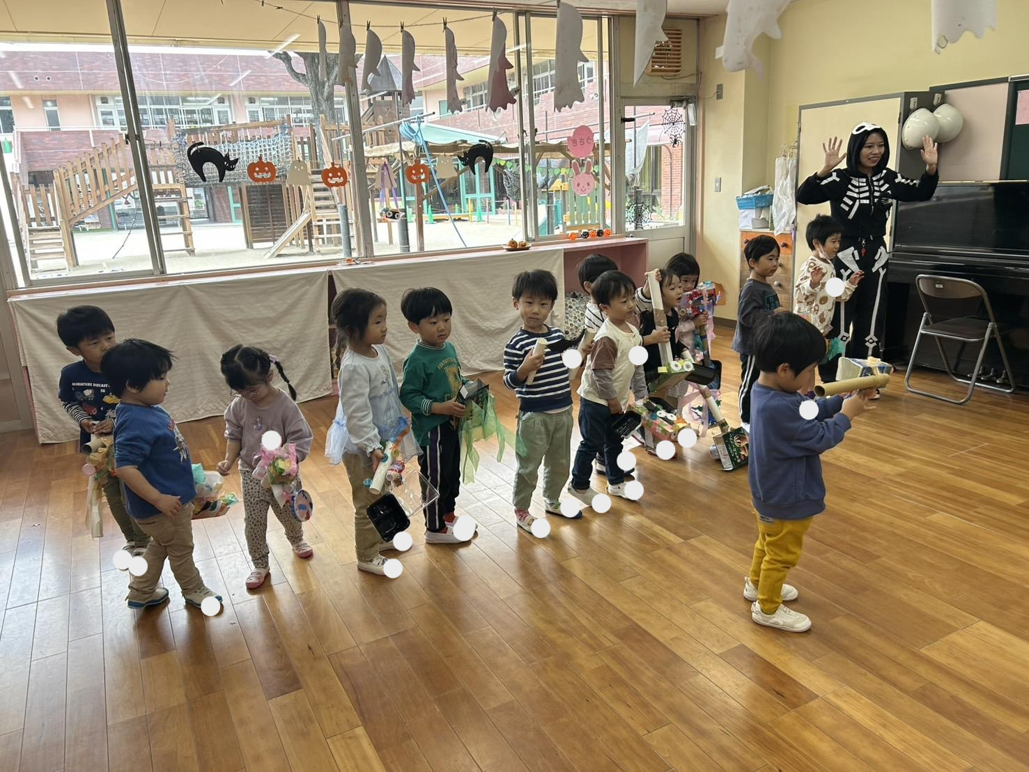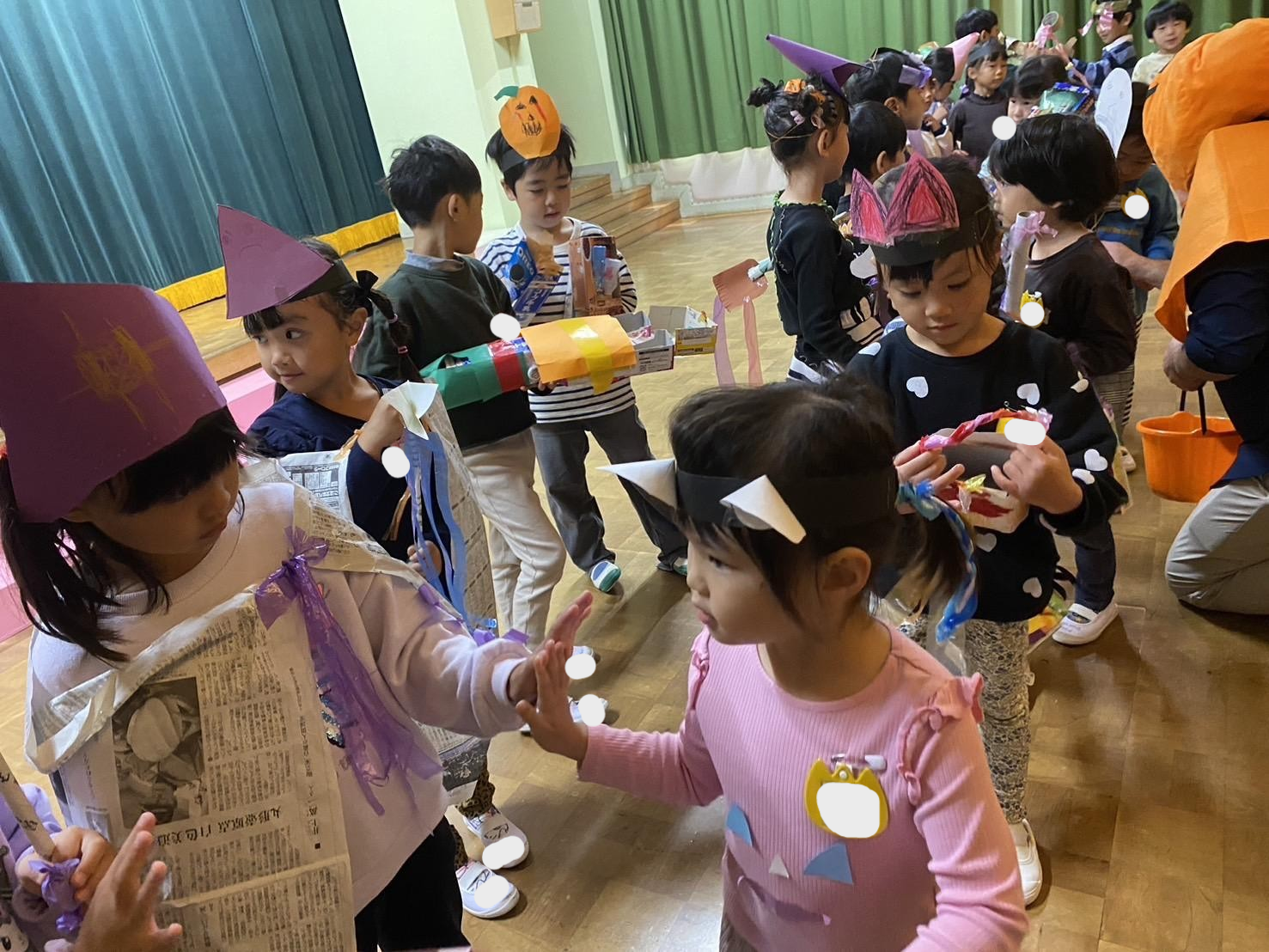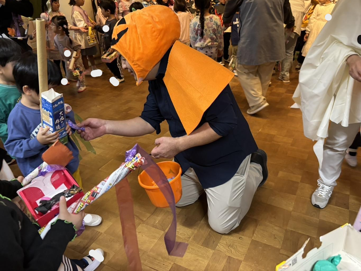 仮装した先生から、ドングリアメのプレゼント(食べられません)をもらい、とても嬉しそうな表情の子がたくさんいました。ハロウィンの意味を知って、全学年で楽しむ素敵なハロウィンを過ごすことができました♪
