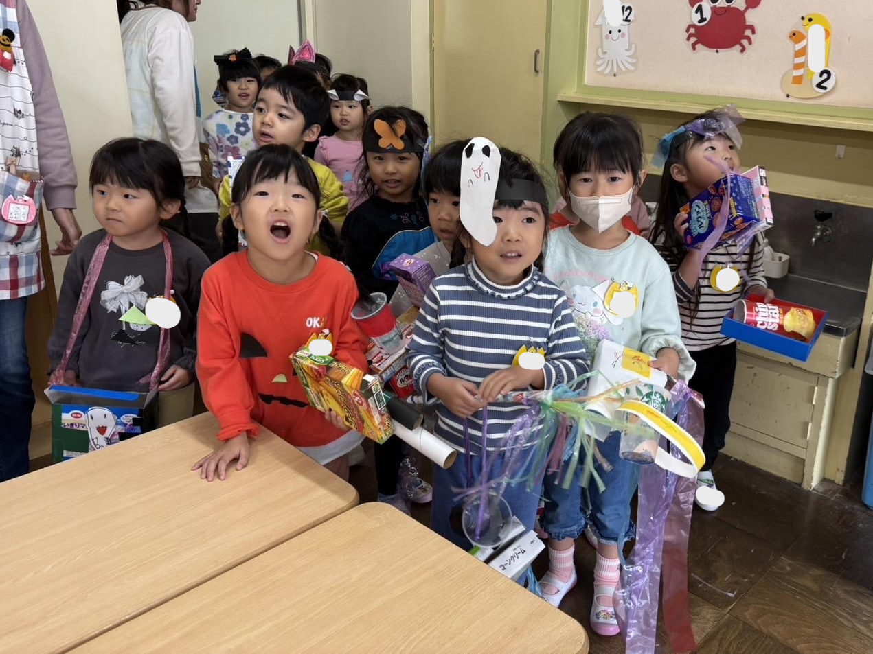 朝から色々なものに仮装した先生達がお出迎え!子どもたちは、「なんか怖い~!」「トリックオアトリート!」と楽しそうに登園してきました!