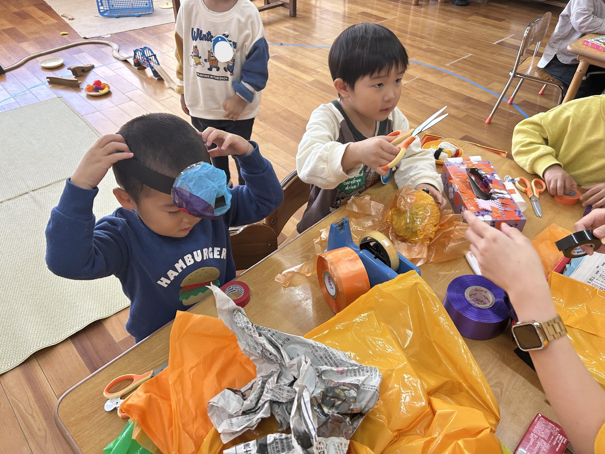 魔女のほうきや、おばけ退治のビームが出るコウモリ、「キャンディーいっぱい入れるの!」とトリック・オア・トリートを楽しみに作ったバッグなど、思い思いの素敵な作品が完成しました🍭