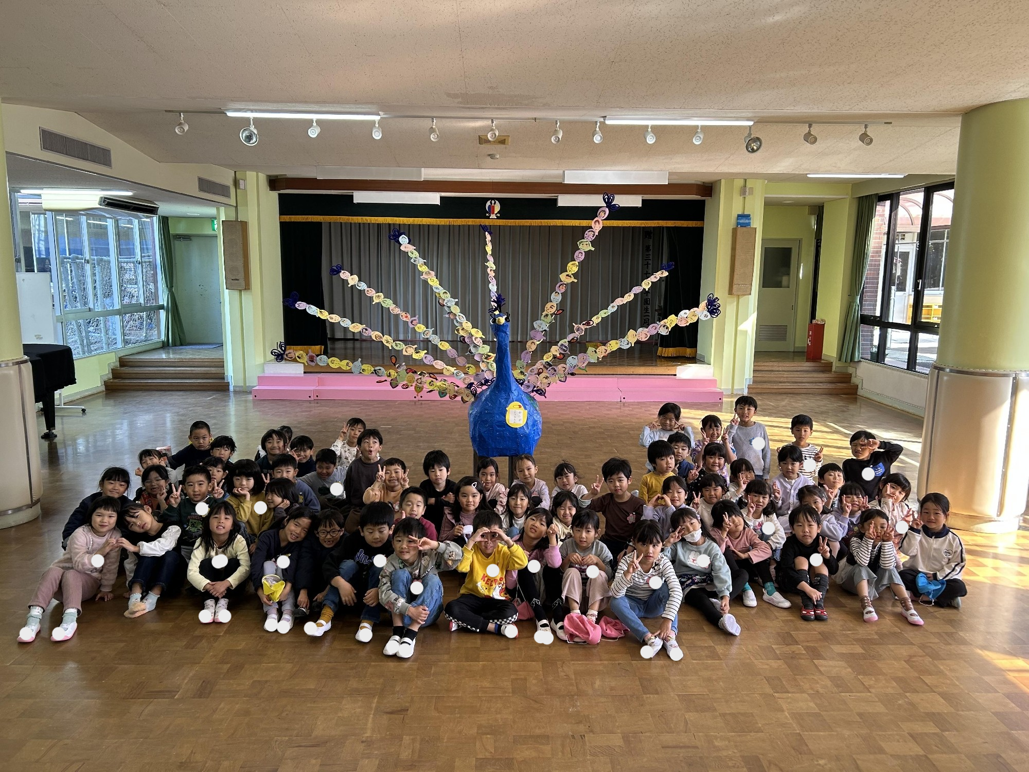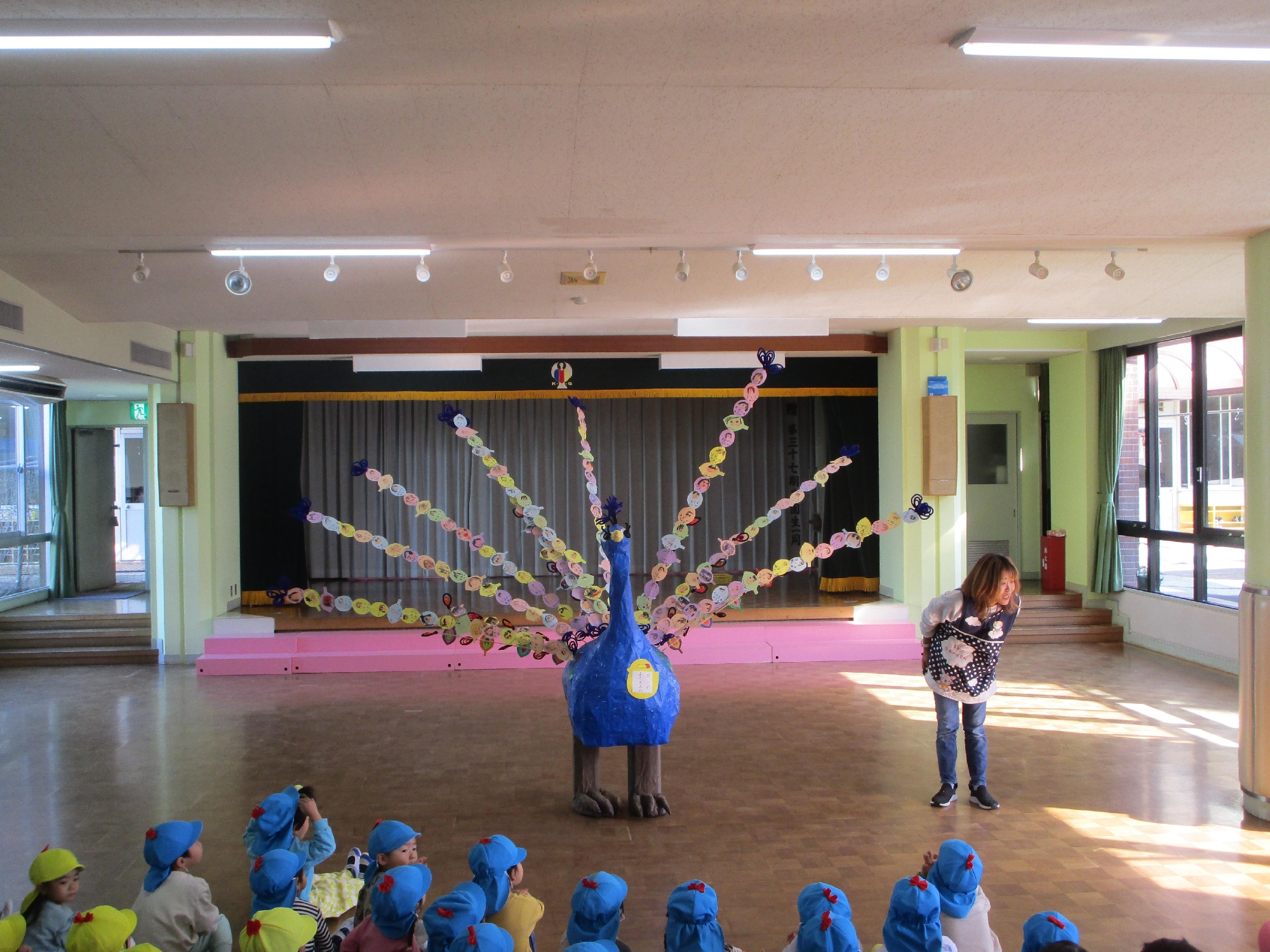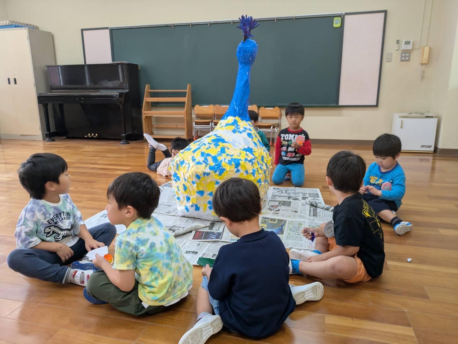 今日、出来上がったくじゃくを子どもたちにお披露目したあと、