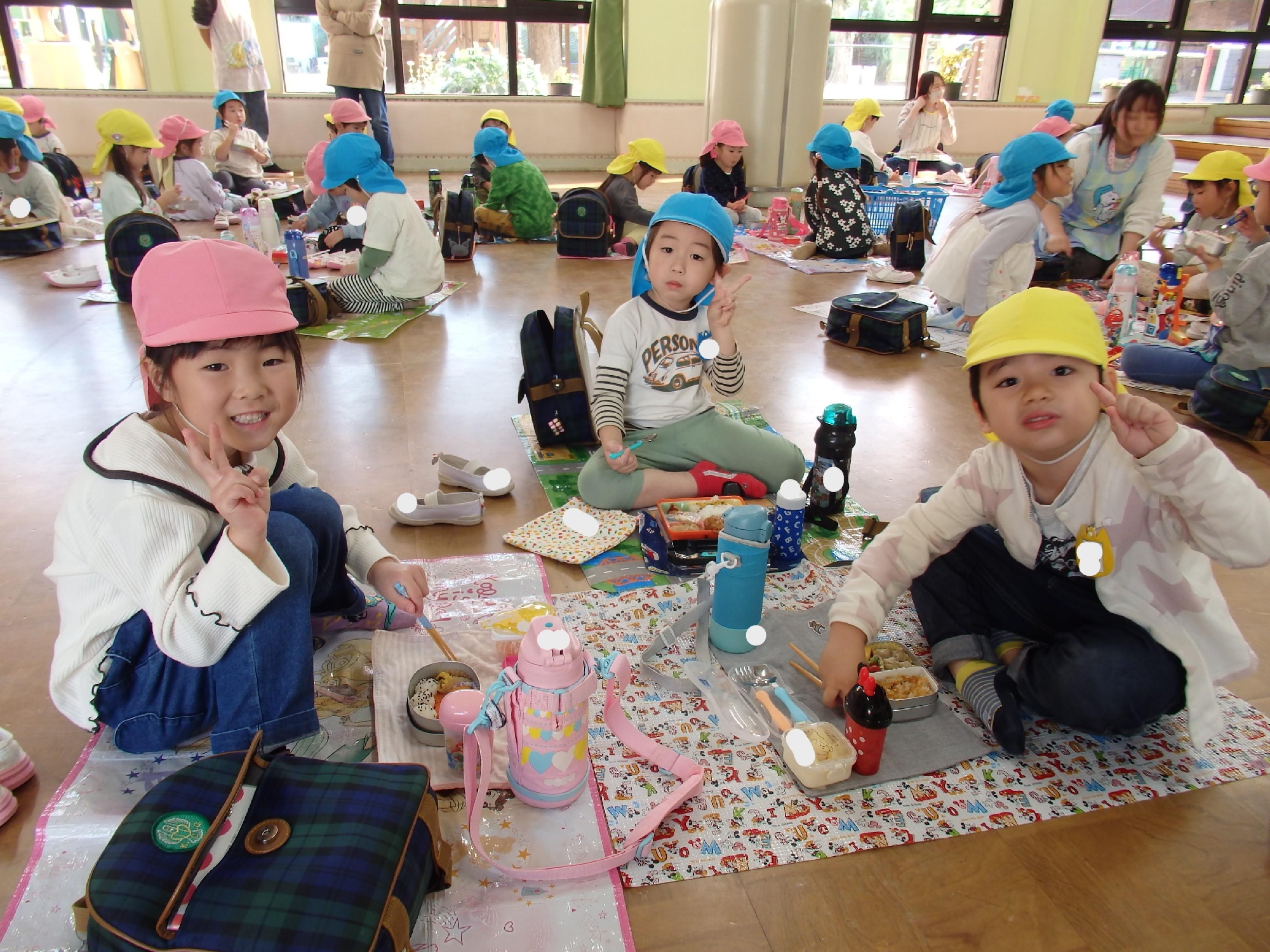 最後に、3クラスの友達が集まってお弁当を食べました。