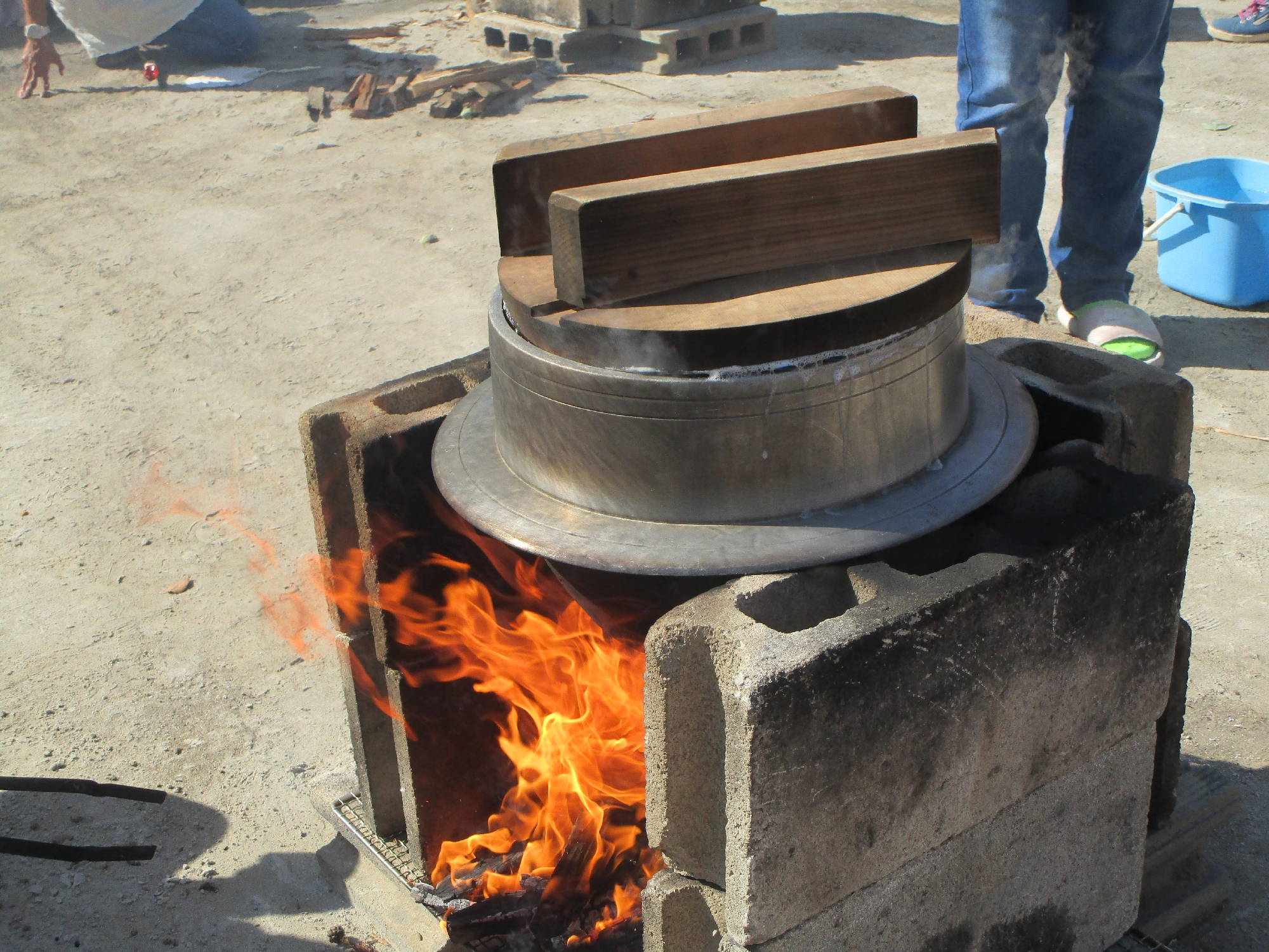 今回は釜を使った昔ながらの方法でごはん炊きをしました。