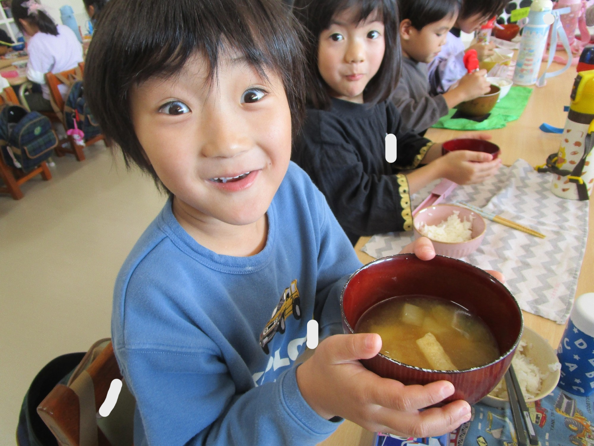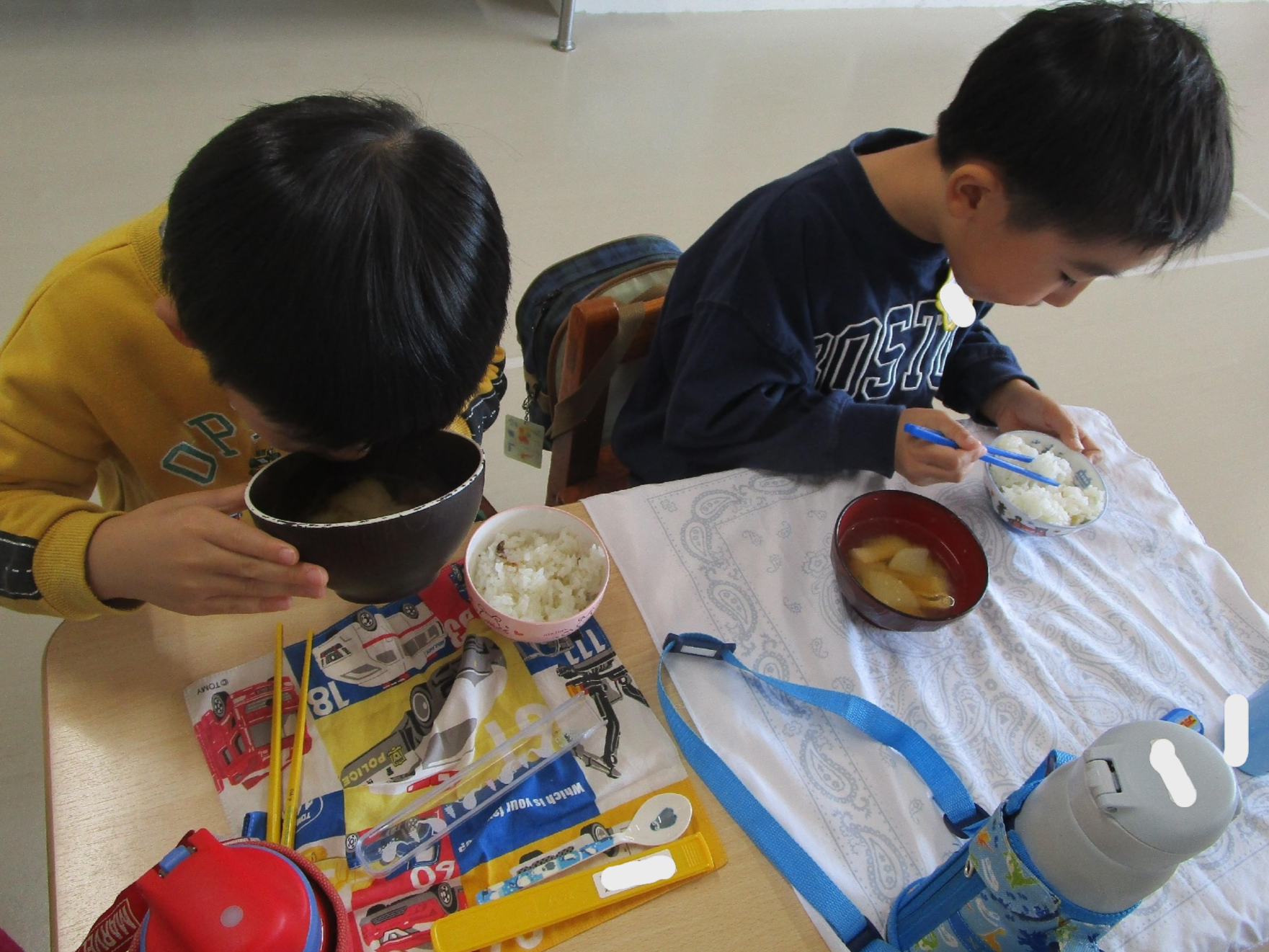 「ツヤツヤのお米で美味しい!」と、ご飯1粒残さず食べ、自分たちで作った味噌・野菜を使ったお味噌汁をたくさんおかわりしていました😊