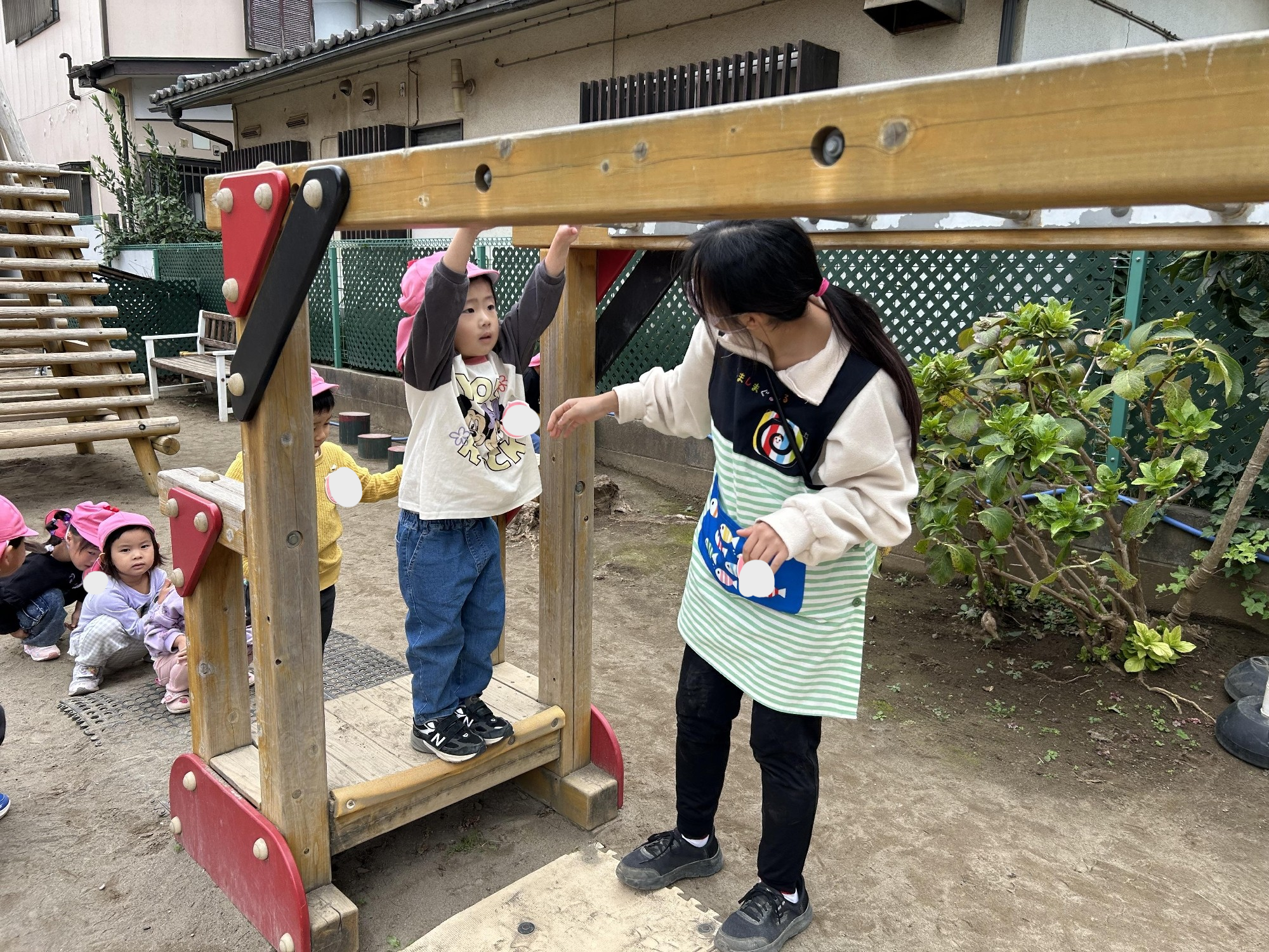 どの遊具も、遊具から手を離さないように、手にしっかり力を入れて行いました。