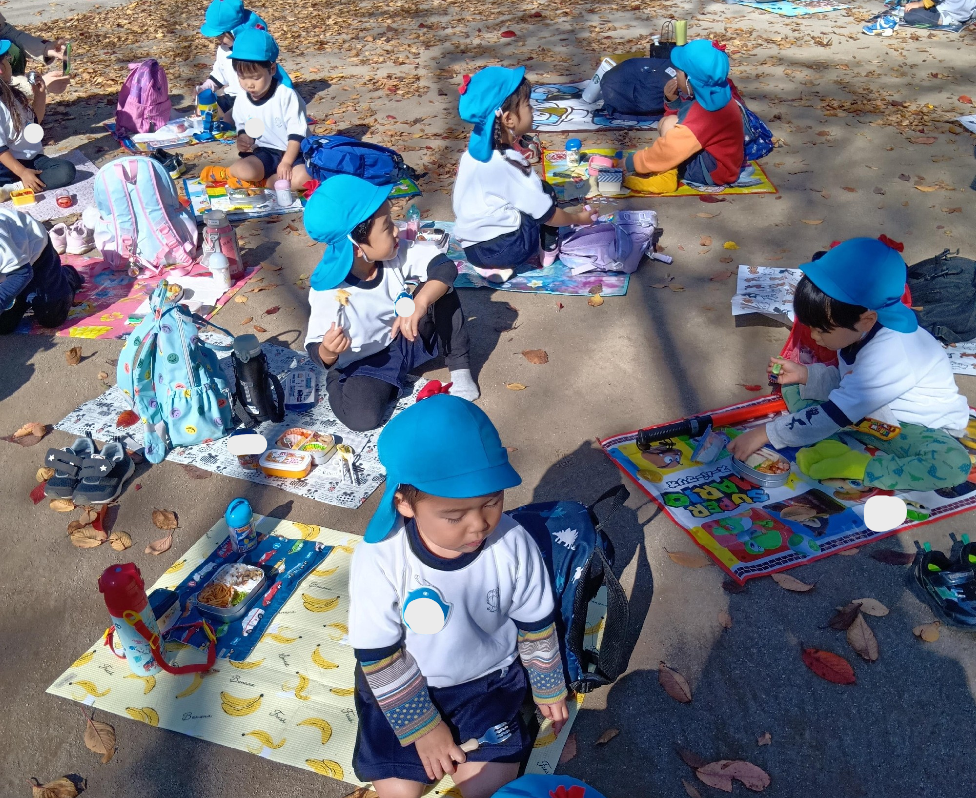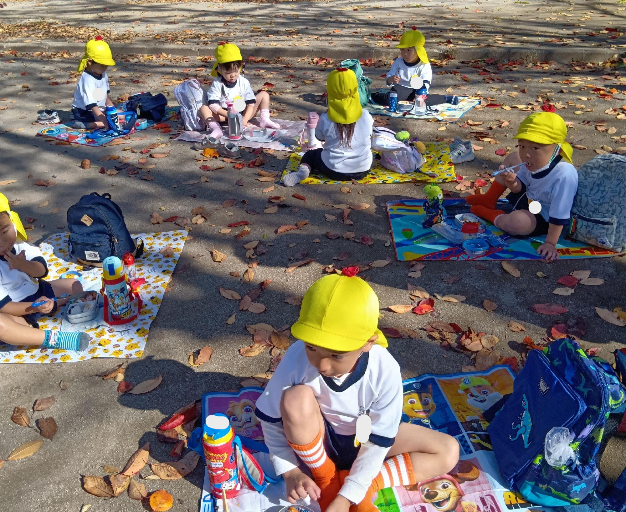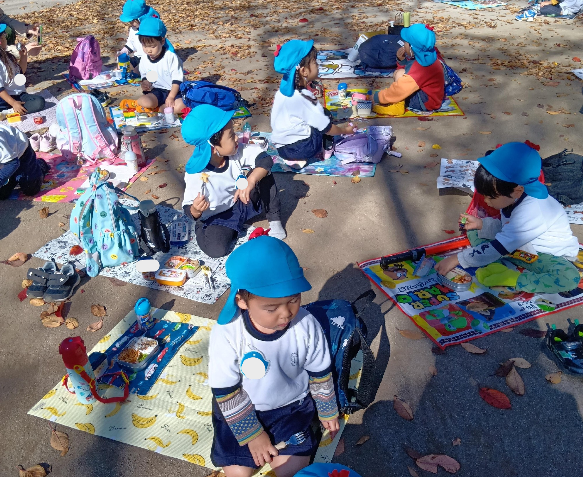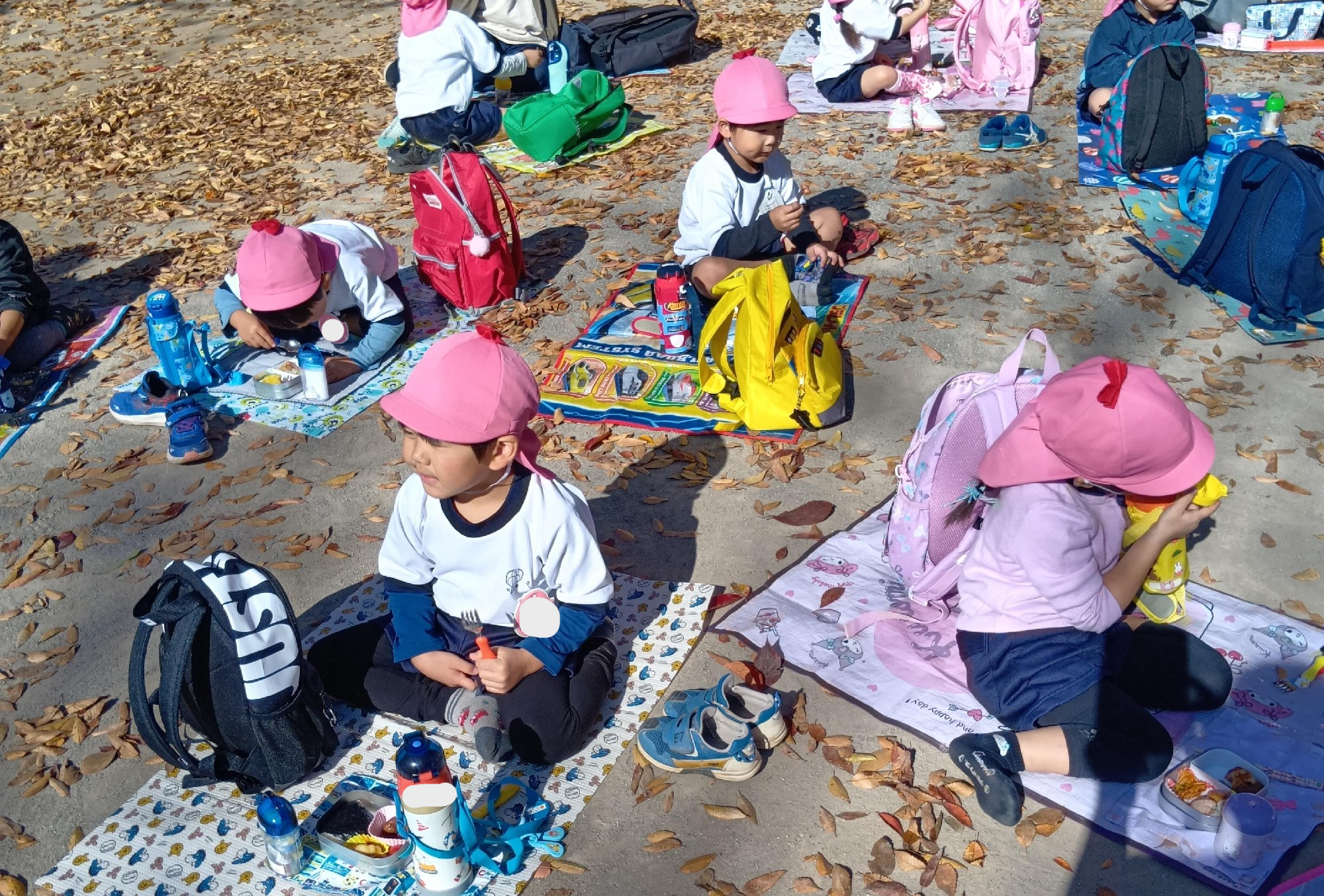 ぽかぽか天気の下、外で食べるお弁当は格別に美味しかったようです☺