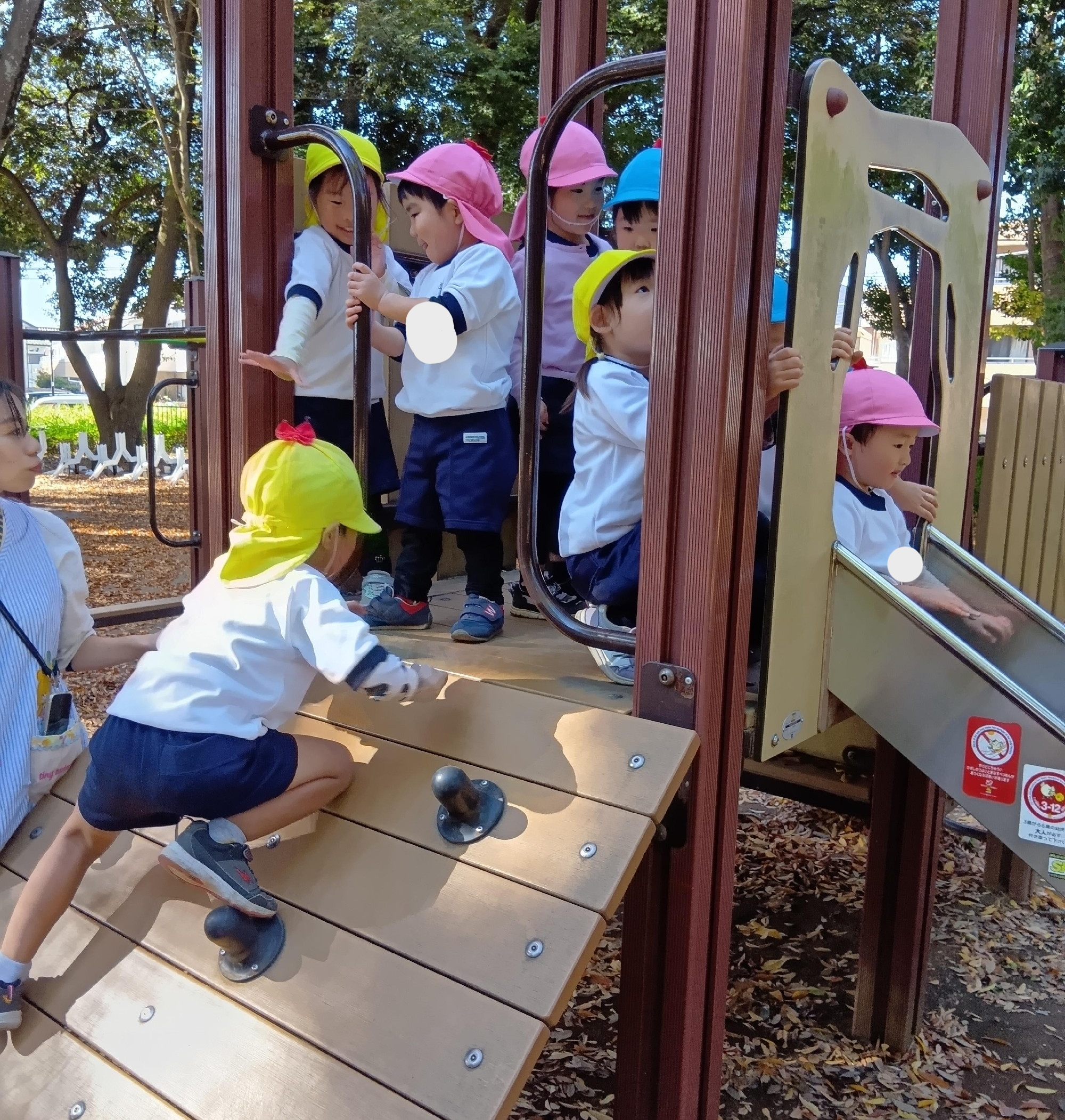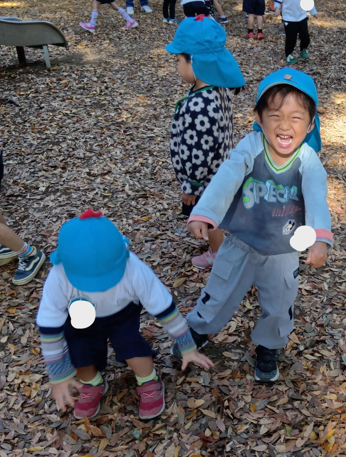 お弁当を食べ終わった後は、遊具や落ち葉で体をたくさん動かして思いっきり遊びましたよ!!