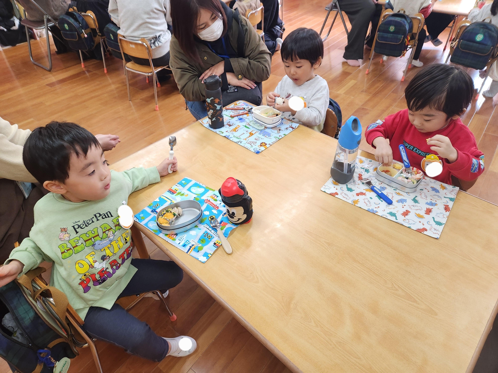 初めてのお弁当なので、保護者の方にも来ていただいて準備や片付けをしてみましたよ。