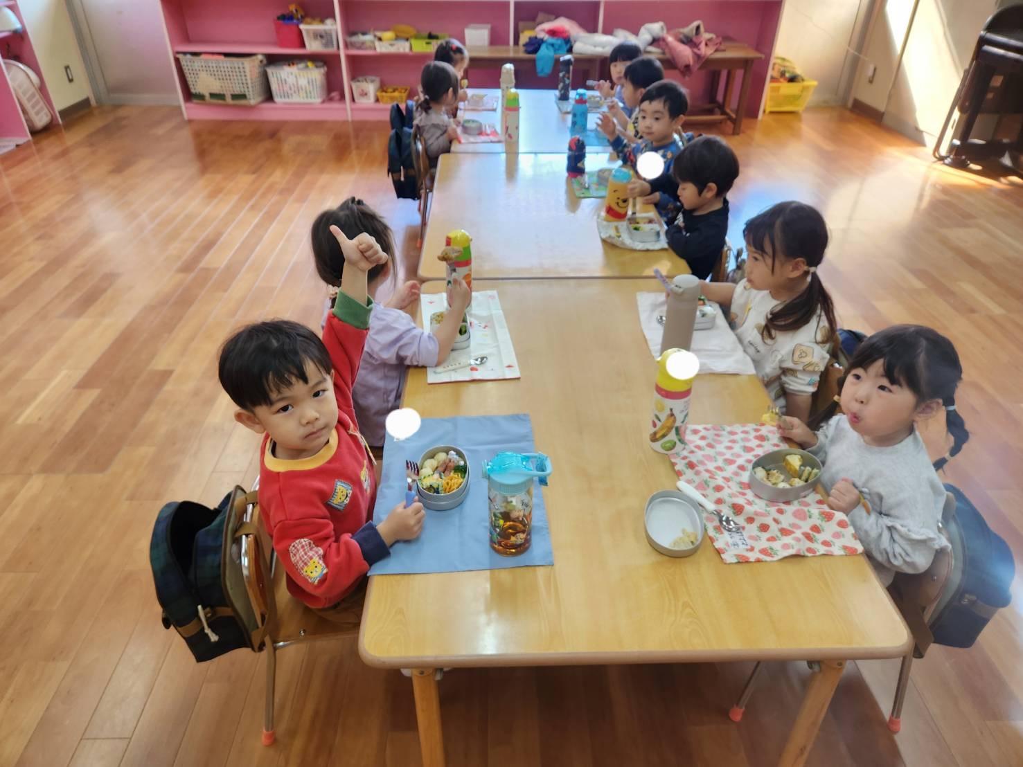 お弁当を出して、スプーンやフォークを並べて...1つ1つ覚えてきた子どもたちは自分の力で準備することができるようになってきましたよ。