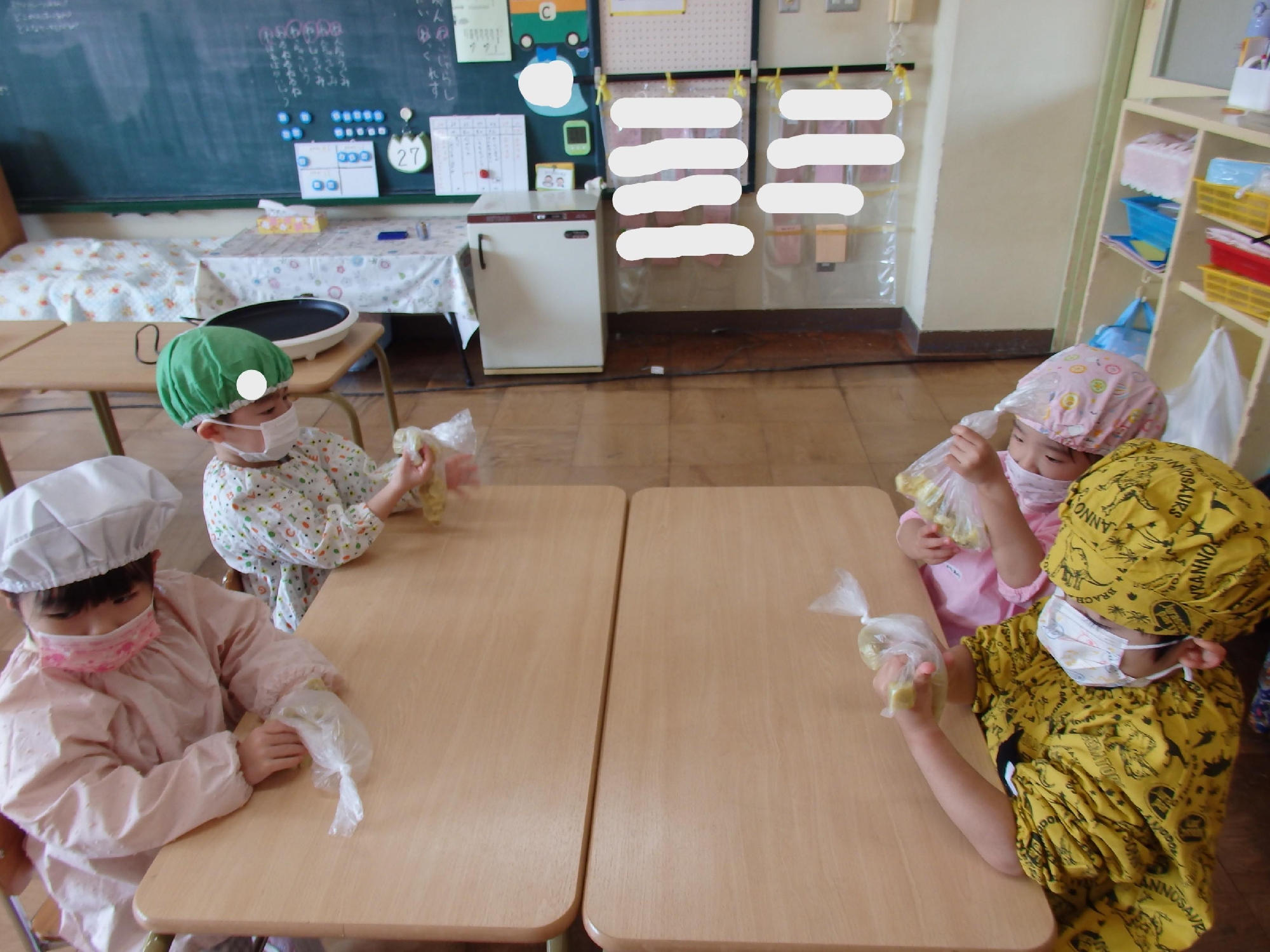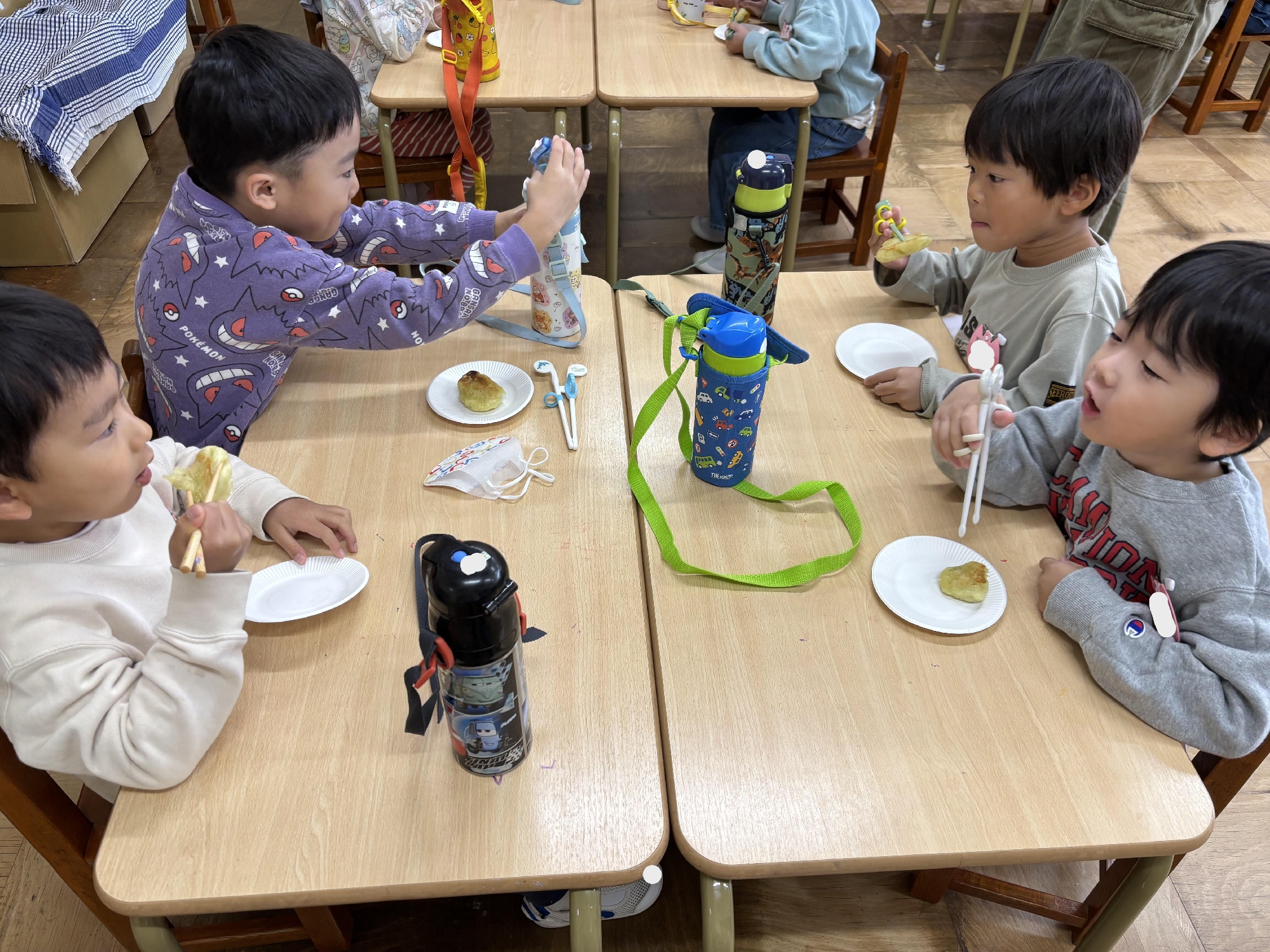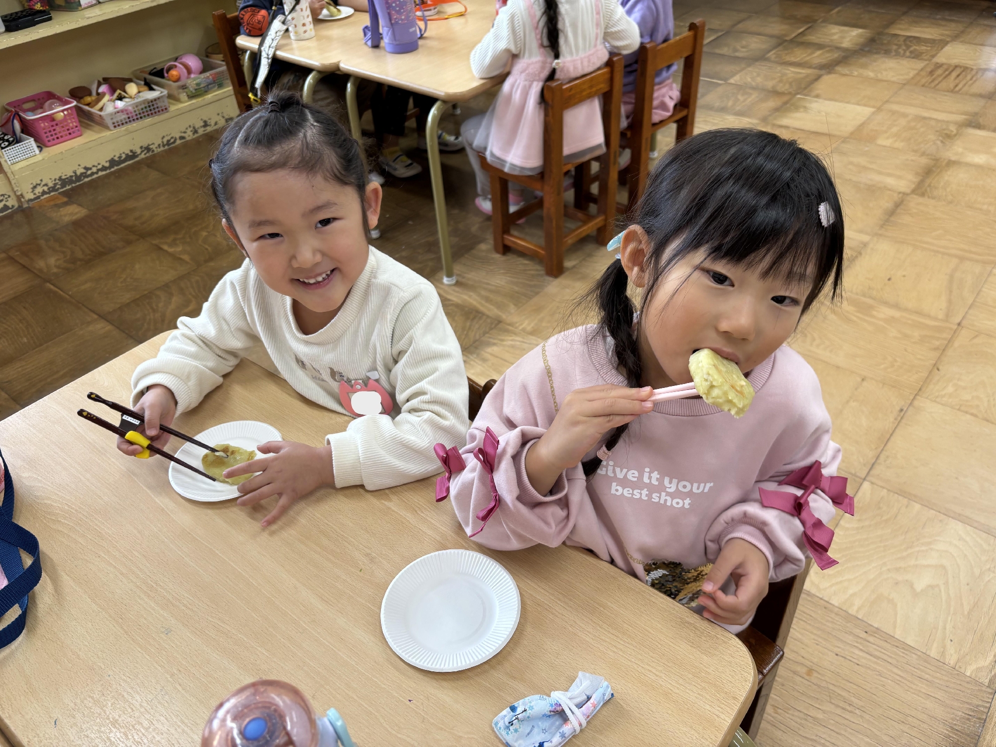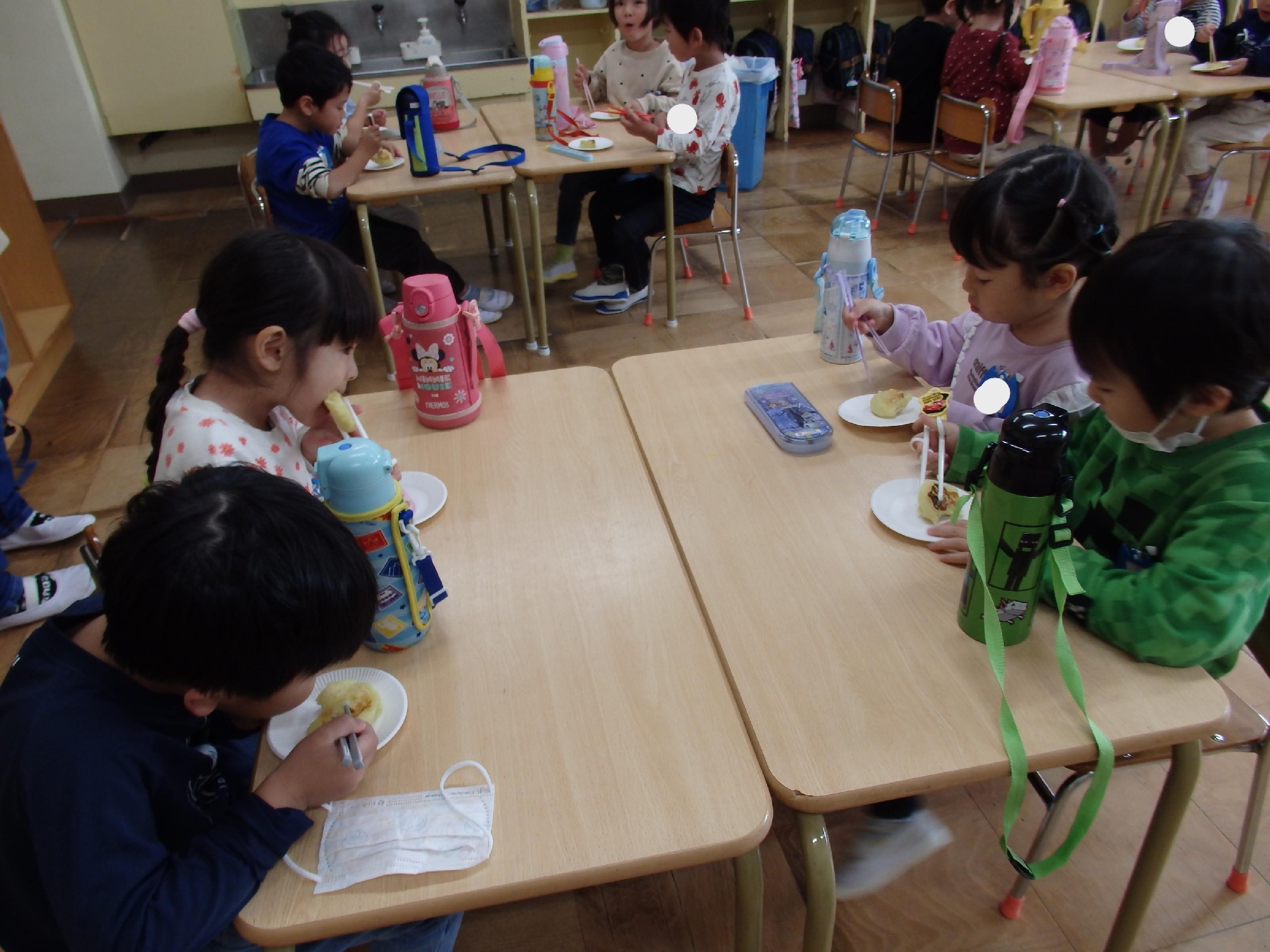 片栗粉を入れることで、もちっとした食感になることを知り、焼いも、いももちと自分たちで収穫したさつまいもをたくさん味わうことができ、とても喜んでいました😊