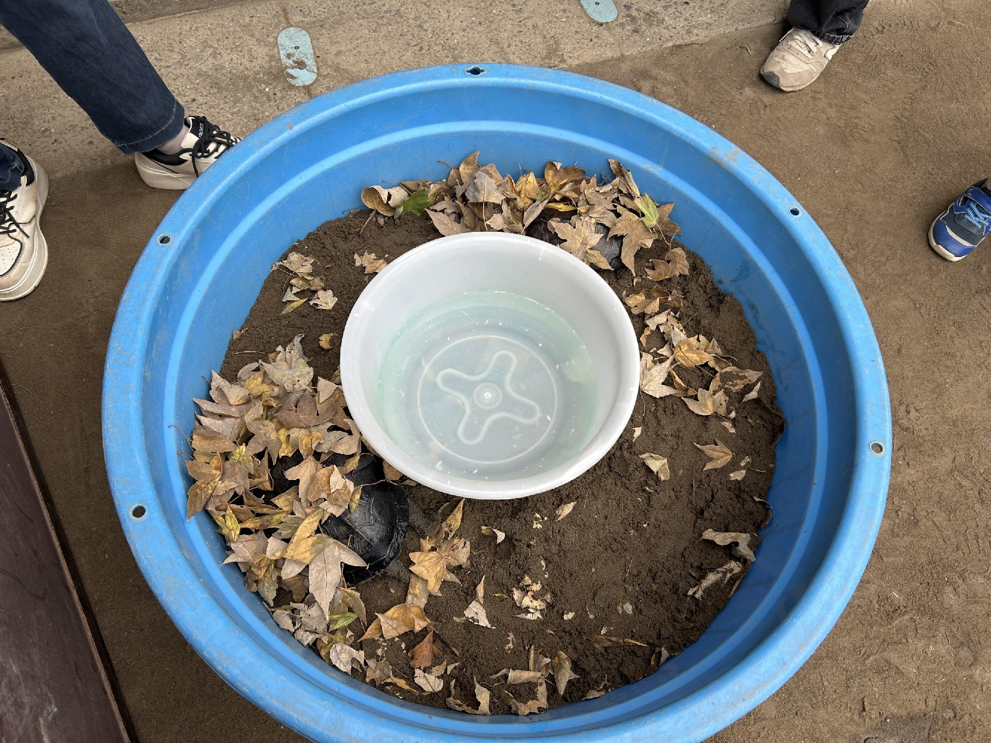 そこに、かめさんたちの水分補給用のお水も入れて、冬眠用のお家の完成!