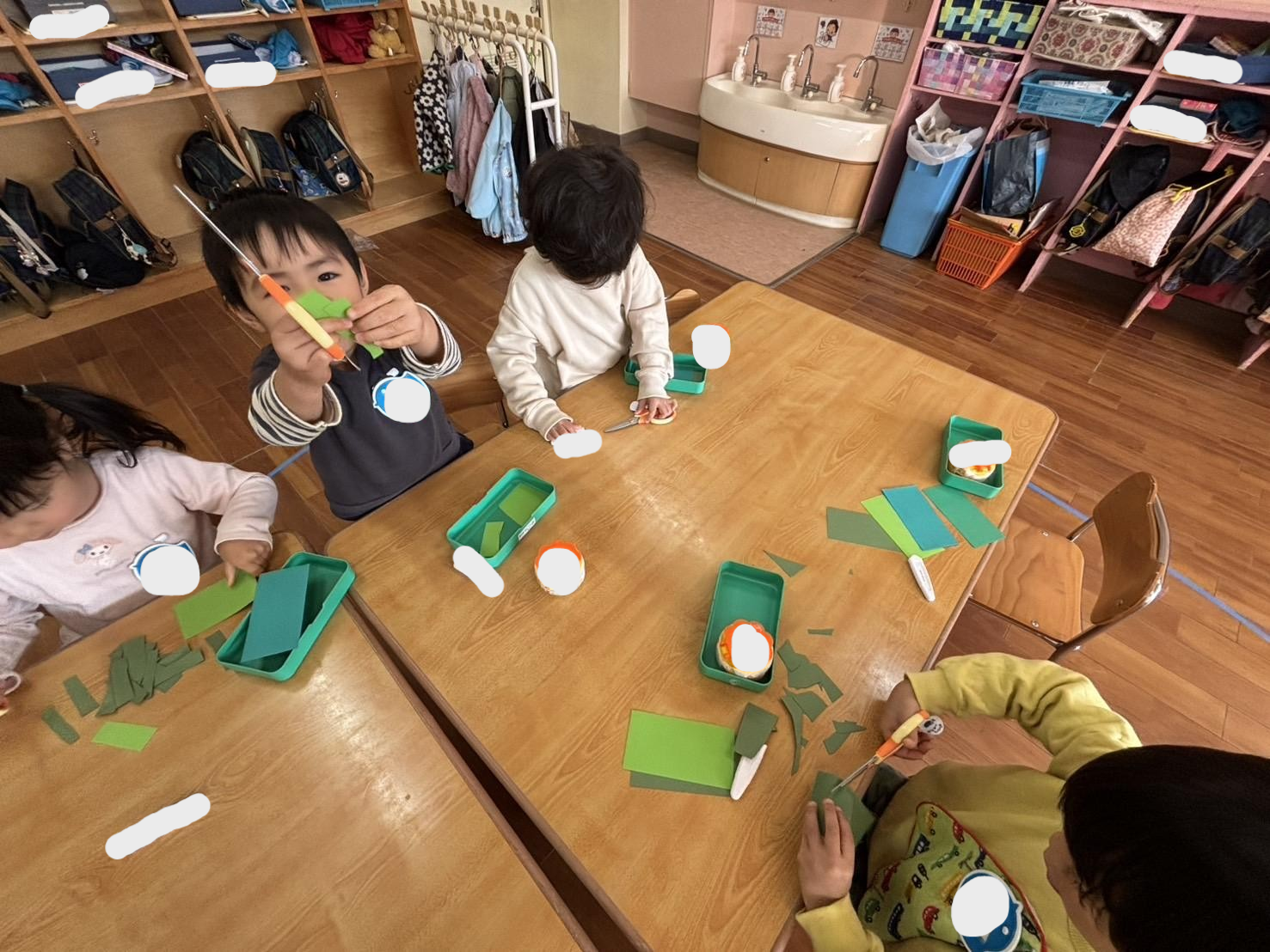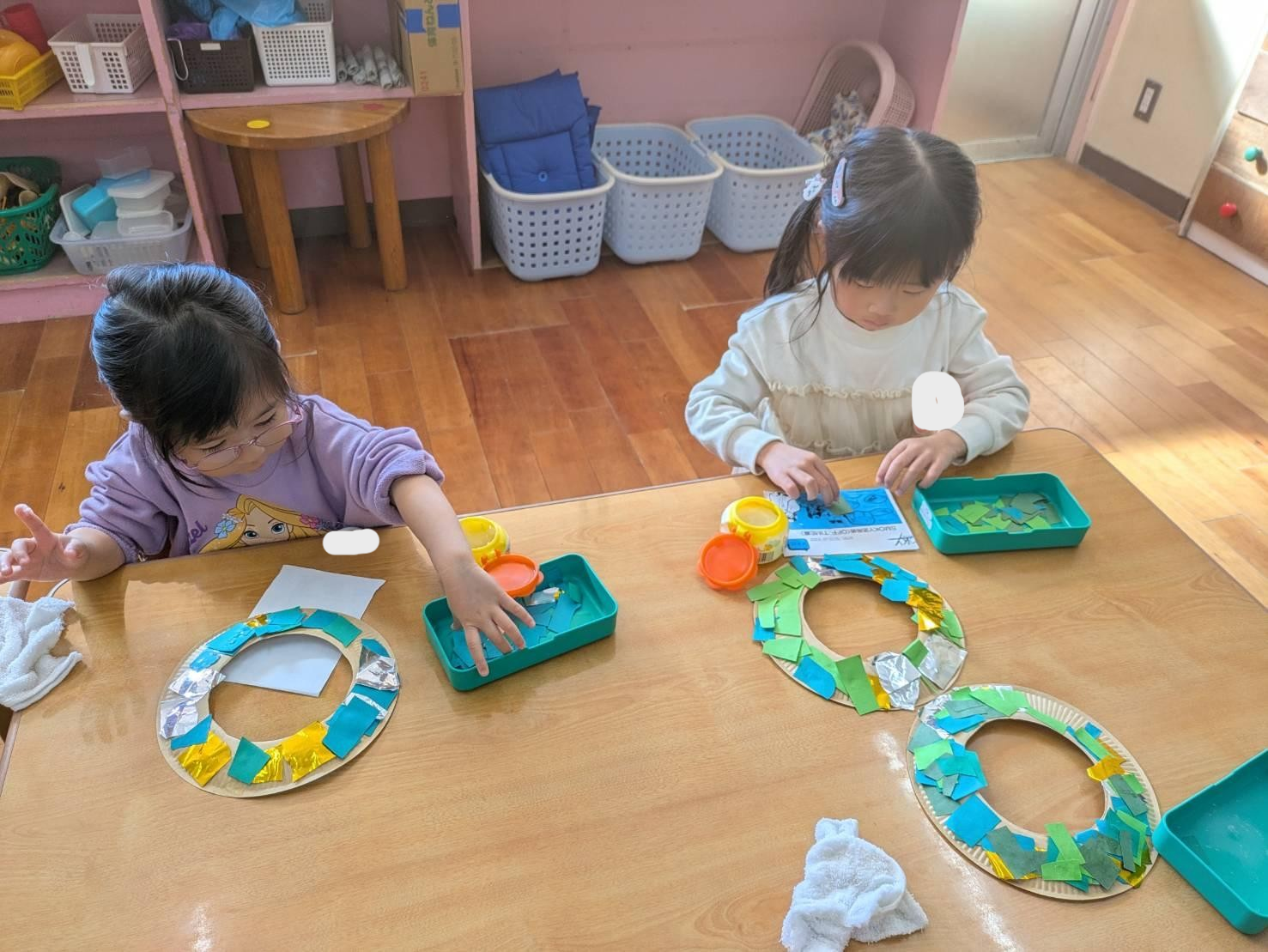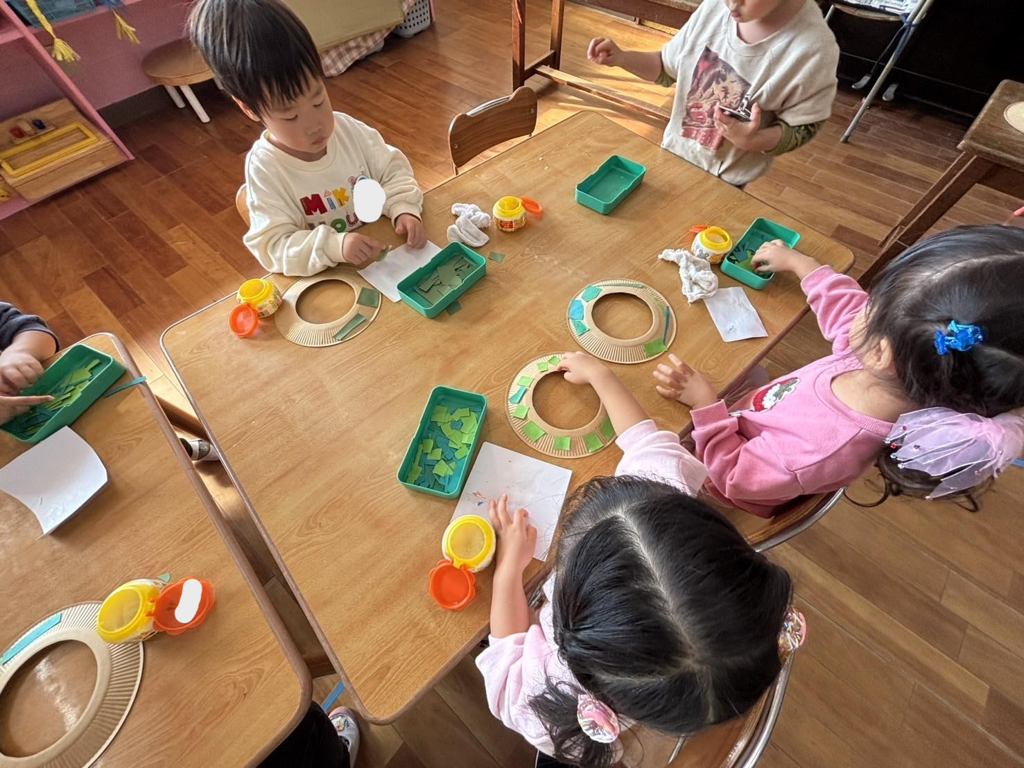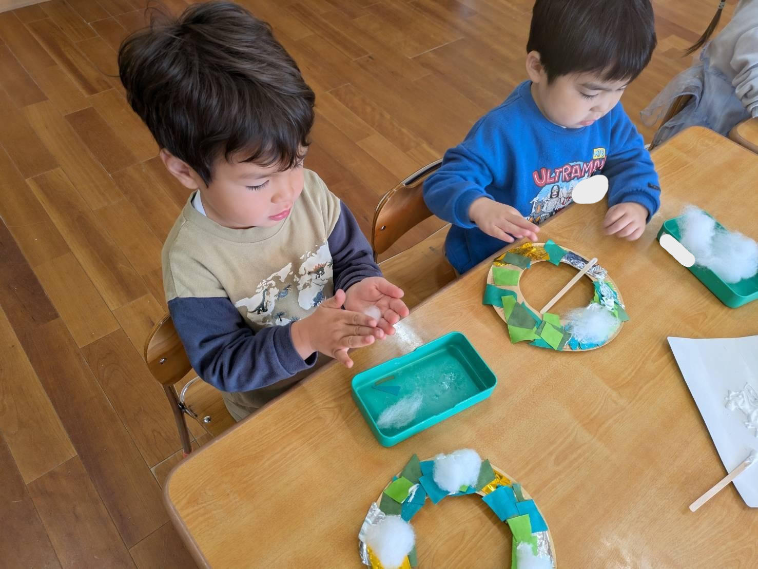 お友達とにこにこしながら製作していました。