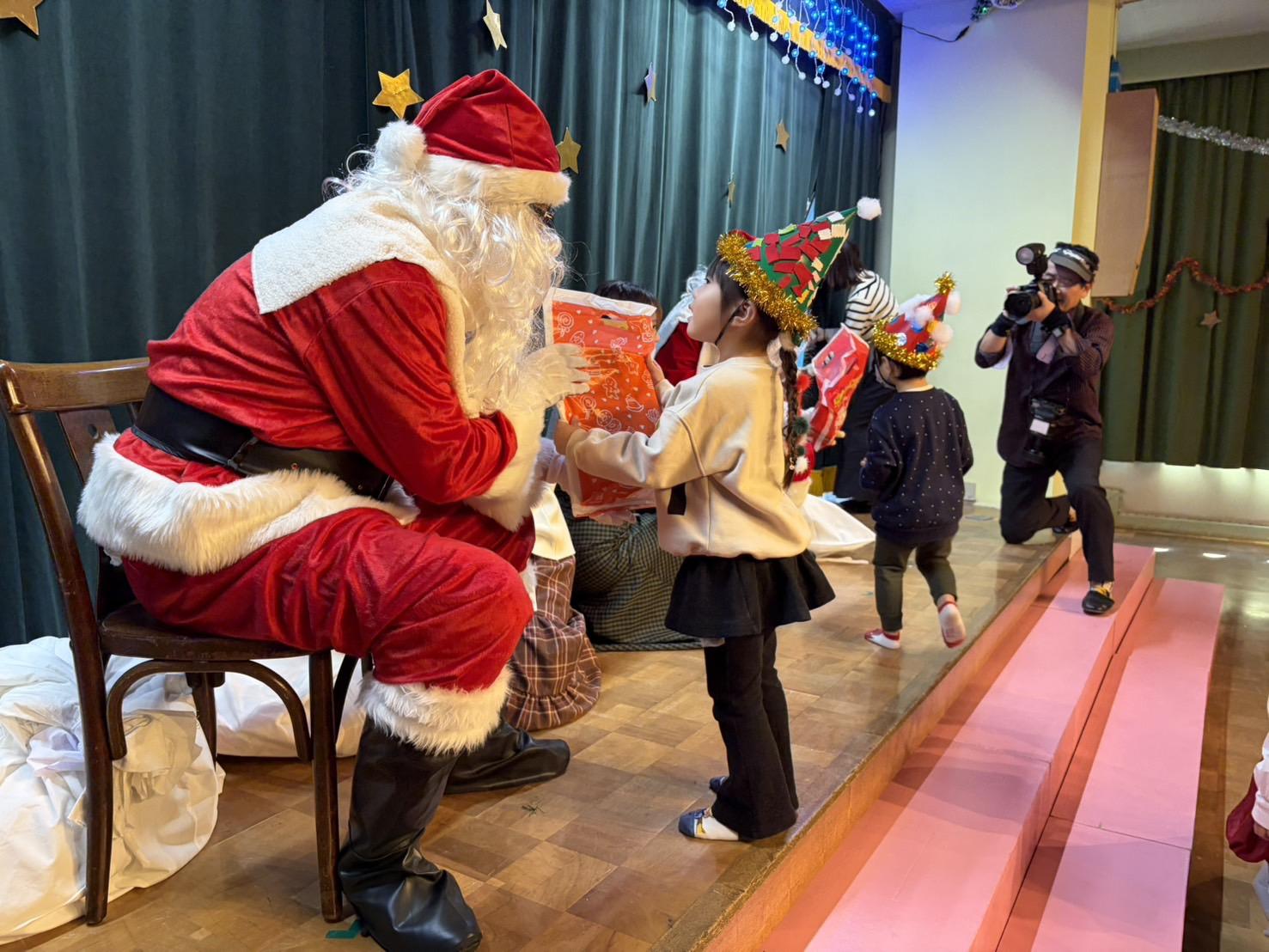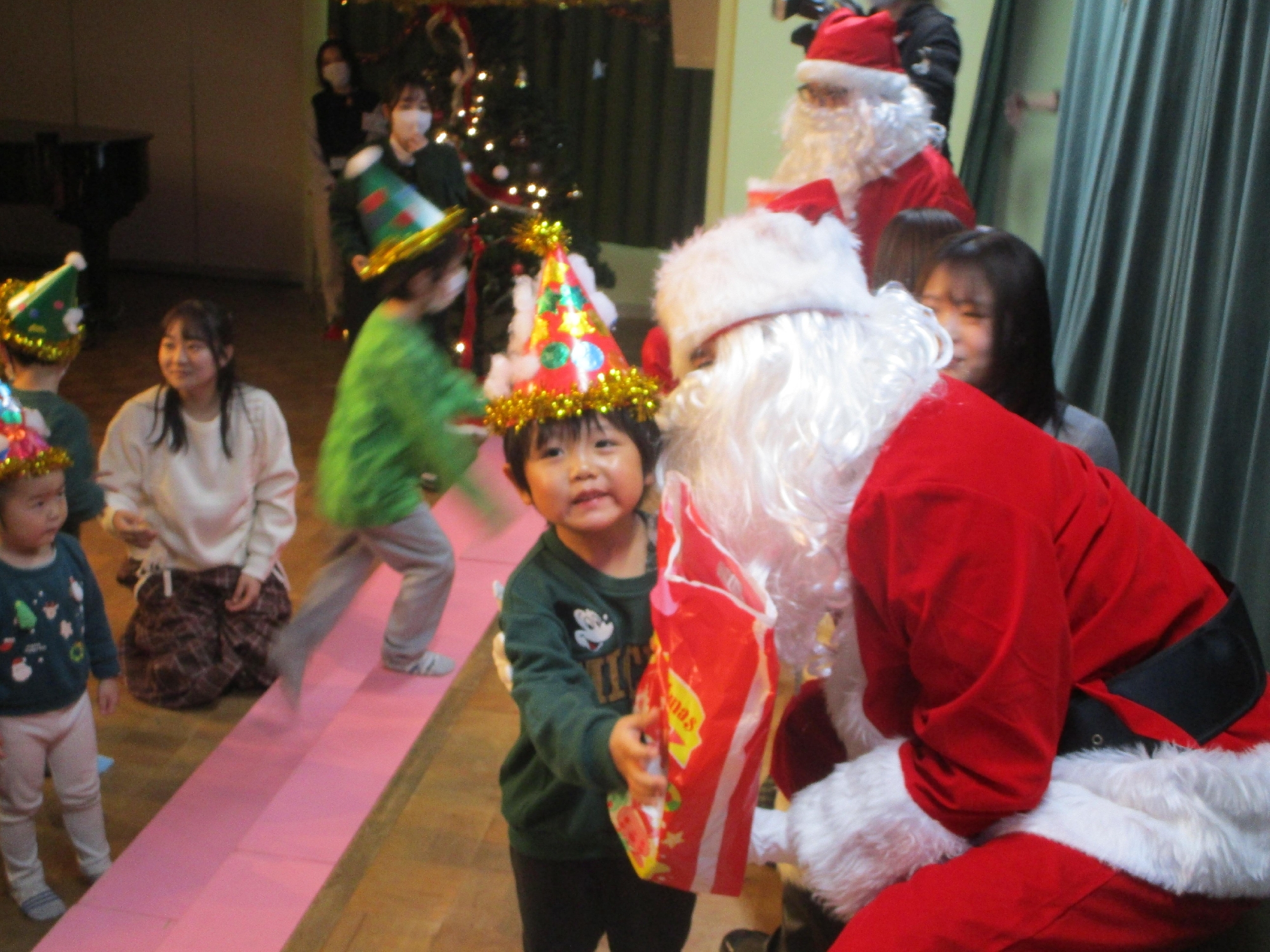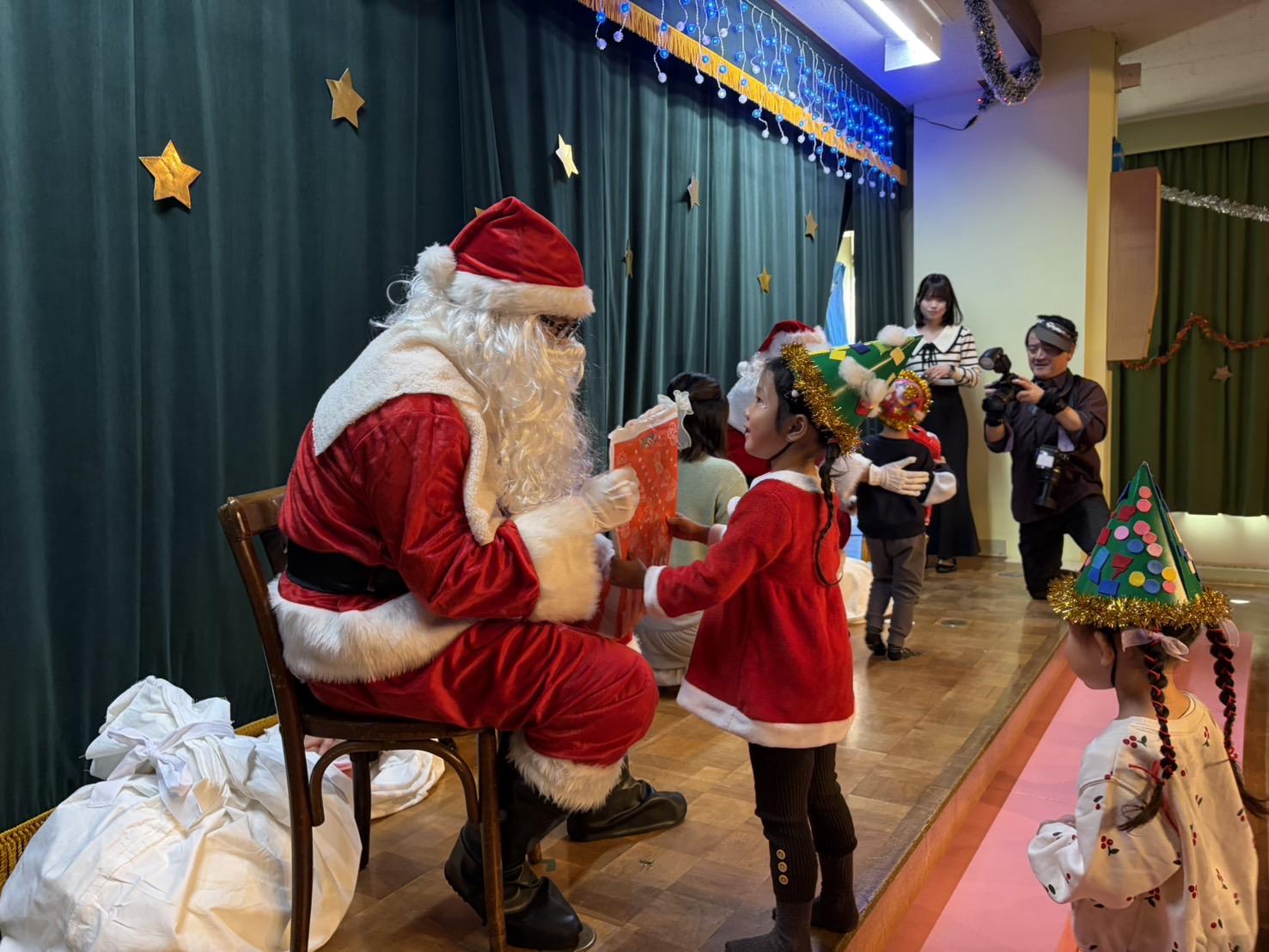 最後にサンタさんからプレゼントをもらうと「メリークリスマス」と挨拶をしたり、ドキドキしながら「ありがとう」とお礼を言ったり、ニコニコで握手をしてもらったりしていました😊