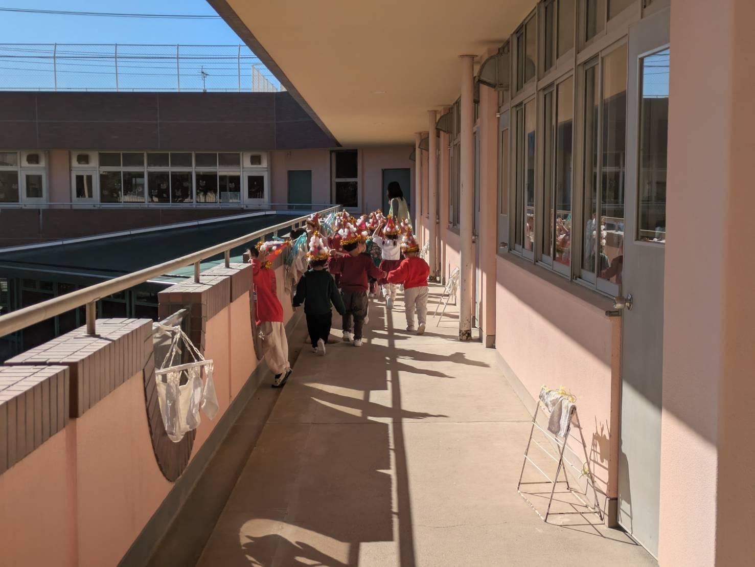 12月15日(月)、クリスマス会が終わった後、まだサンタさんが幼稚園にいるかもしれないと探して回りました。