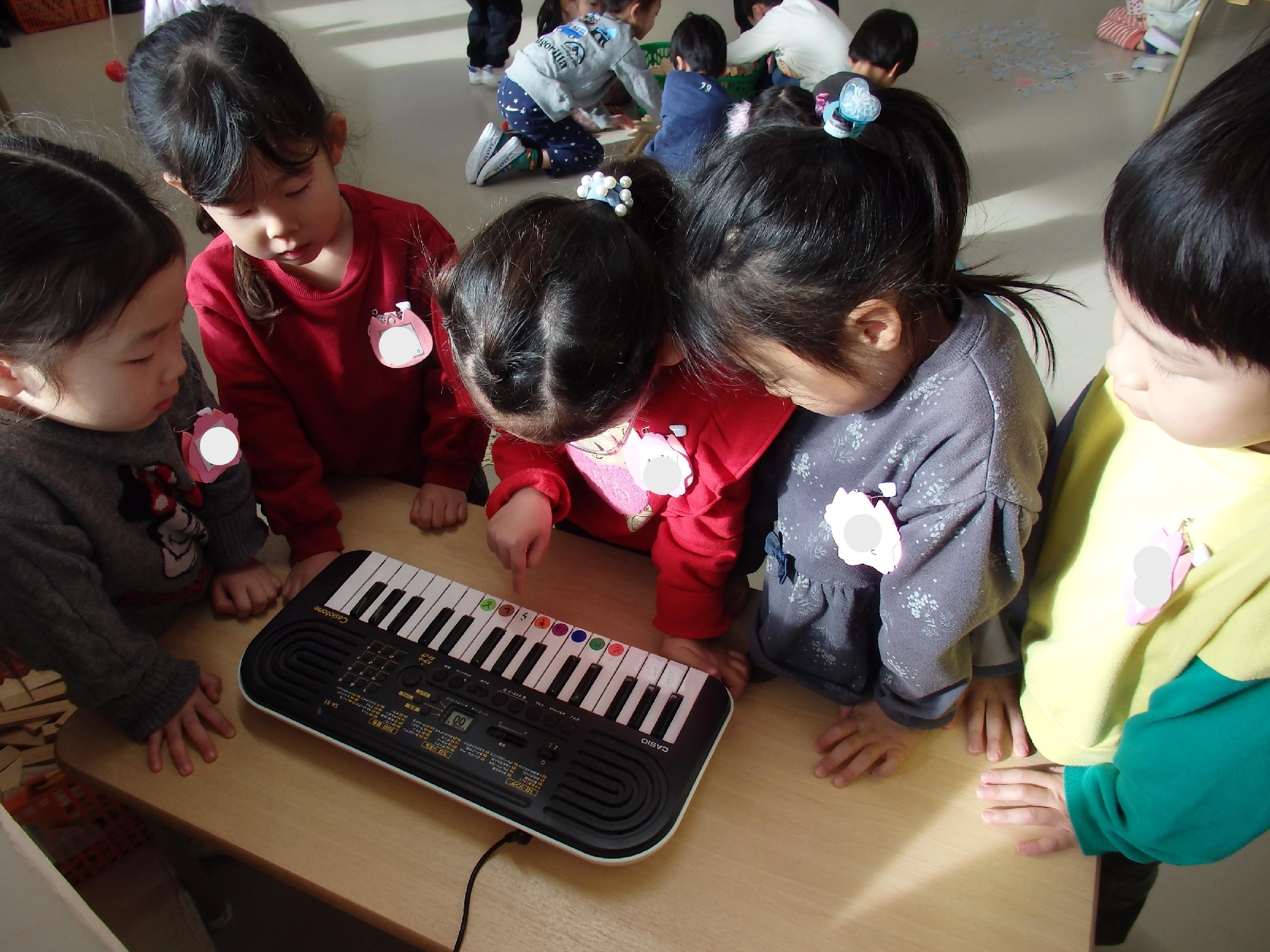 「すっごーい!」「字、かいてあるね!」「キーボードもあるよ!」「Dayカードはここに出すんだね!」と興奮が止まりません(笑)