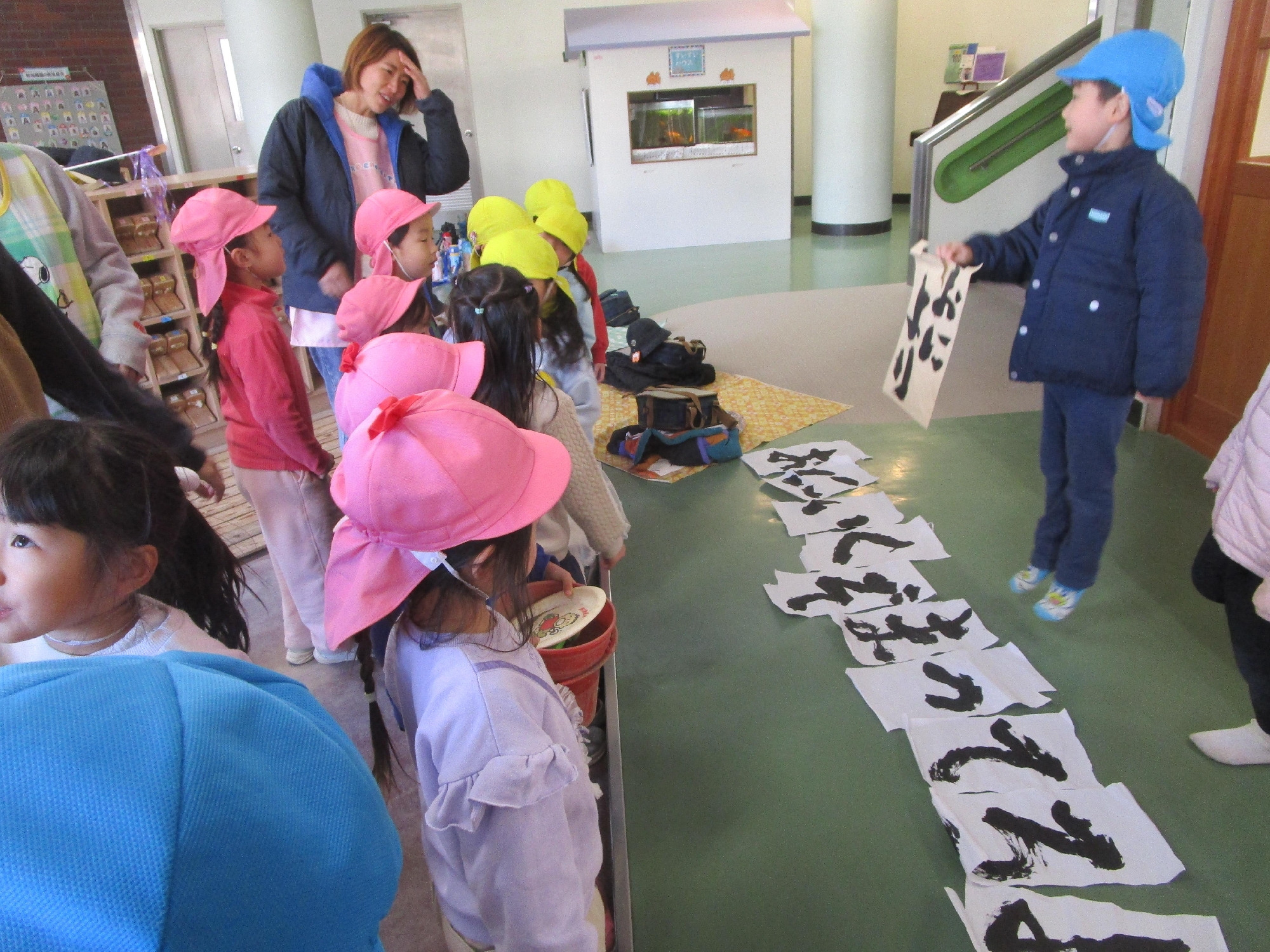 1月26日(月)、お昼を食べ終わった後、園庭で遊んでいると、あるものを発見しました。