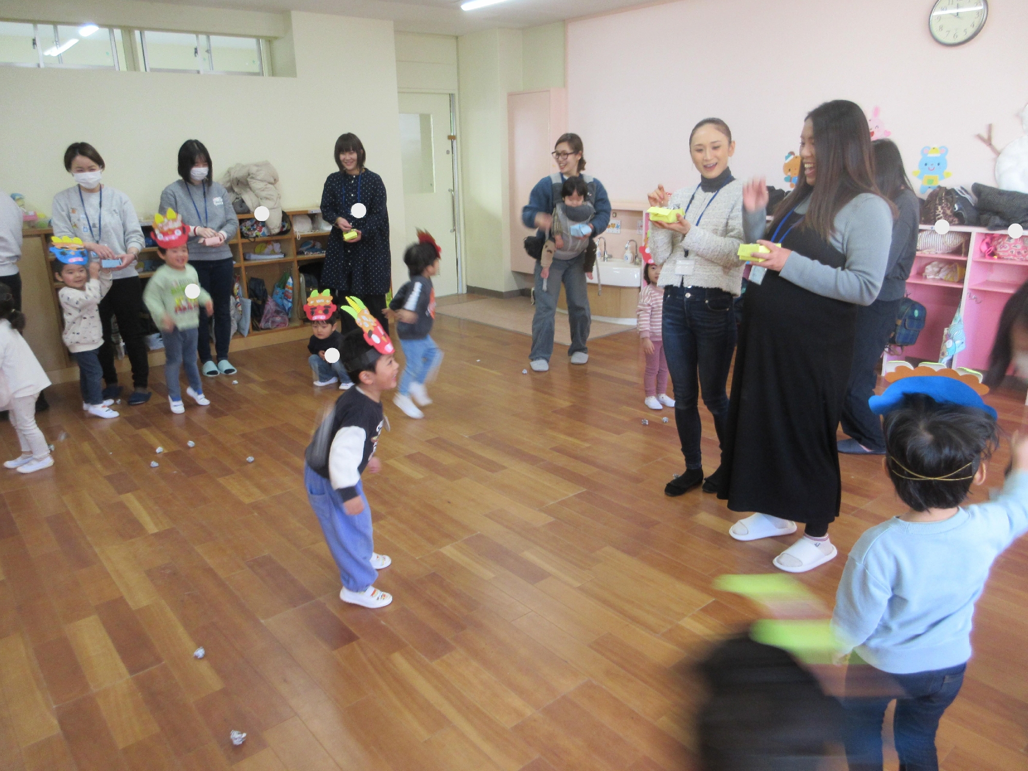 出来上がった後は、親子で順番に鬼になり豆まきを楽しみました(*^^*)