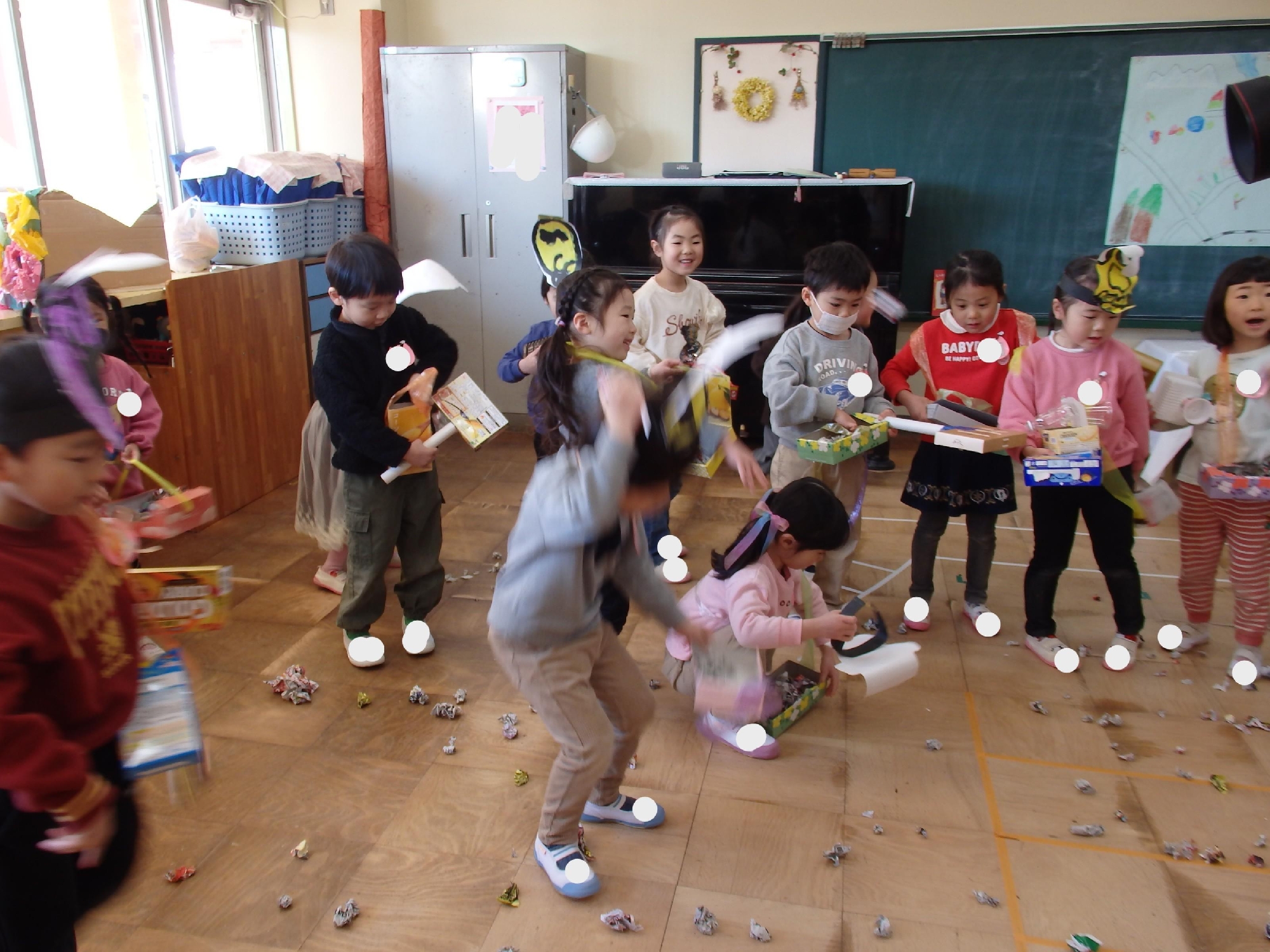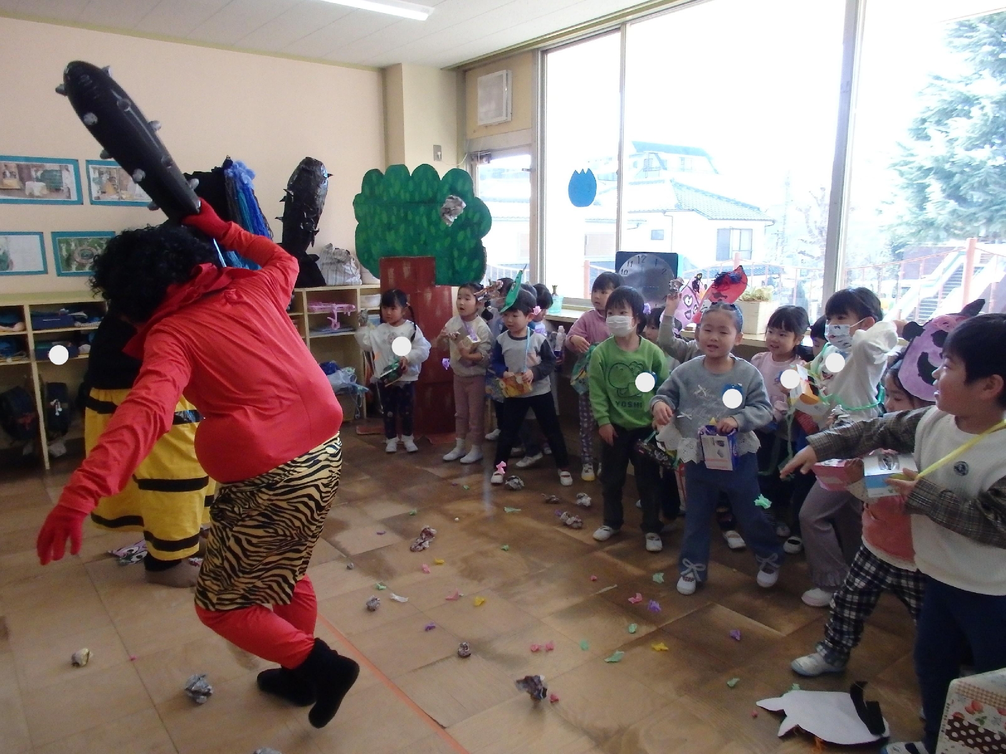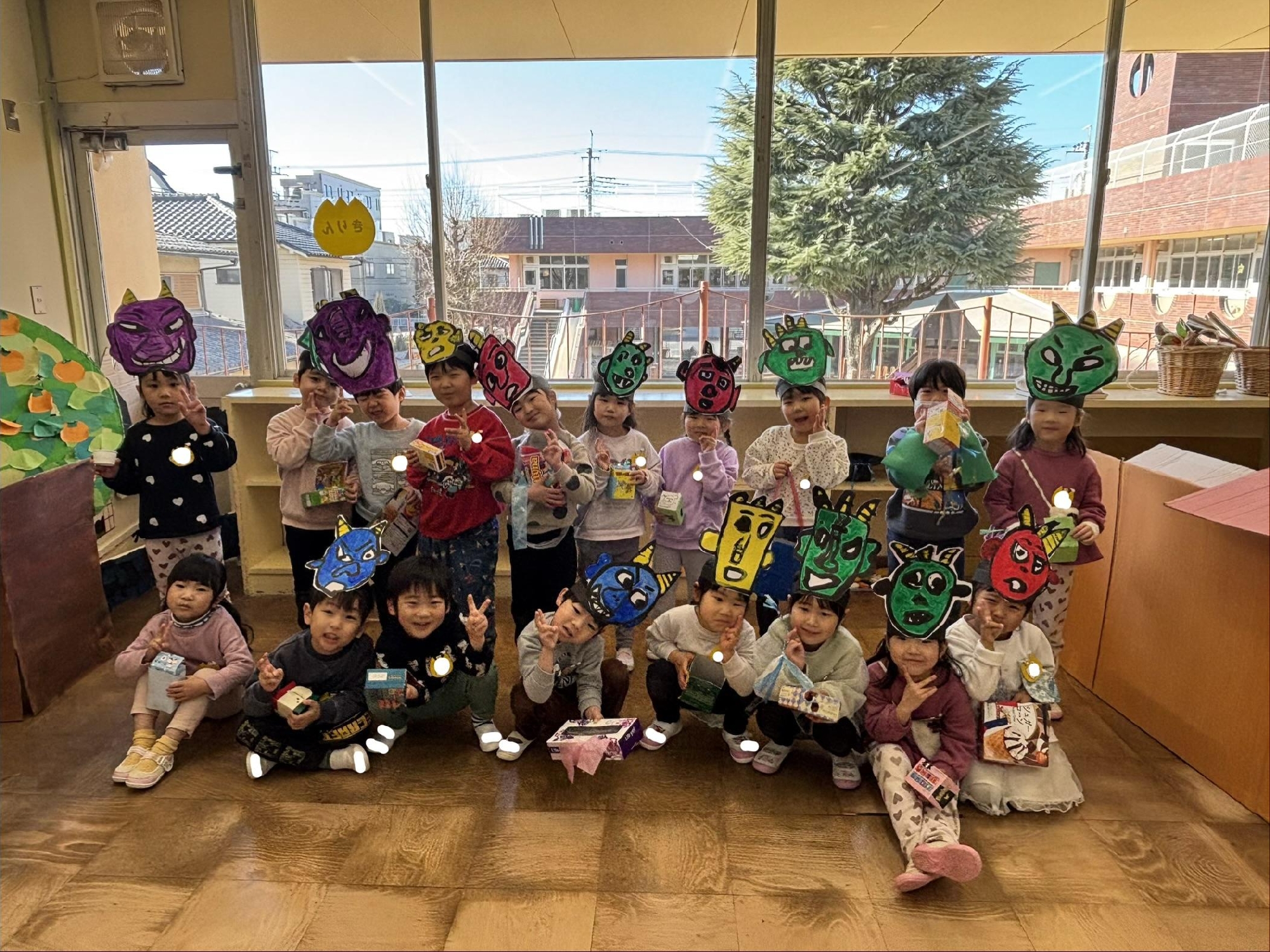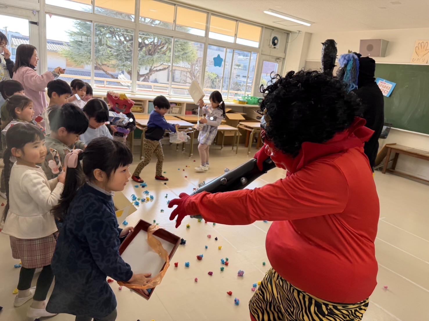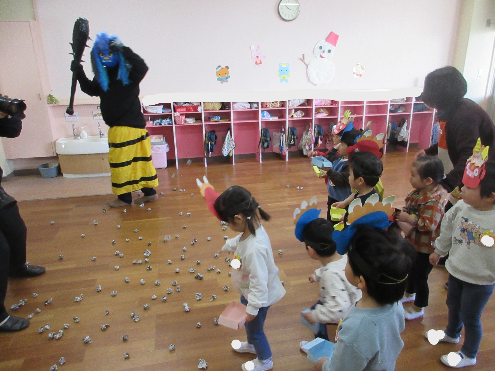 「おには~そと~!ふくは~うち~!って豆を投げたら大丈夫だよ!」「ちょっと怖いけど、先生を守ってあげる」と、頼もしい子もいましたよ😊