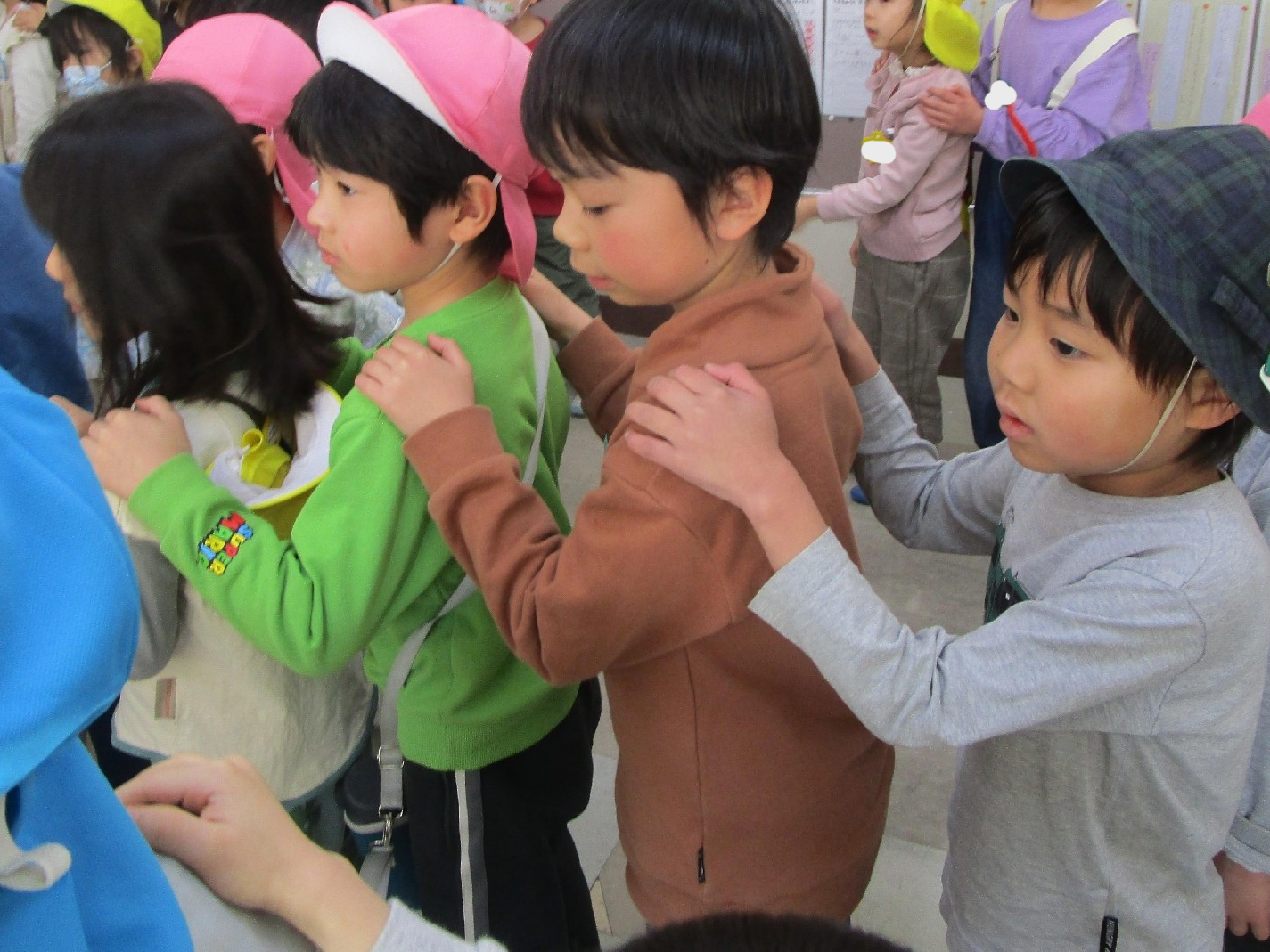 4月から1年生になる年長組の子どもたちに、3小の1年生から交流会の招待がありました^^