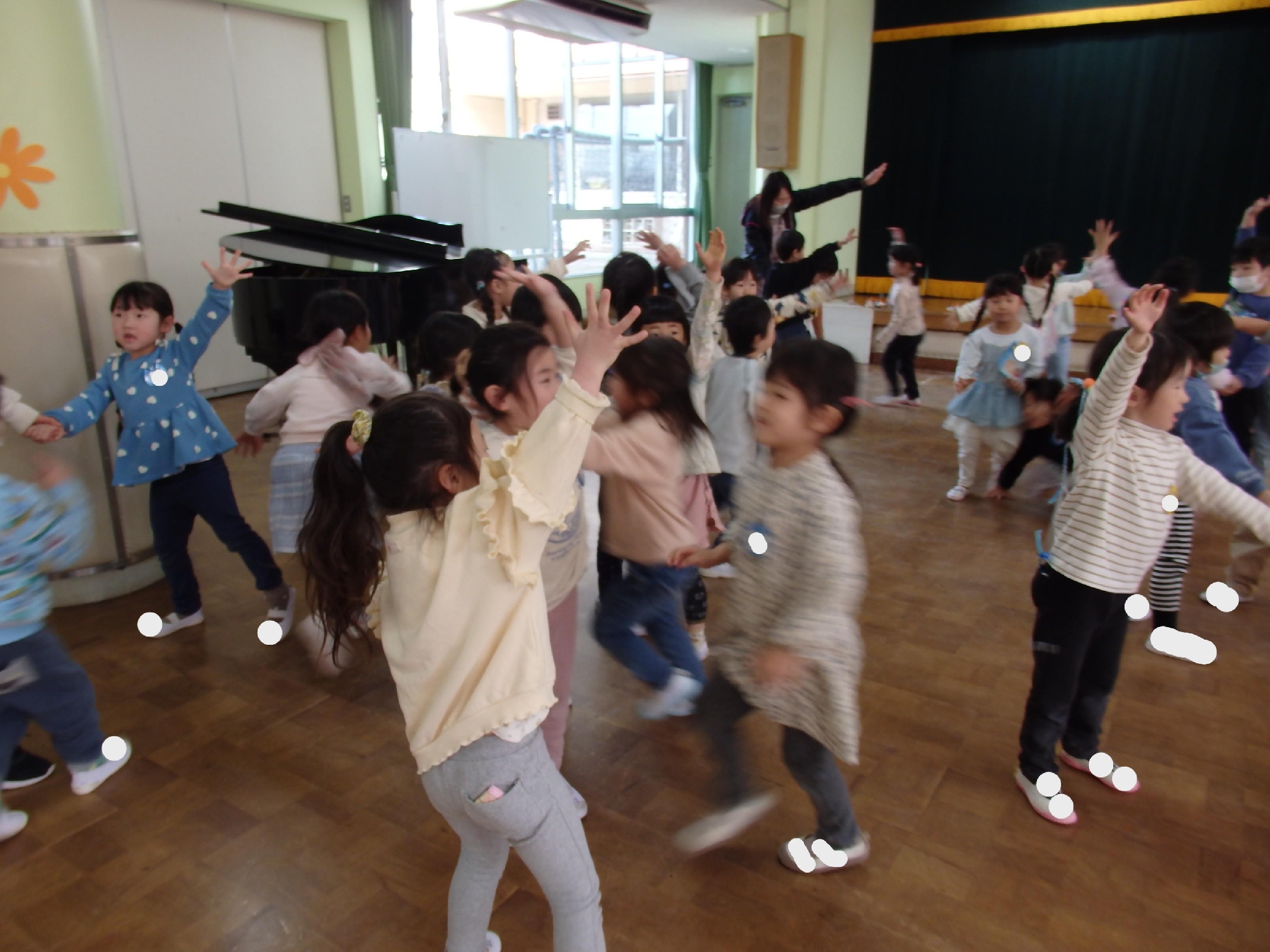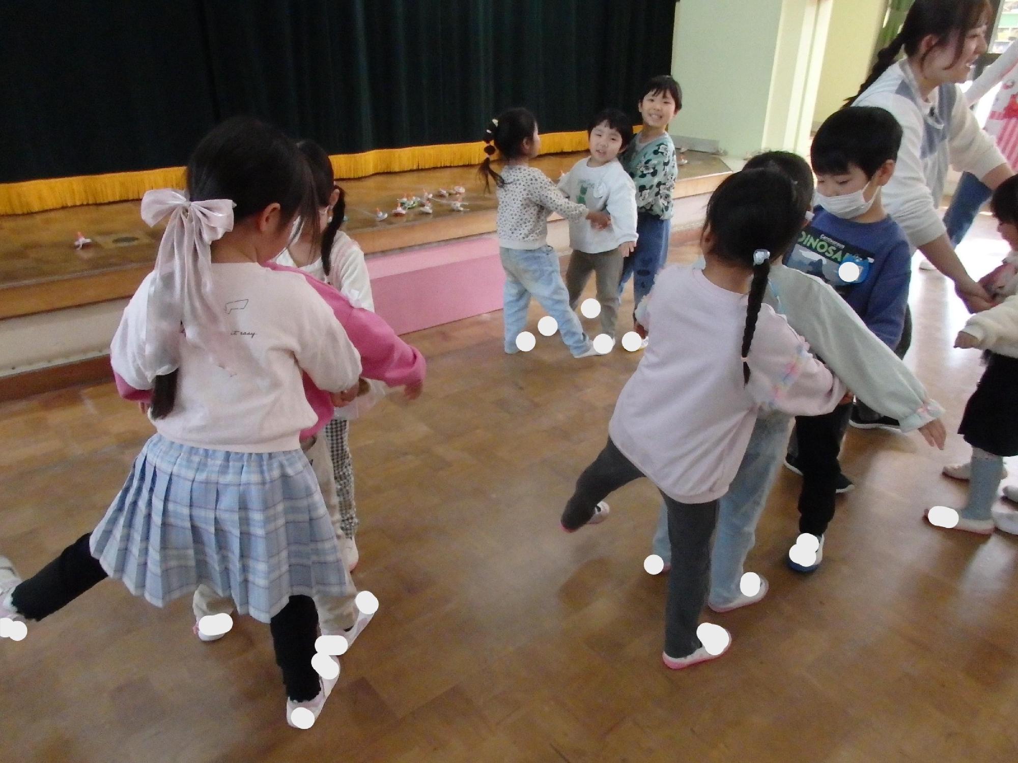 3クラスで大きな円を作って「釣ったか?たんたんたん」のダンスを、大盛り上がりで踊りました♪