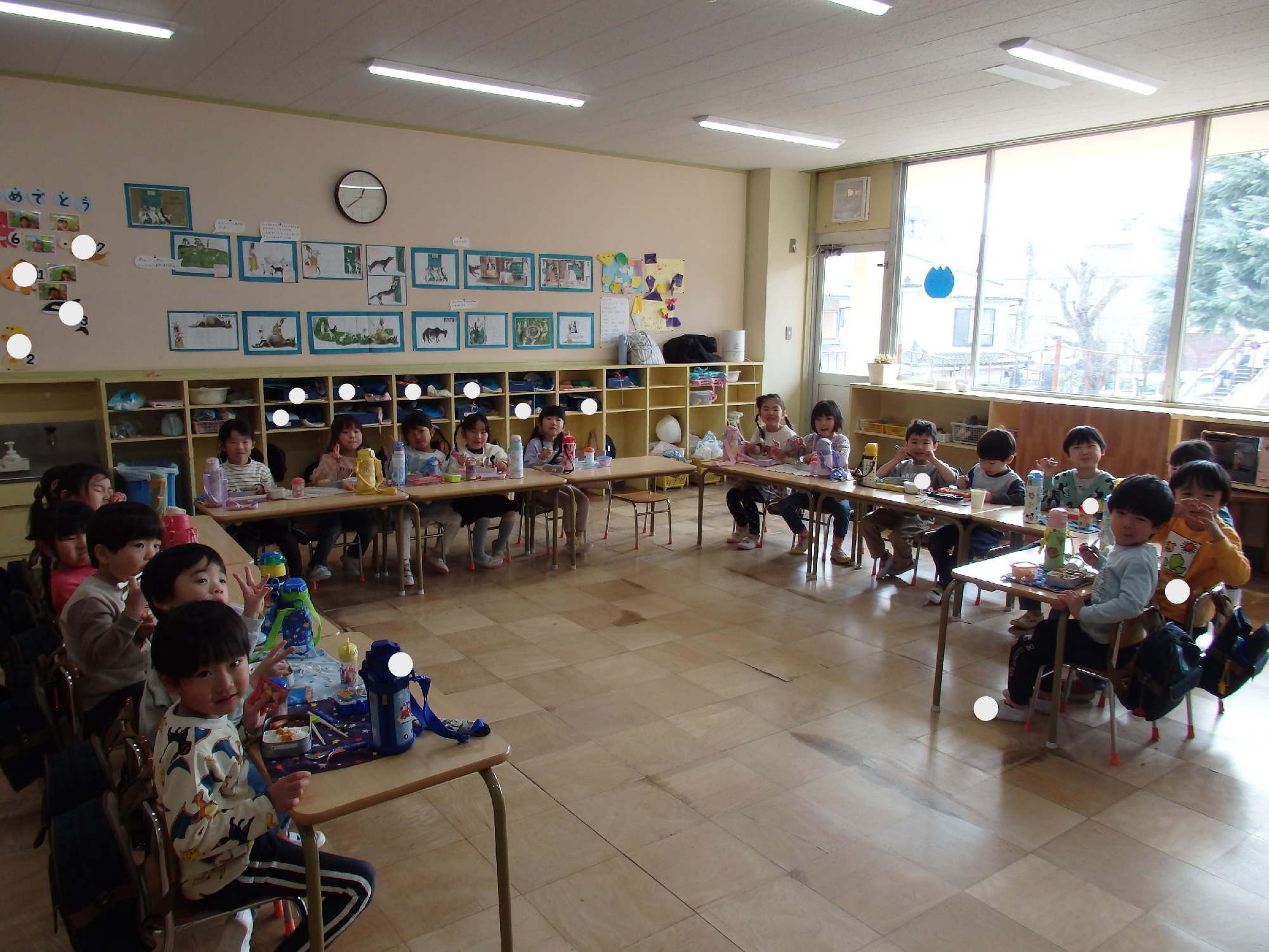 お弁当の時間は、くじ引きで食べるクラスを決めました。