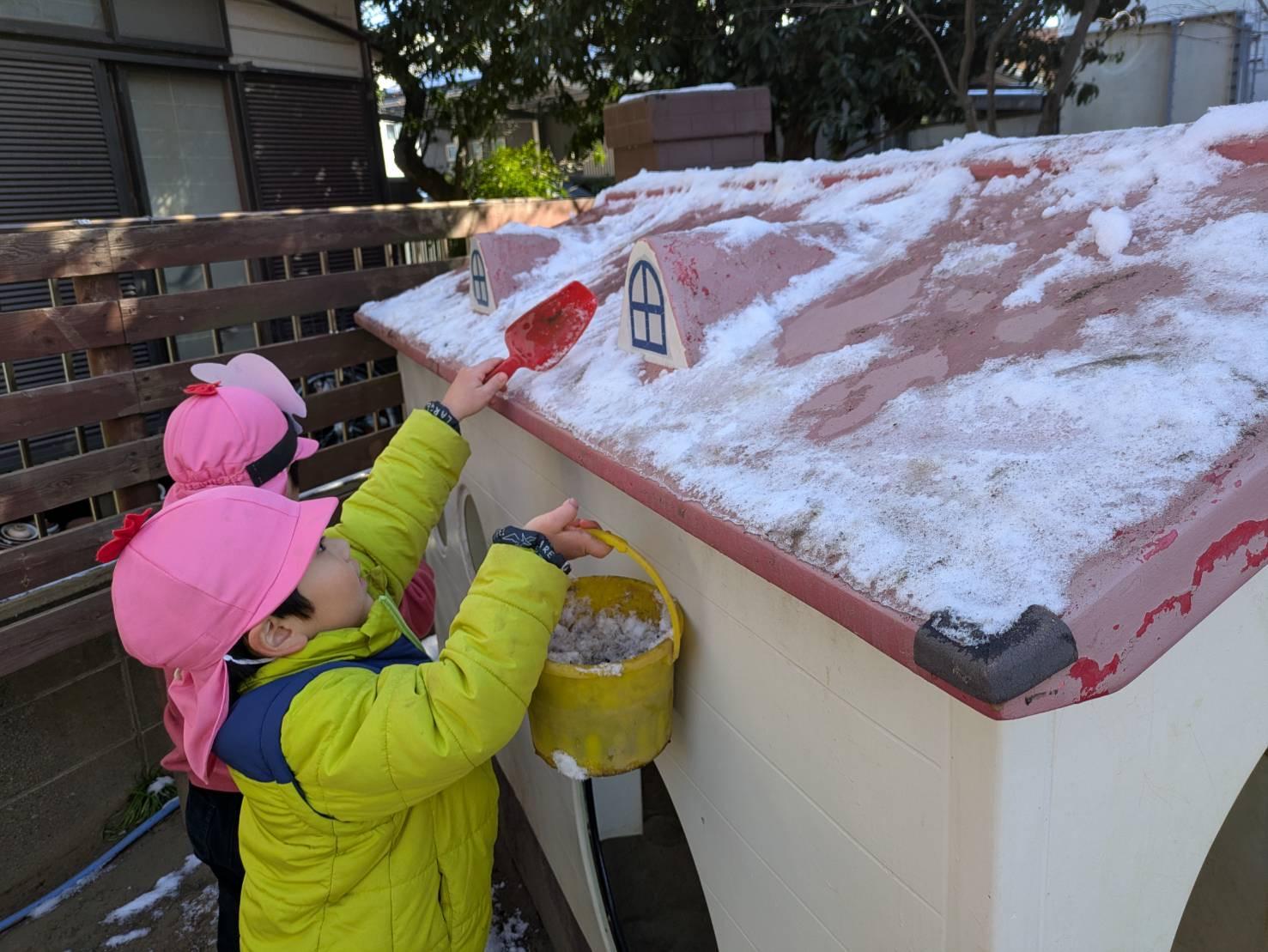 土日に積もった雪を見て大喜びの子ども達!