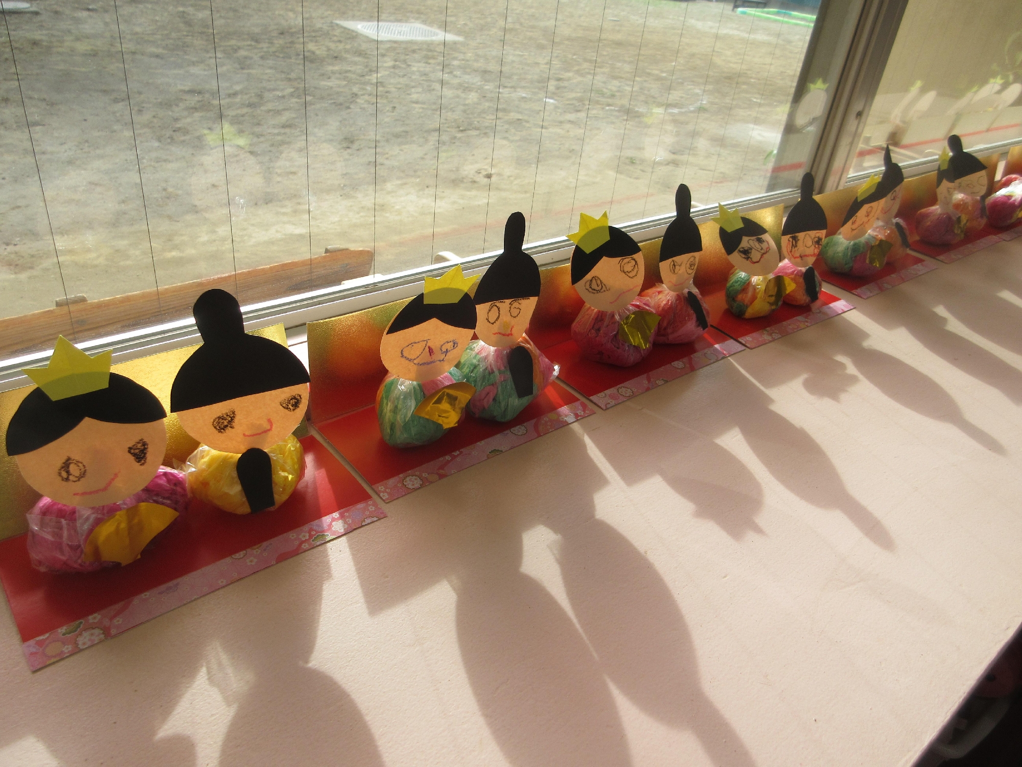今は、窓辺でおひな様がみんなの姿を見ながら、にこにこ微笑んでいます。
