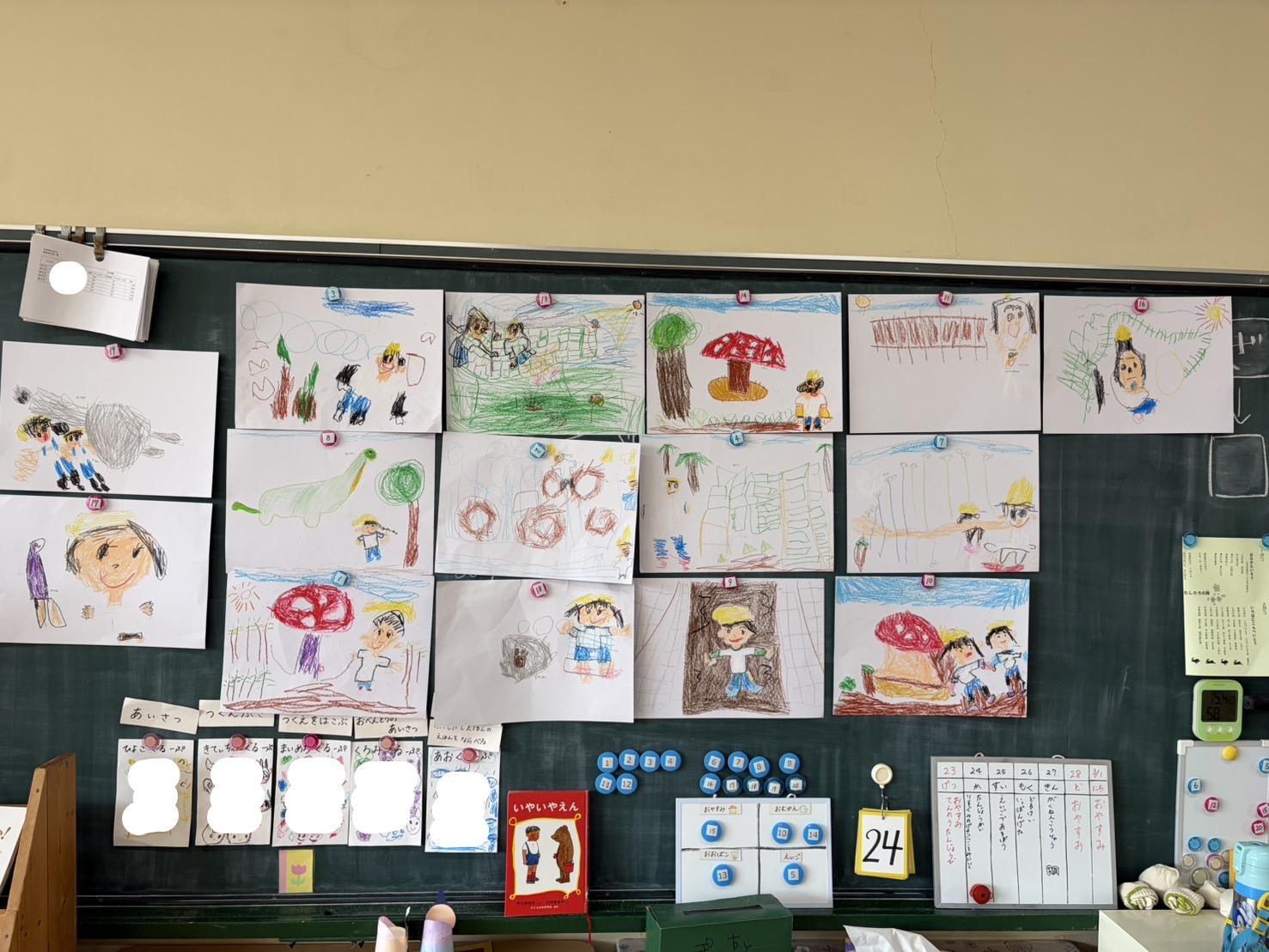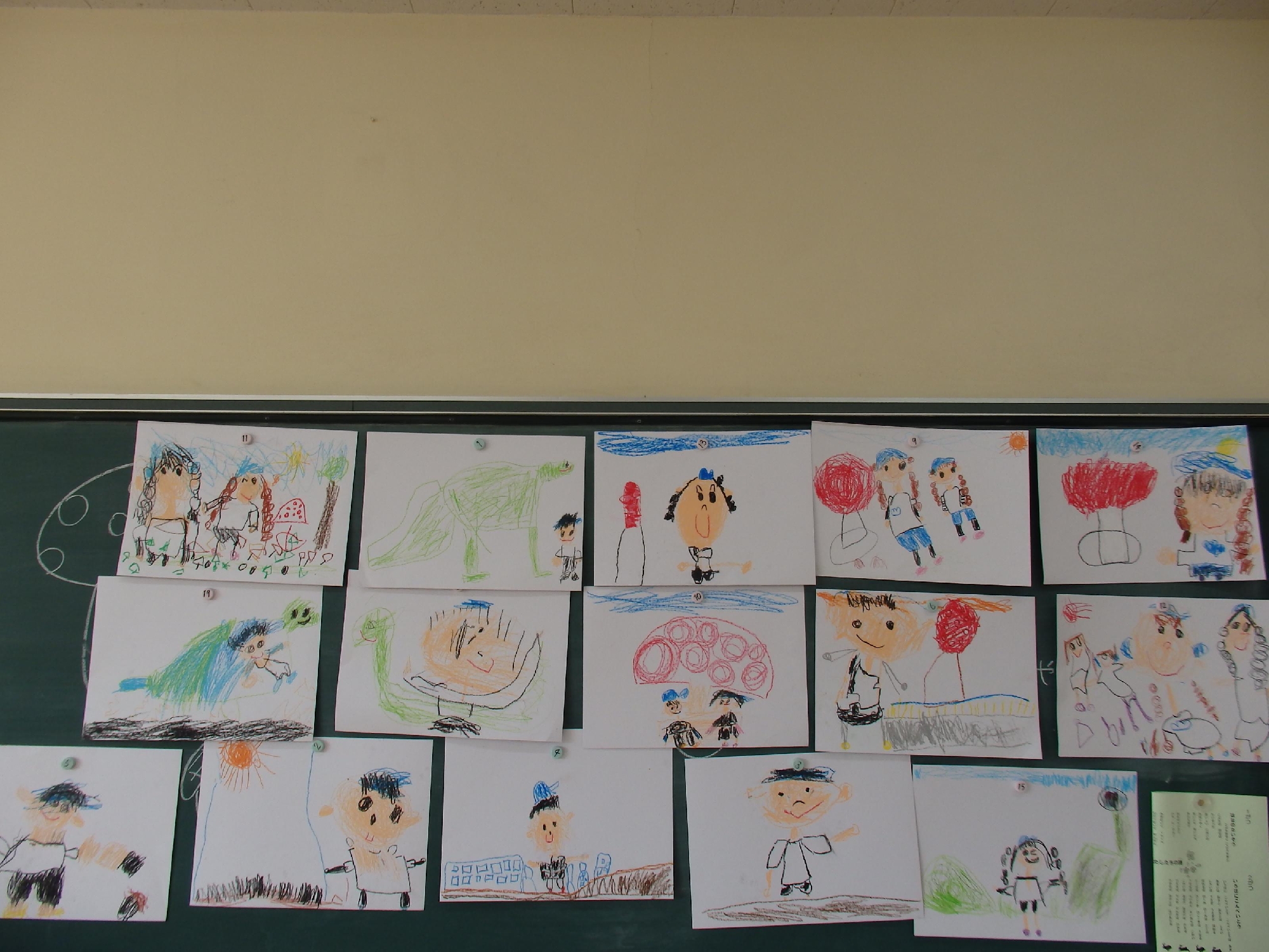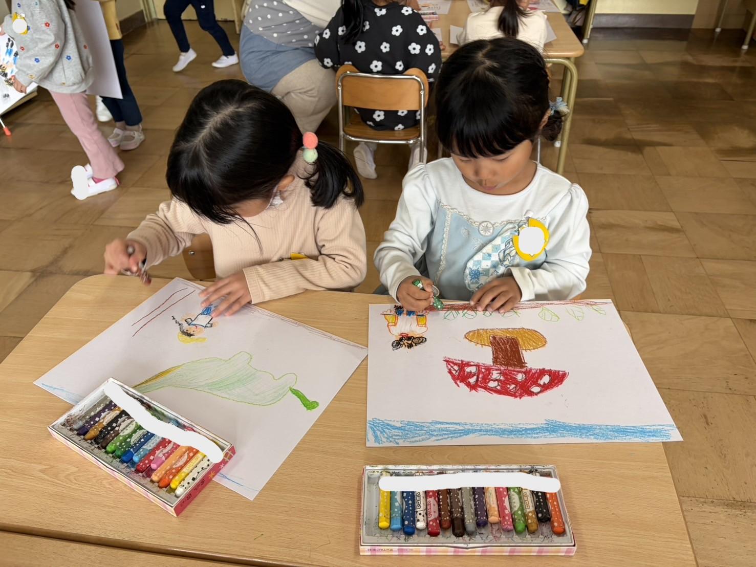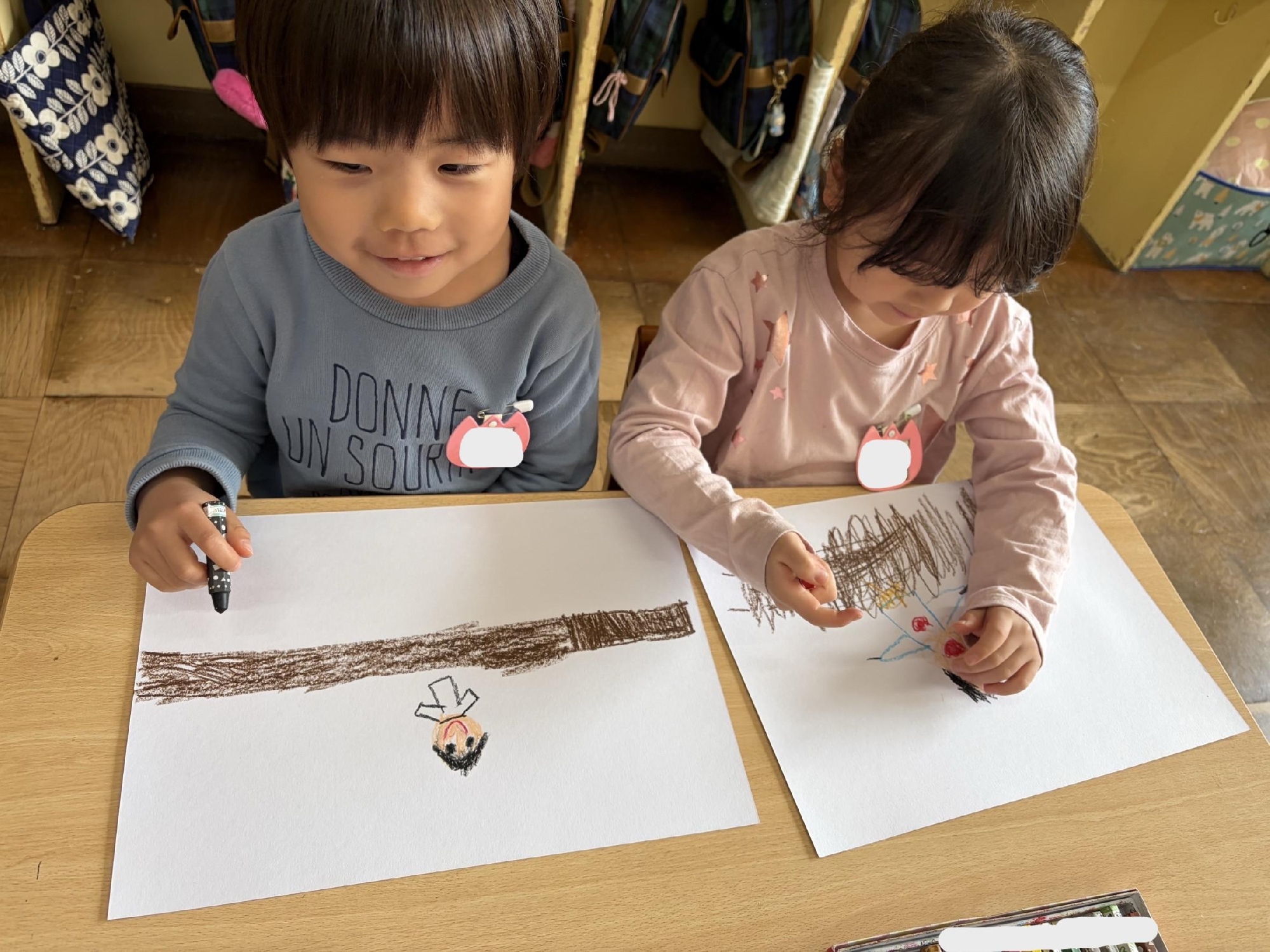 そして、延期して行くことができた「手賀の丘公園修了遠足」を振り返り、絵を描きました。
