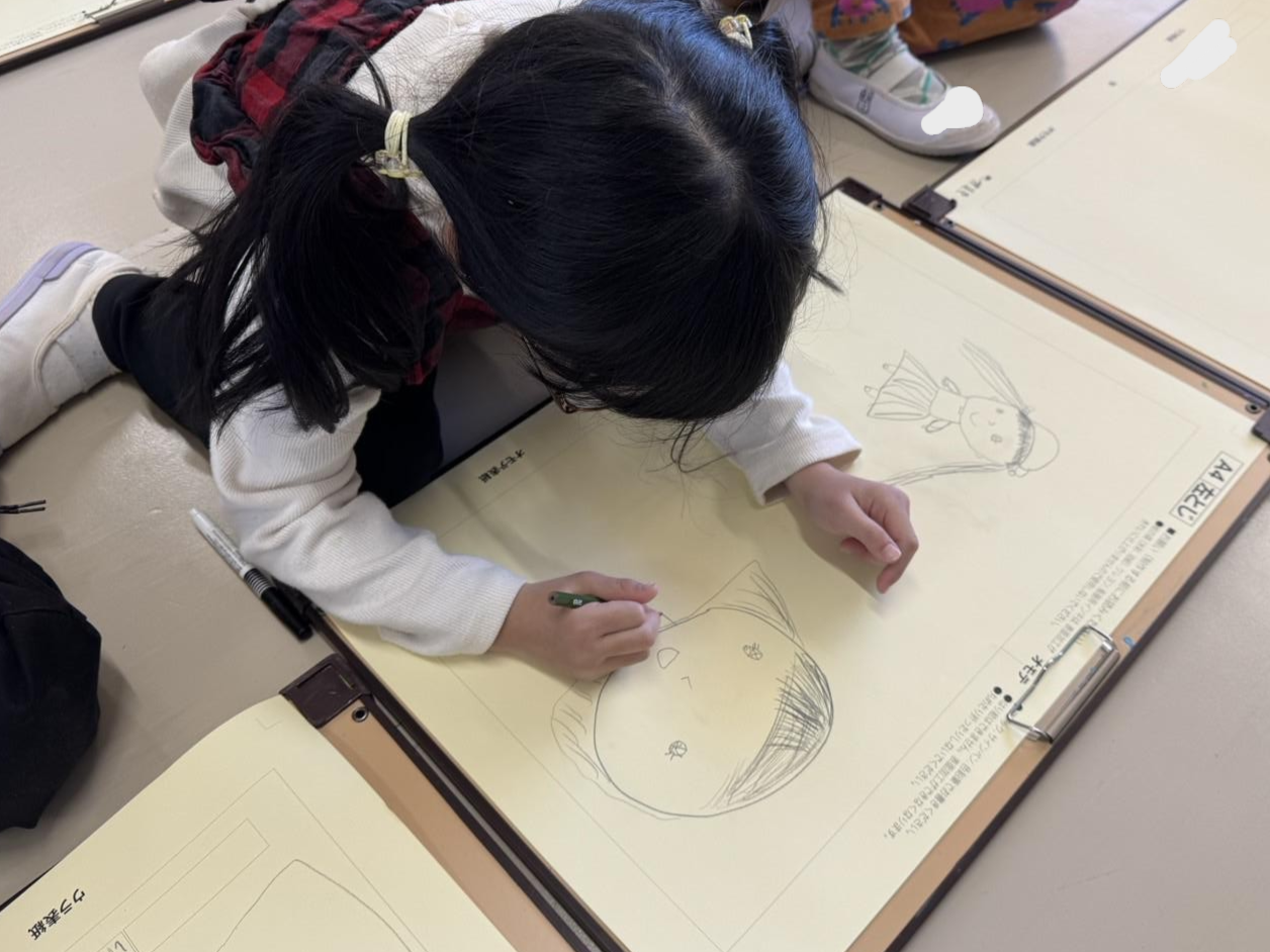 3月25日(水)、今日も、卒園アルバムの表紙の絵を描きました。