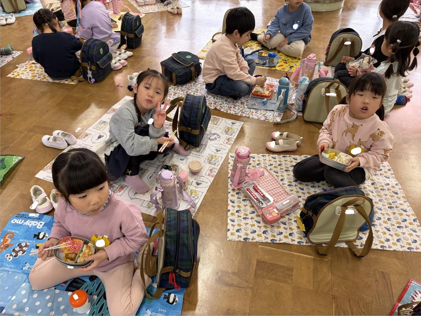 他クラスの友達も誘ってお弁当を食べるのは新鮮で、その後の自主活動の時間に誘い合って遊ぶ姿もありました😊
